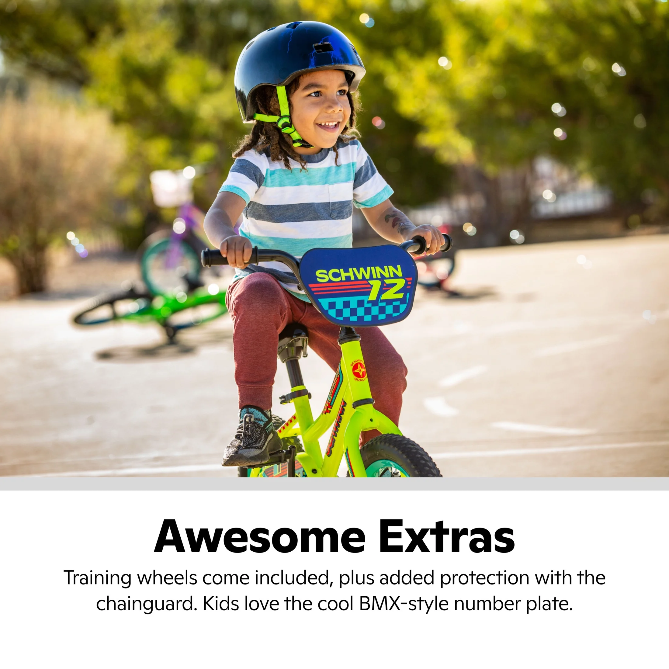 - AWESOME EXTRAS: Training wheels come included, plus added protection with the chainguard. Boys love the cool BMX-style number plate.