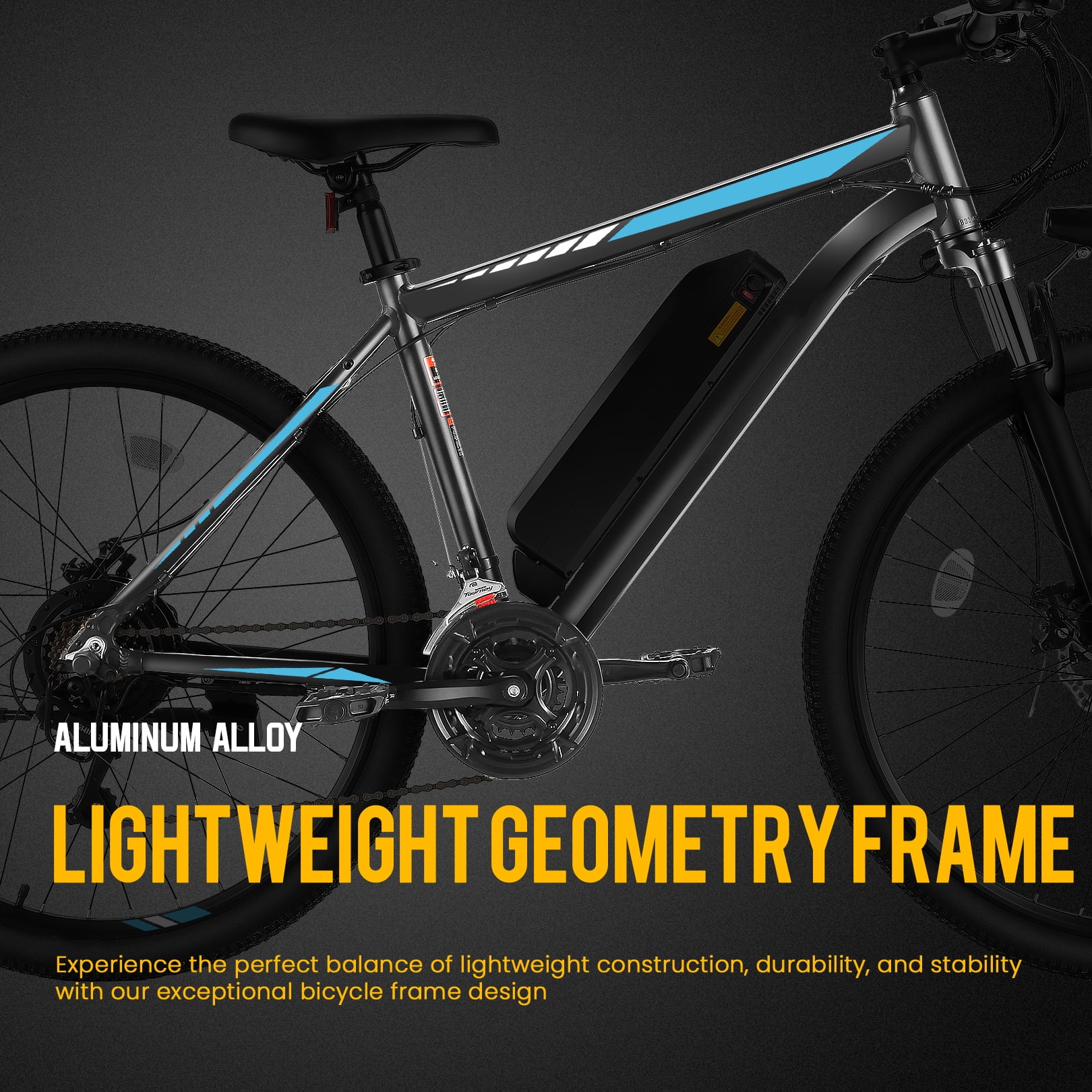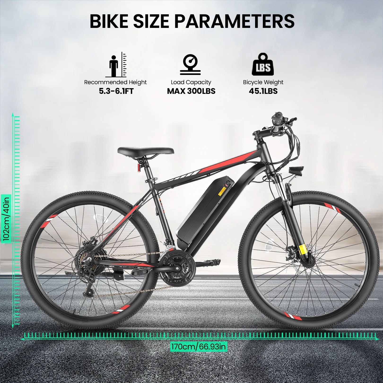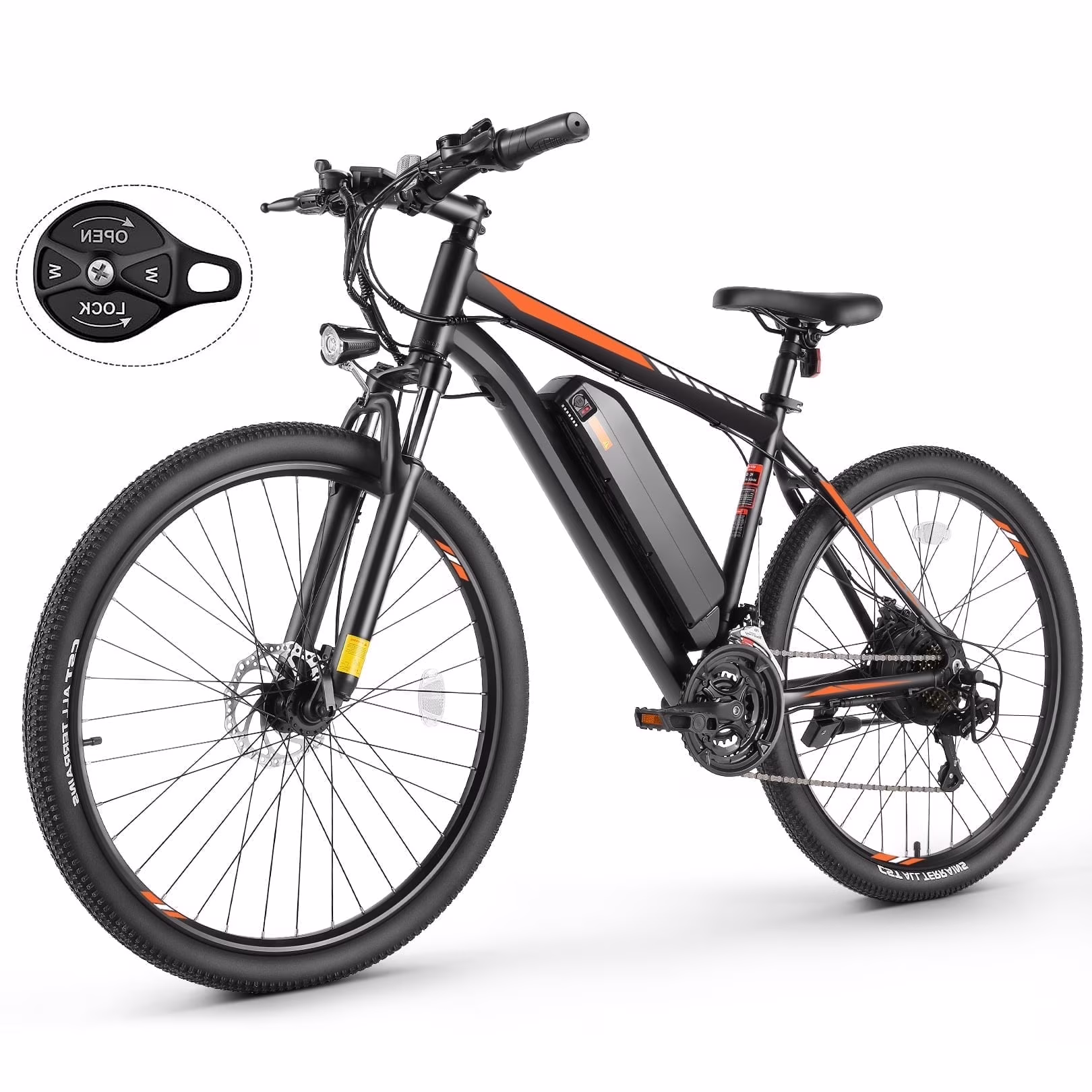 Do you like to ride? Do you like to go on outdoor adventures? If you have always loved to experience outdoor adventures, then this Electric mountain bike is a good choice for you. The electric bike frame made of aluminum alloy is both sturdy and lightweight, making it easier to move around. It is also equipped with a powerful 350W motor and charging time is 5 hours, and it can ride up to 50miles after a full charge. LCD display supports real-time view of the latest riding data while riding. The shock-absorbing fork is lockable, which can make you ride more smoothly. With 21-speed shifting, you can choose the speed according to your needs. Bright LED headlights and sensitive dual disc brakes make the ride safer. Whether it's outdoor adventure or off-road riding��the electric bikes for adults will make you have a very pleasant experience.