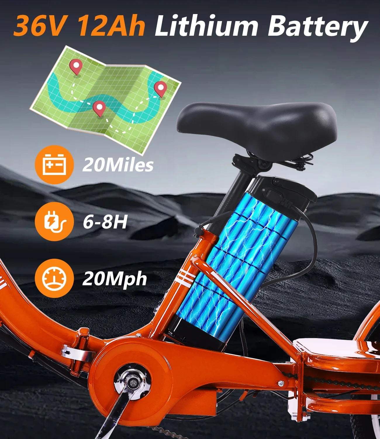 NOMIGO Electric Tricycle for Adults Folding Electric Trike 3 Wheel Electric Trike with Two - Seater Large Basket Super Powerful Brushless 350W Motor 48V13AH Lithium Battery Max 20MPH E - Tricycle Orange