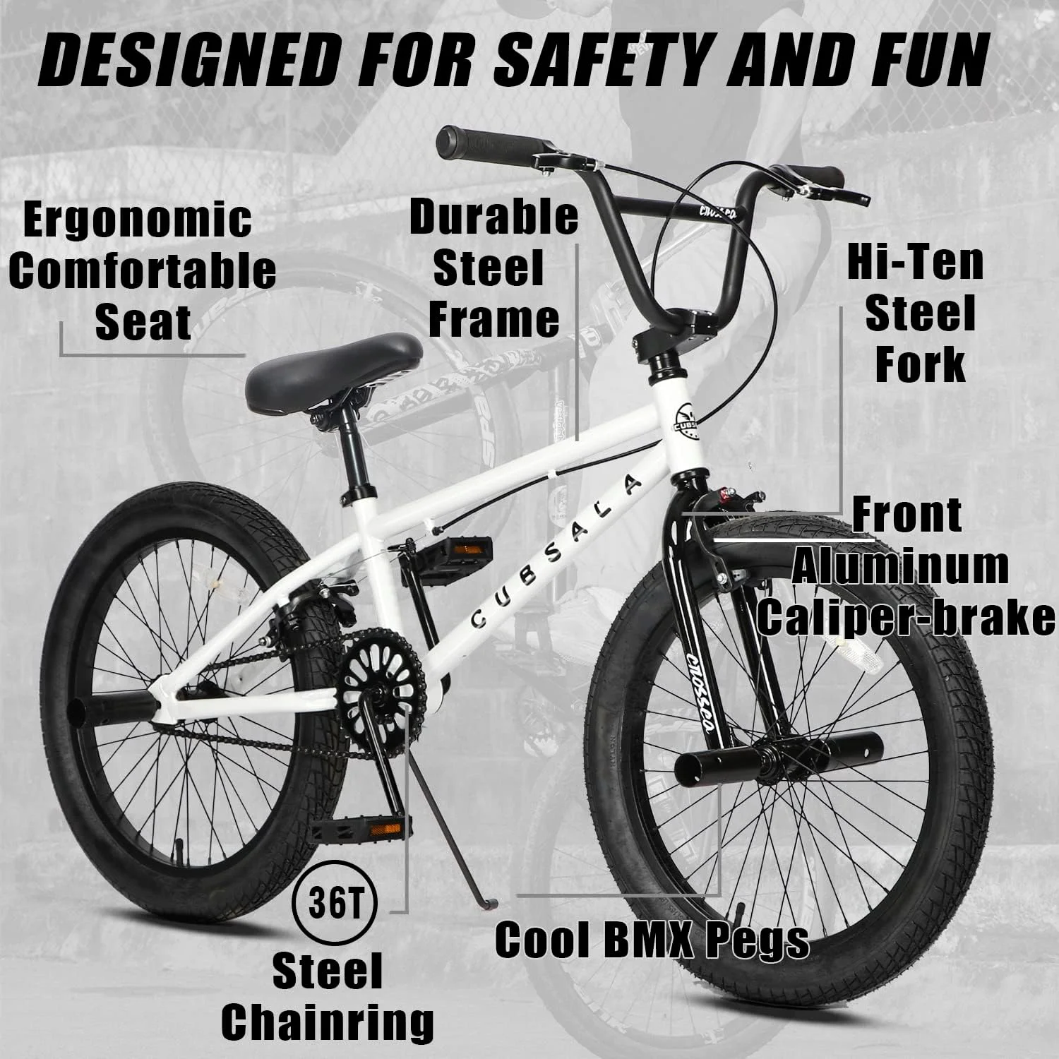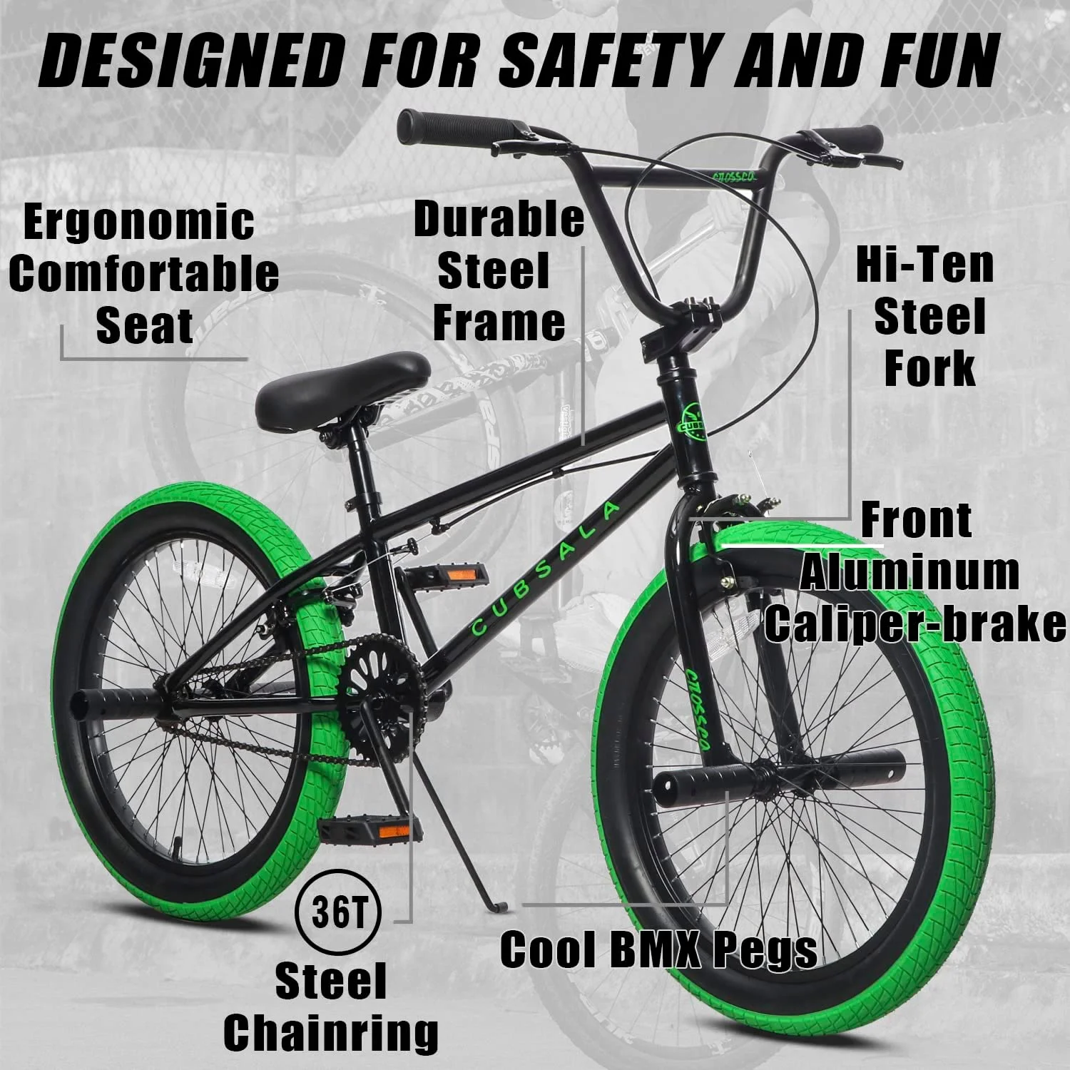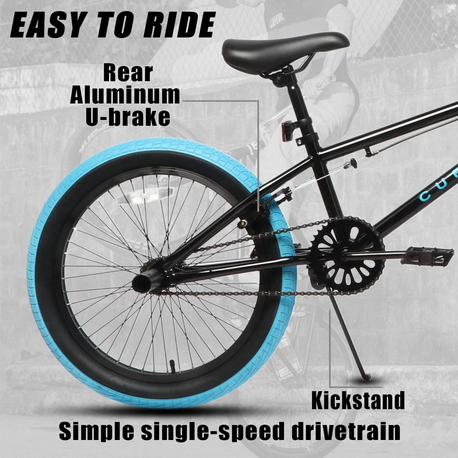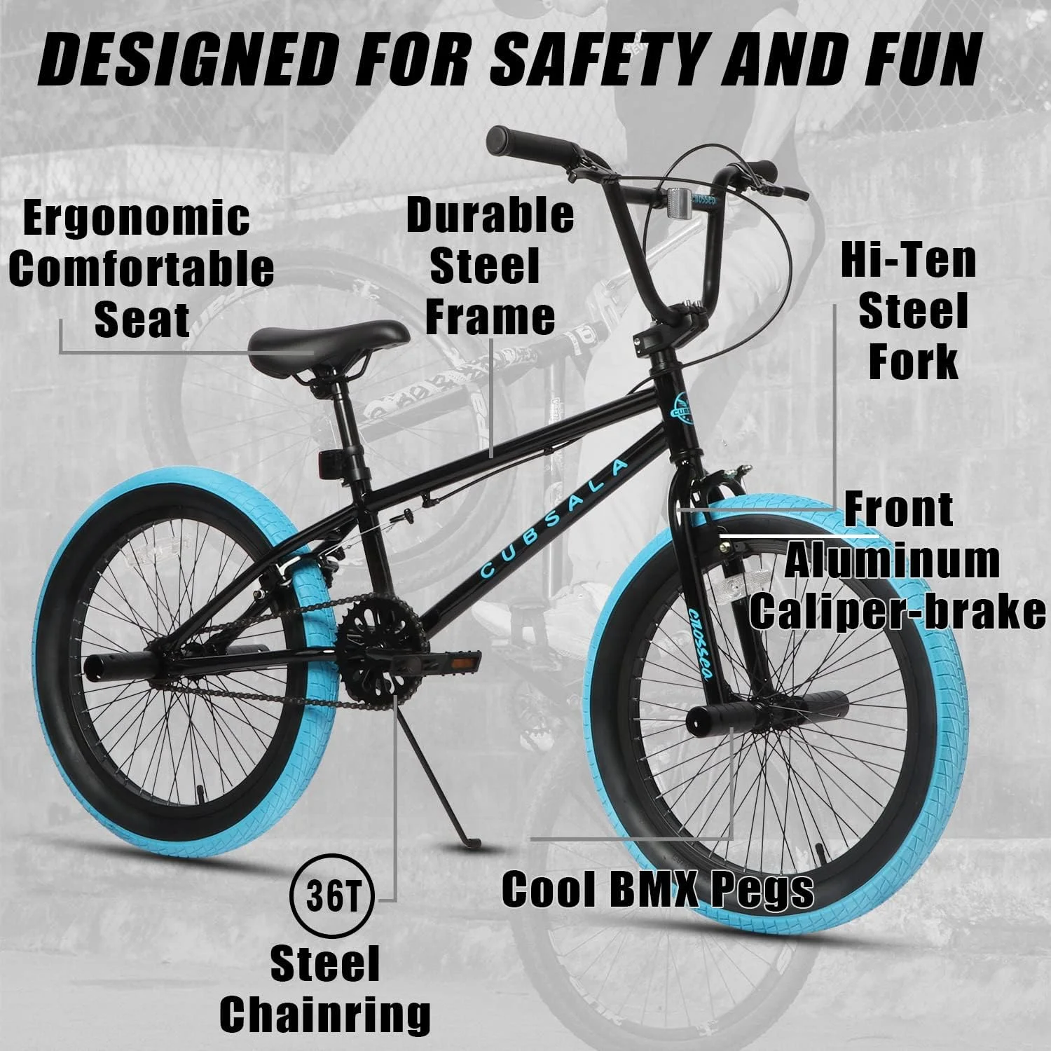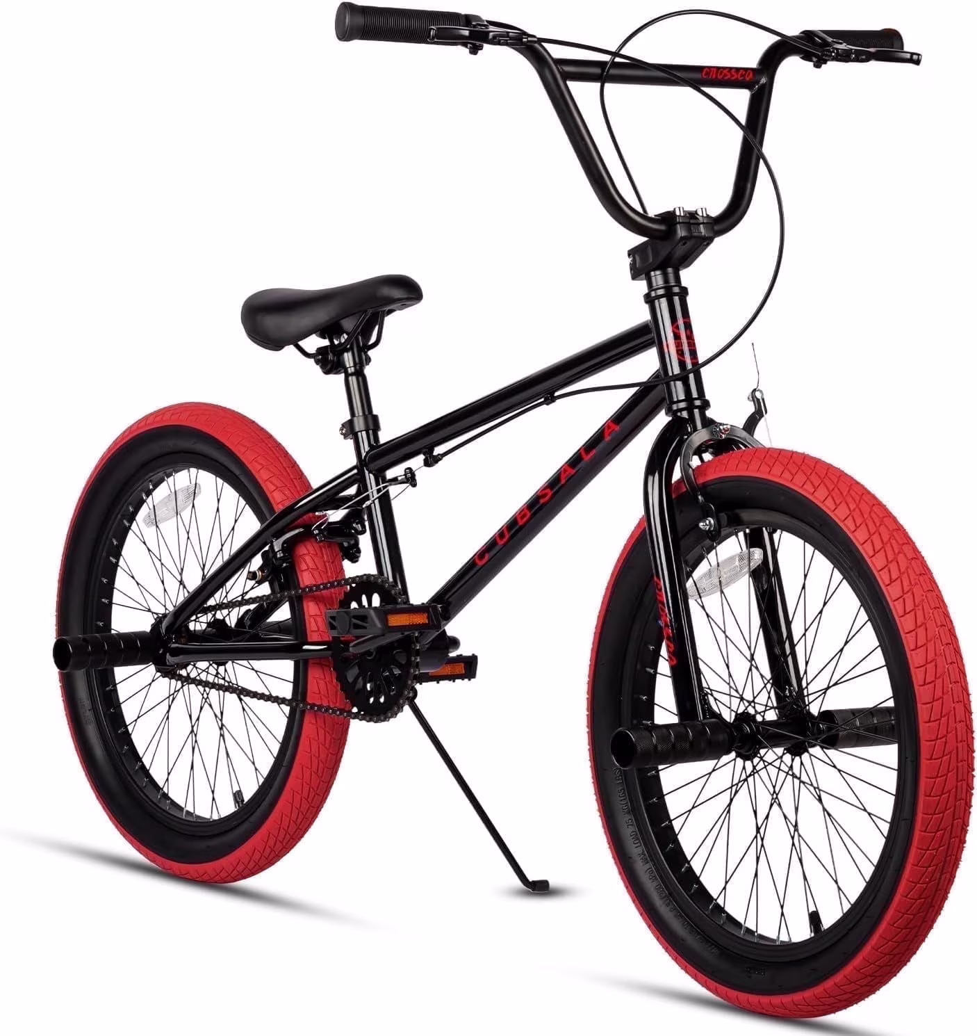 • Cubsala 20 in Kids BMX Bike Freestylefor Age 6 - 14 Years Old Boys Girls with 4 Pegs, Black with Red Tires