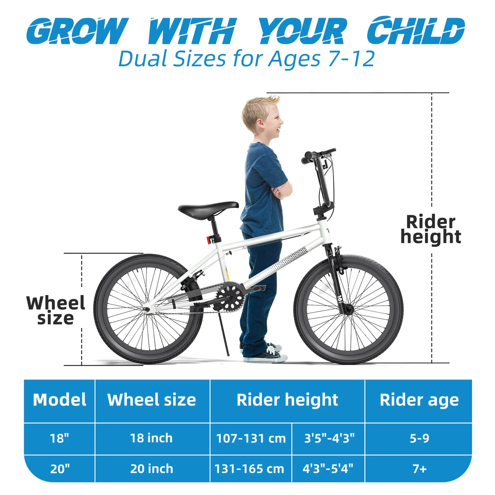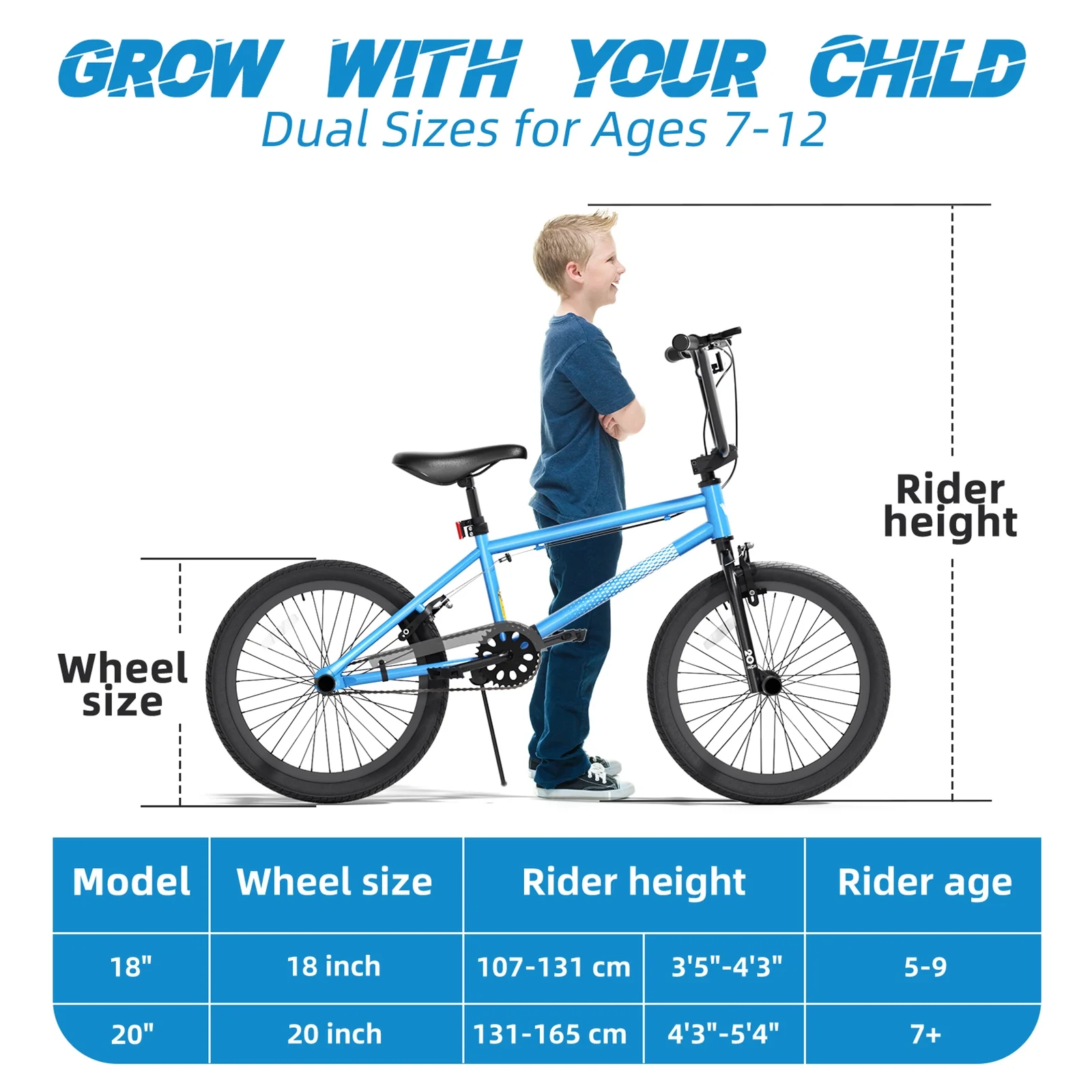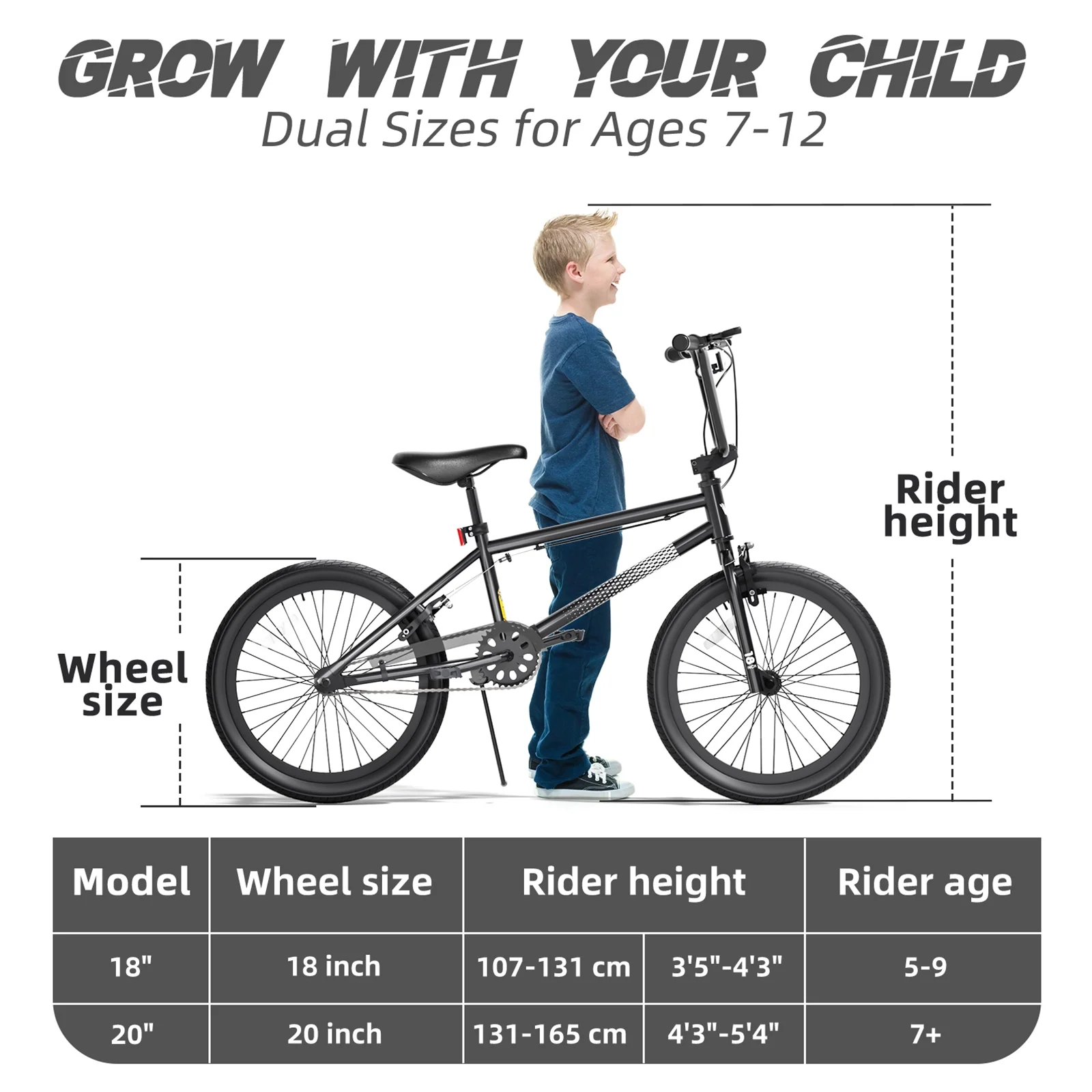 - ��Stylish and Fun for Kids��: The KORIMEFA BMX Bike 18-20 Inch is a ton of fun to ride! Its geometry makes this bike ideal for riders looking for a bigger setup and allows your aspiring Youth rider to feel confident on all terrain!