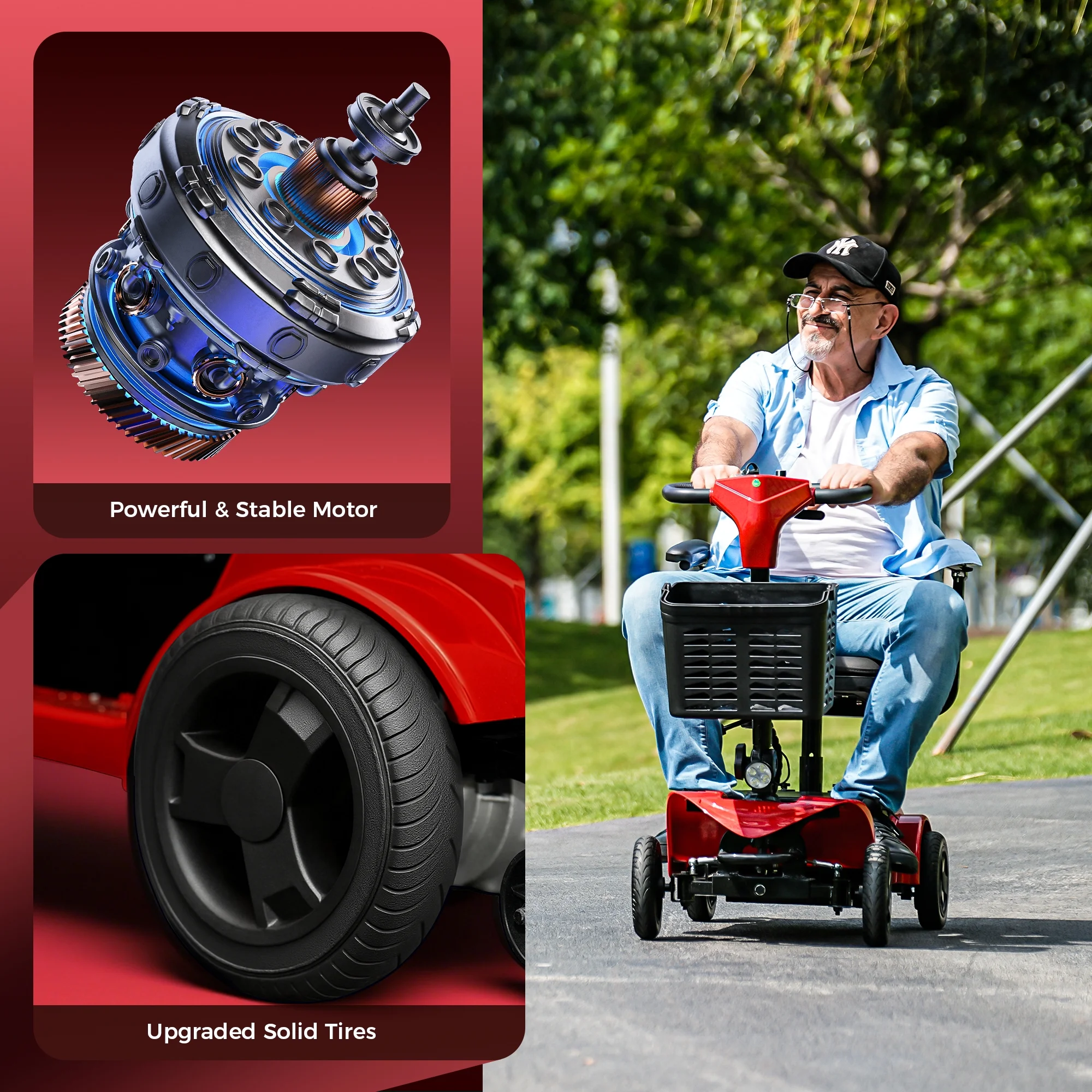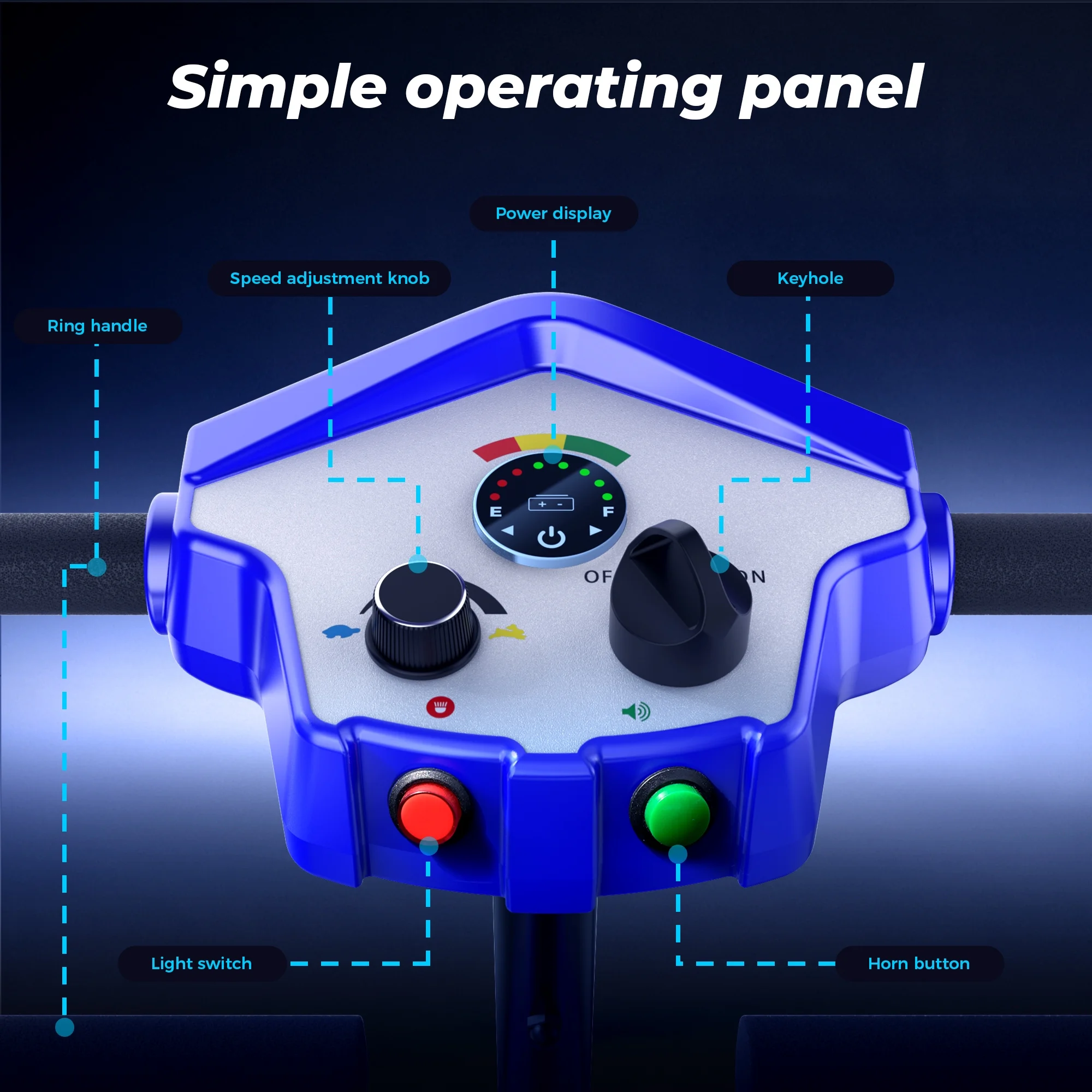 8' Anti-skid Tires & Anti-tilt Design - Upgraded solid tires are more stable and safe, anti-skid and wear-resistant; You may have worried that the mobility scooter will tilt back uncontrollably when you go uphill and result in a rollover, rest assured that we have equipped the rear of the chassis with anti-tilt wheels to reduce the probability of such accidents, which is ideal for safe driving in any road conditions on any terrain!