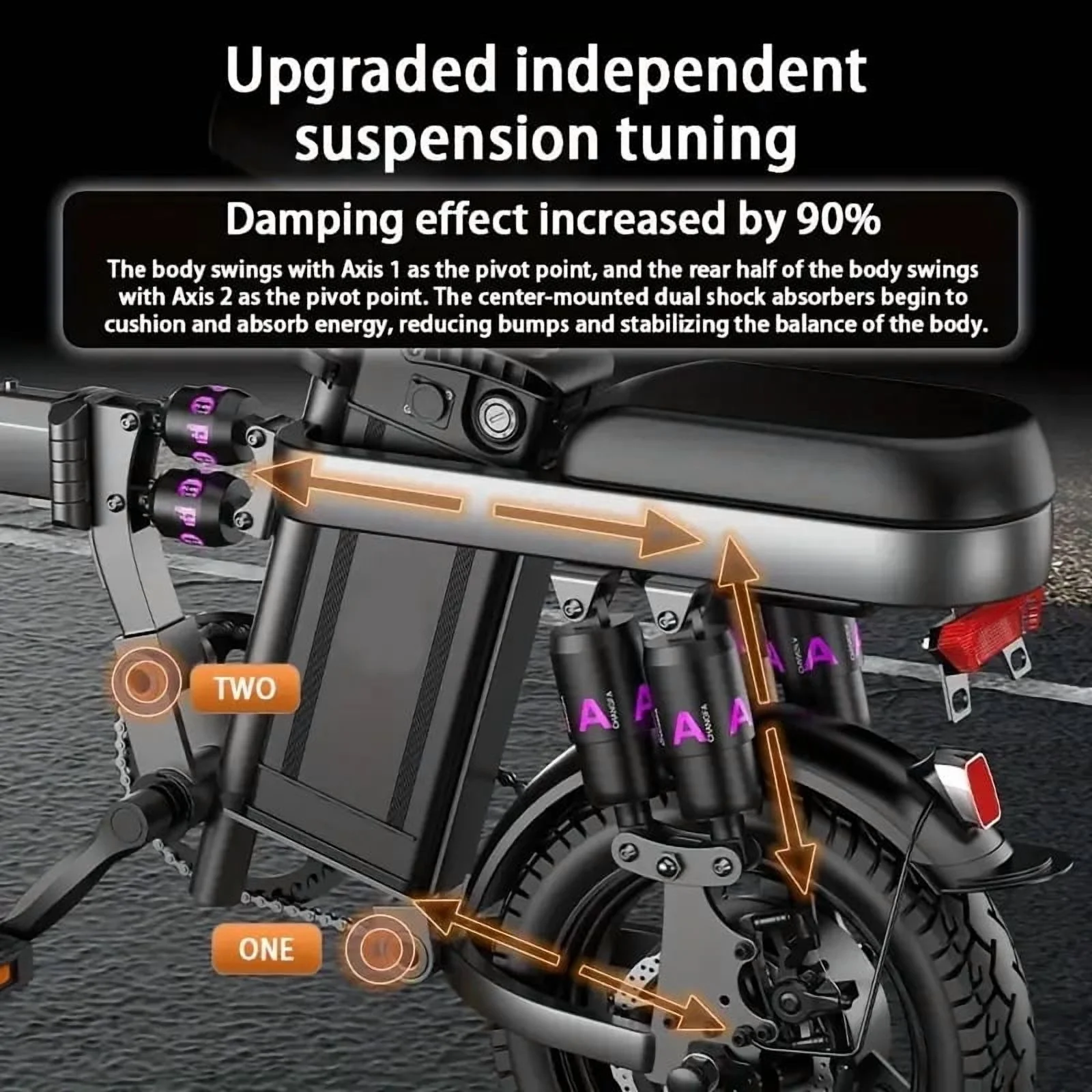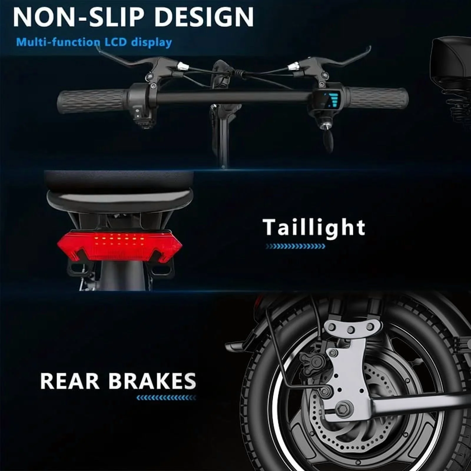 - 14" x 2.1" Tubeless Tires: Puncture-resistant with superior road grip.