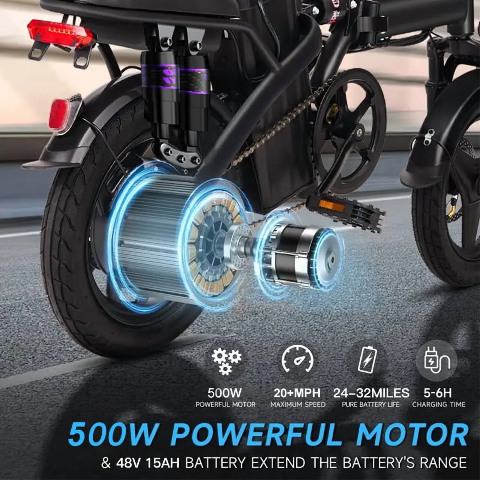 - 48V 500W Peak Motor: Tackles hills and accelerates smoothly with 55NM torque.