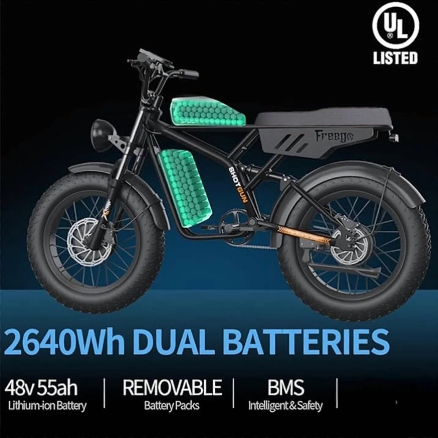 Freego F3 Pro 2000W Dual Motor Electric Bike for Adults, & Dual Battery 48V/40ah, 20"x4.0" Fat Tires Off Road Electric Bicycle with Removable Battery, 34MPH&68 Long Range E Bike UL2849