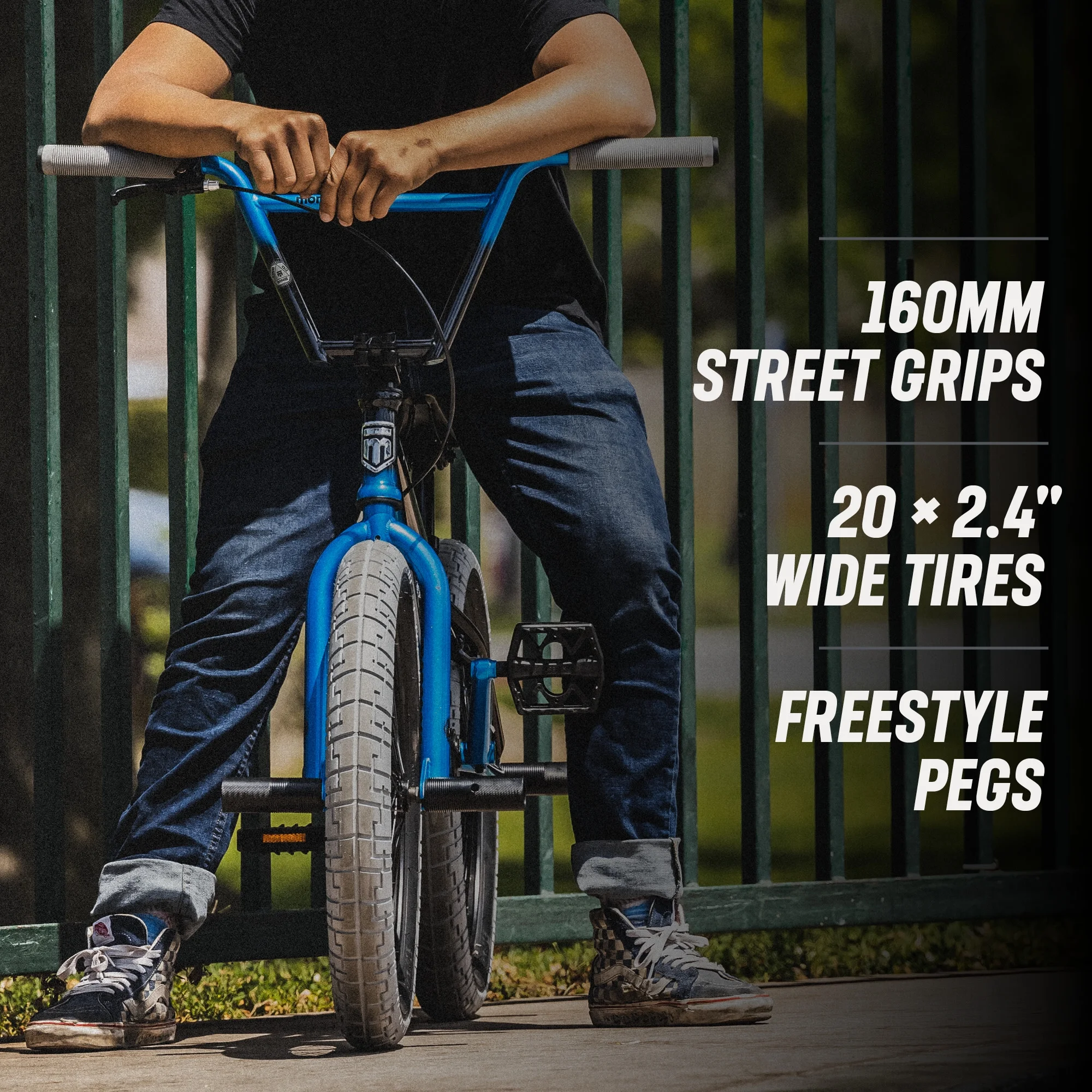- Child bike includes 4 axle pegs and long 160mm street grips to complete the BMX package.