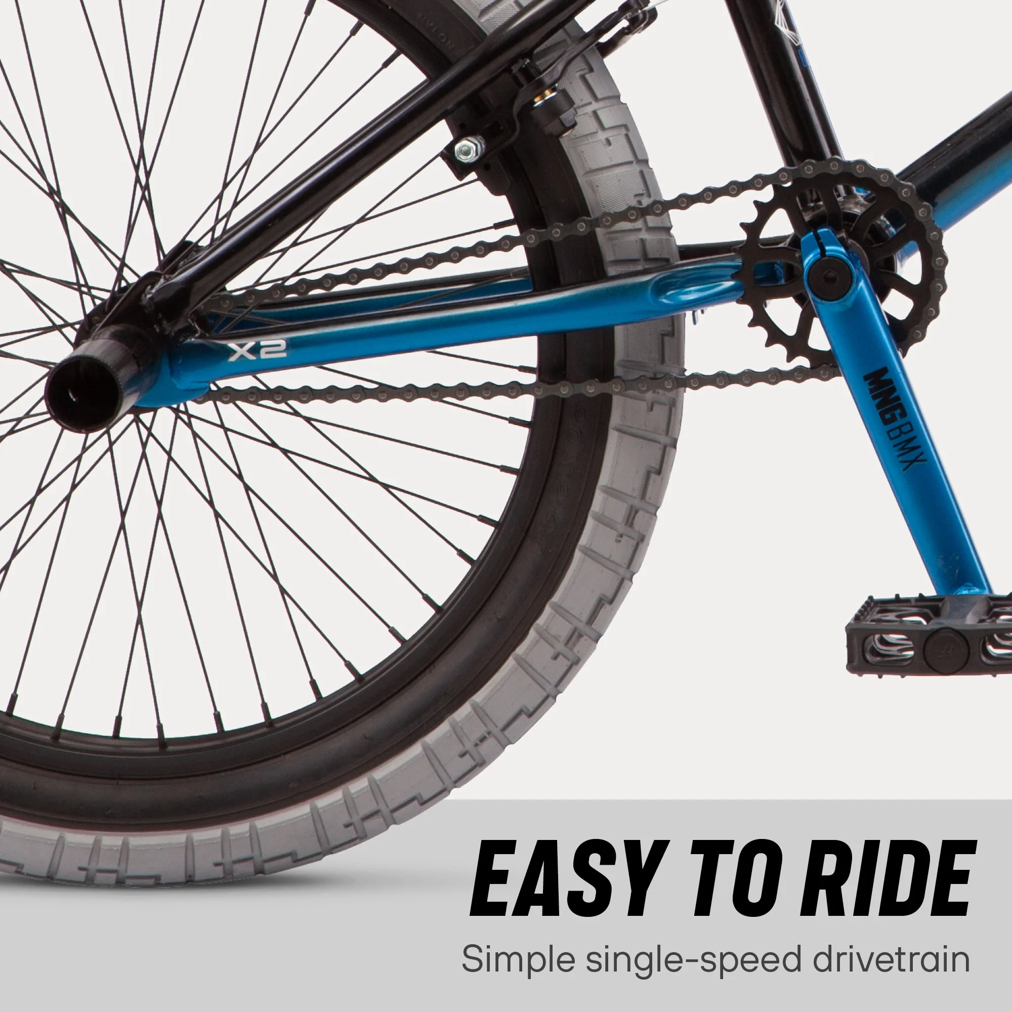 Mongoose Rebel X2 Kids BMX Bike, 20-in. Wheels, Children Ages 6+, Black & Blue Bicycle