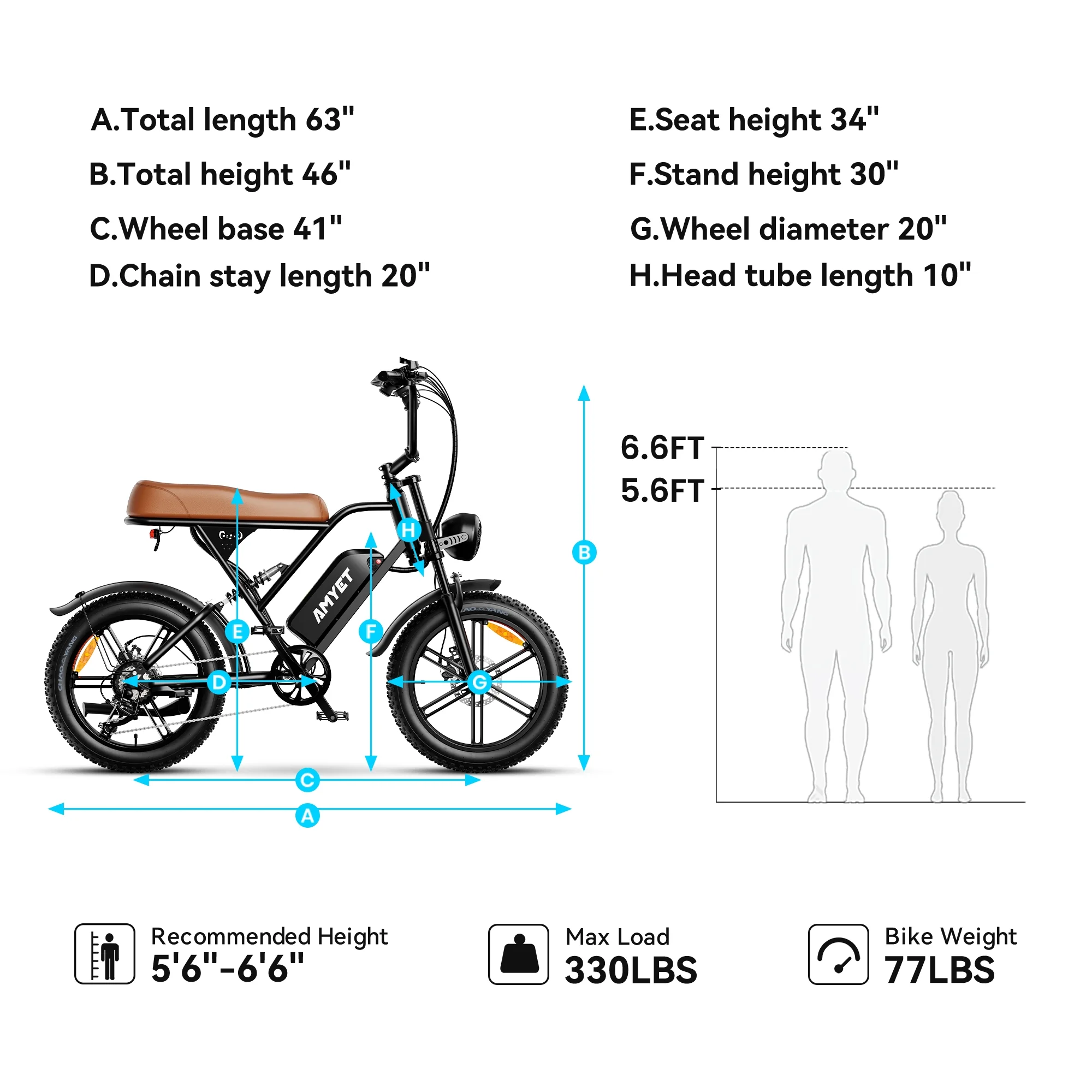 - 330 lbs Load Capacity: Designed for adult e-bike riders (5'6"�C6'6"), this high-carbon steel frame supports up to 330 lbs.
