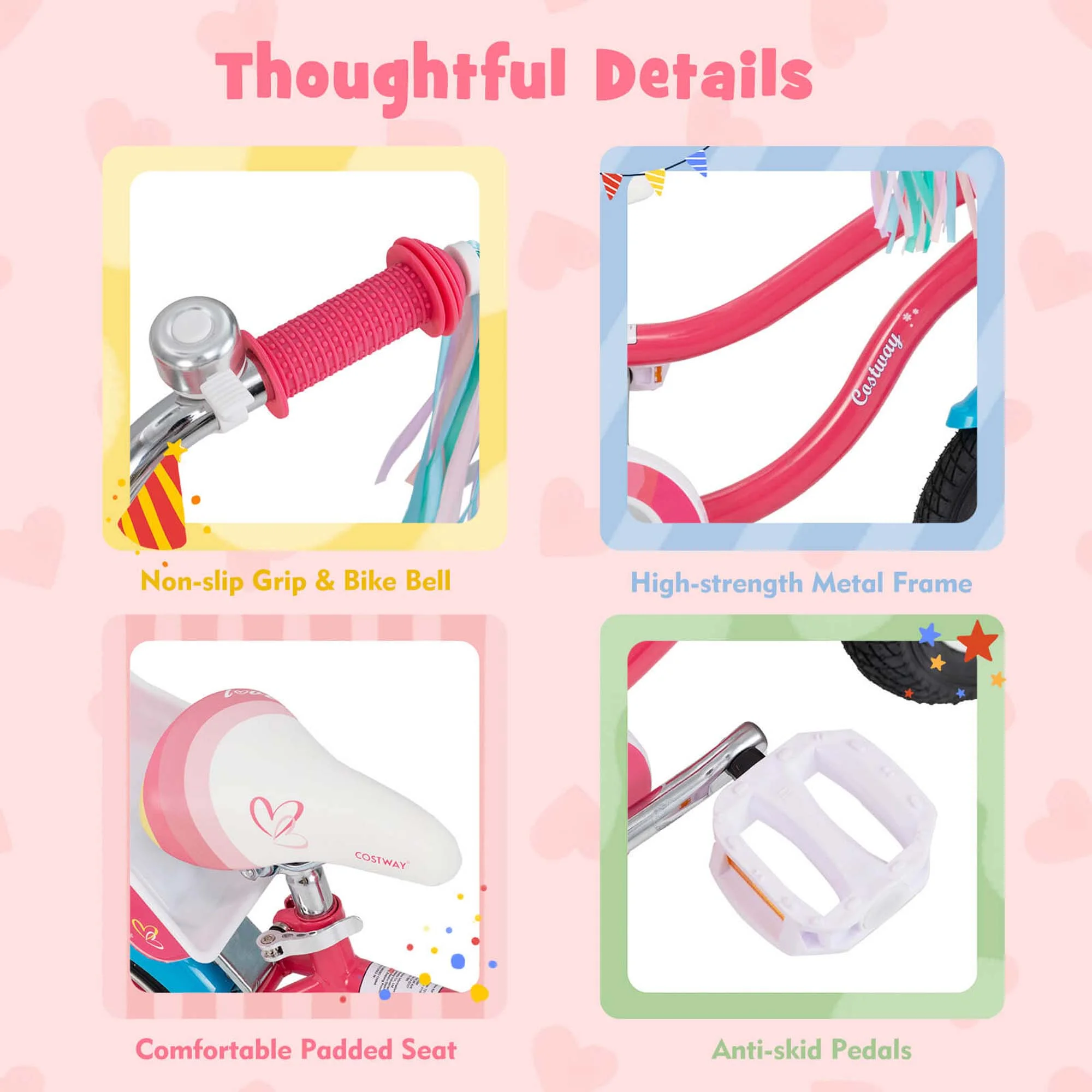 - Safe Riding for Beginners: The inclusion of 2 stable and detachable training wheels makes this children's bike an ideal choice for beginners. In addition, the non-slip, shock-absorbing and wear-resistant rubber tires provide superior grip and stability on various surfaces.