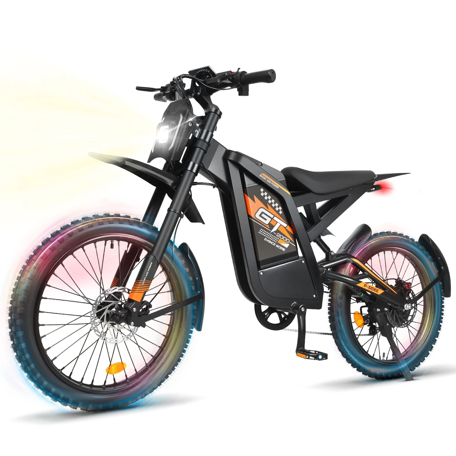 OUXI GT2000 Electric Dirt Bike for Adults, 3000W Peak Electric Motorcycle, 37MPH Electric Bike, 48V 30ah Battery, 85+Miles Mountain Bike, 24" Fat Tire Ebike, Hydraulic Brakes, Full Suspension, UL2849
