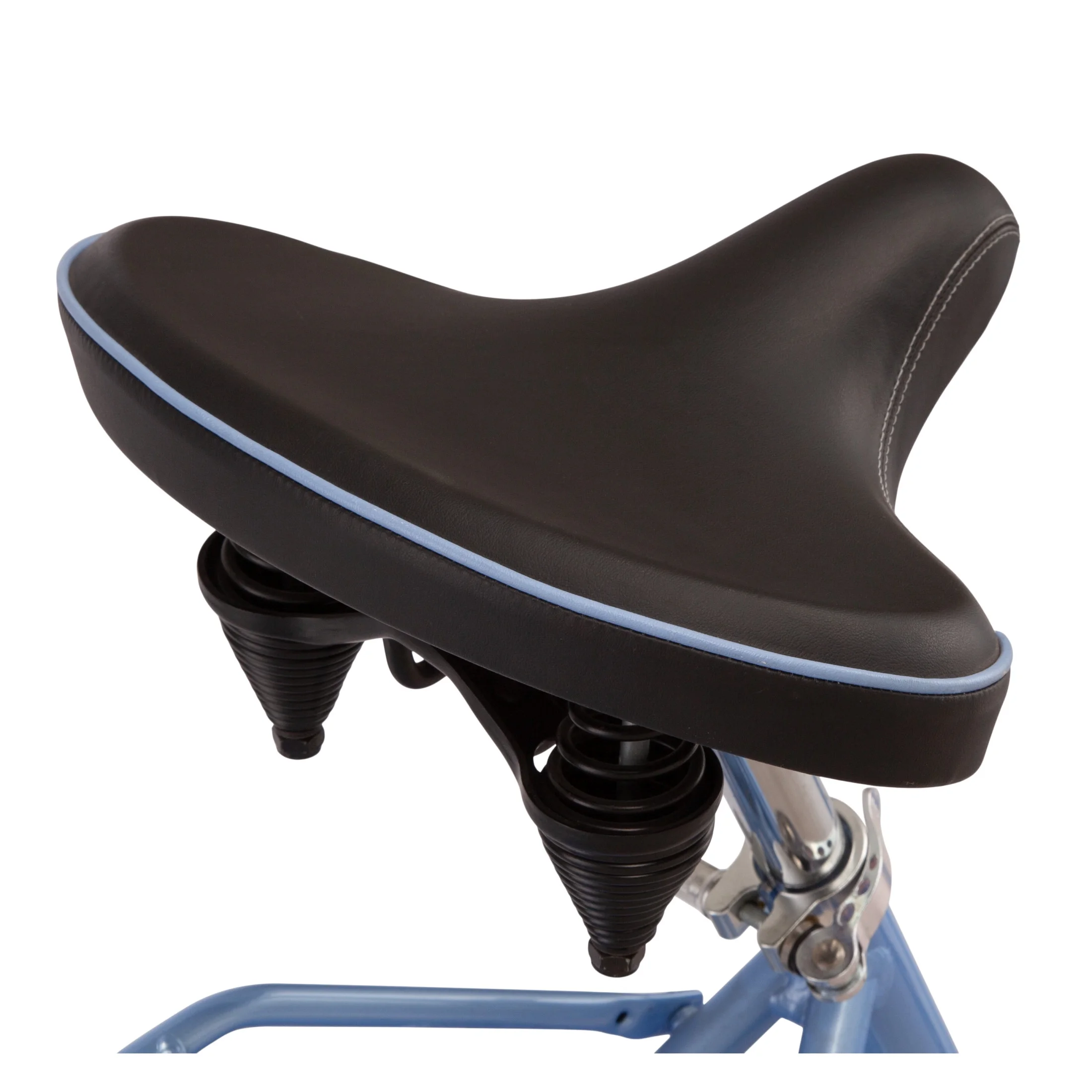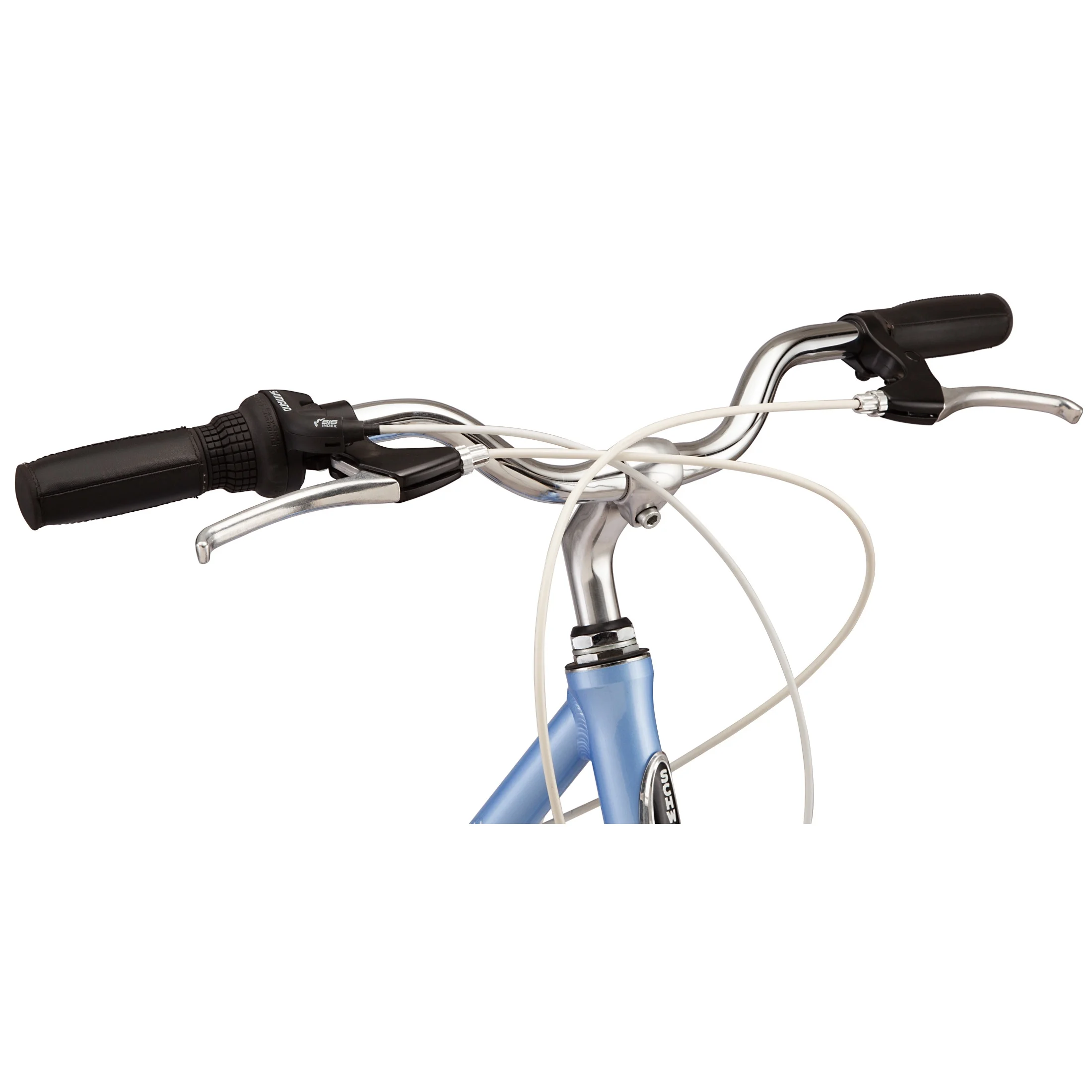 Relax with a ride on the Schwinn Riverwalk comfort bicycle. The Riverwalk features a low-step aluminum comfort frame with rigid fork and upright geometry for a comfortable riding position for casual rides. 7-speed twist shifters offer quick and easy gear changes, while the aluminum V-brake delivers secure stopping power. Plus, the full chain guard and chain ring guard provide added safety and help keep your pant legs clean.