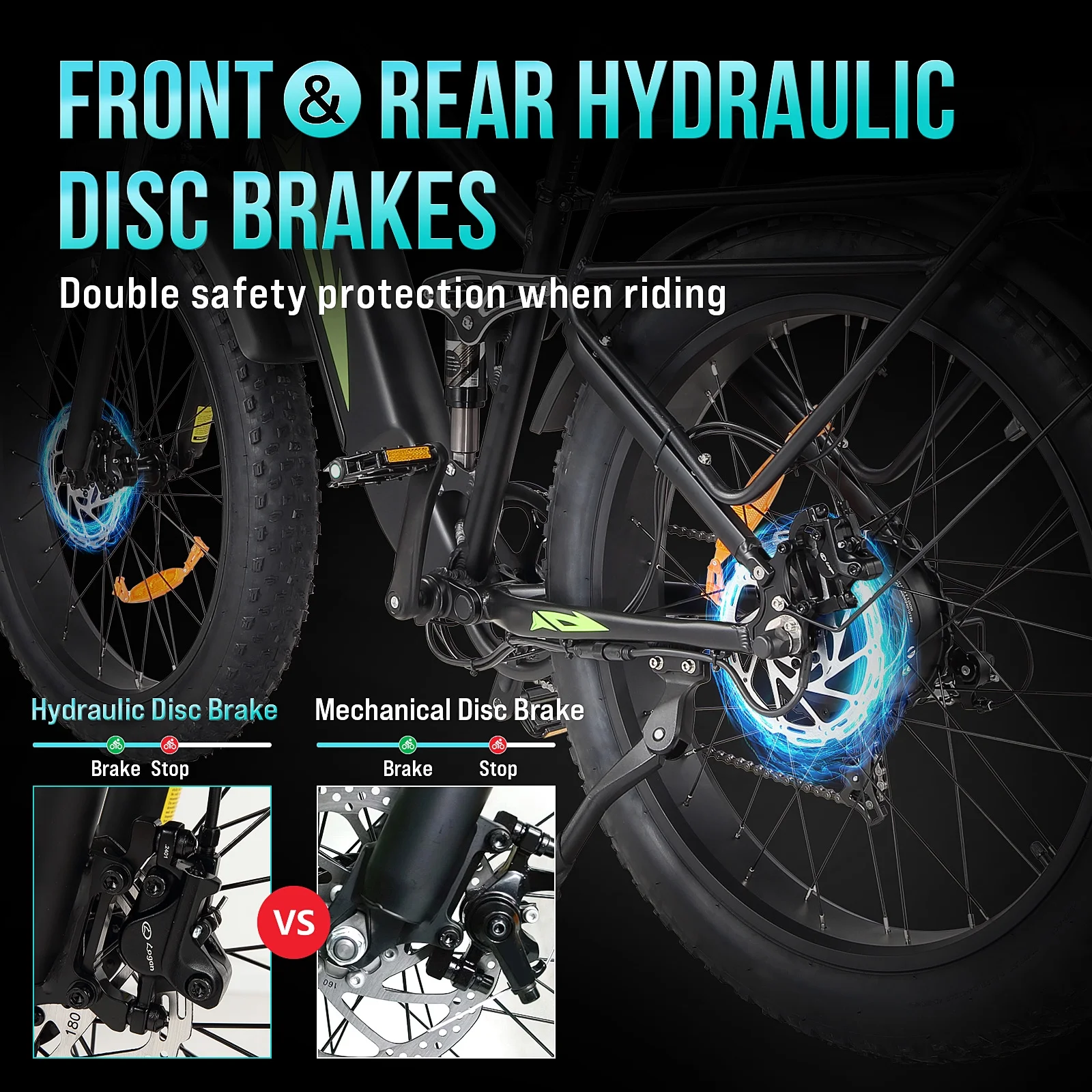 - Enhanced Safety Features--Ride with peace of mind knowing that our adult electric bicycle is designed with advanced safety features, including dual hydraulic disc brakes, a horn, and an LCD display. These features ensure a secure and confident riding experience.