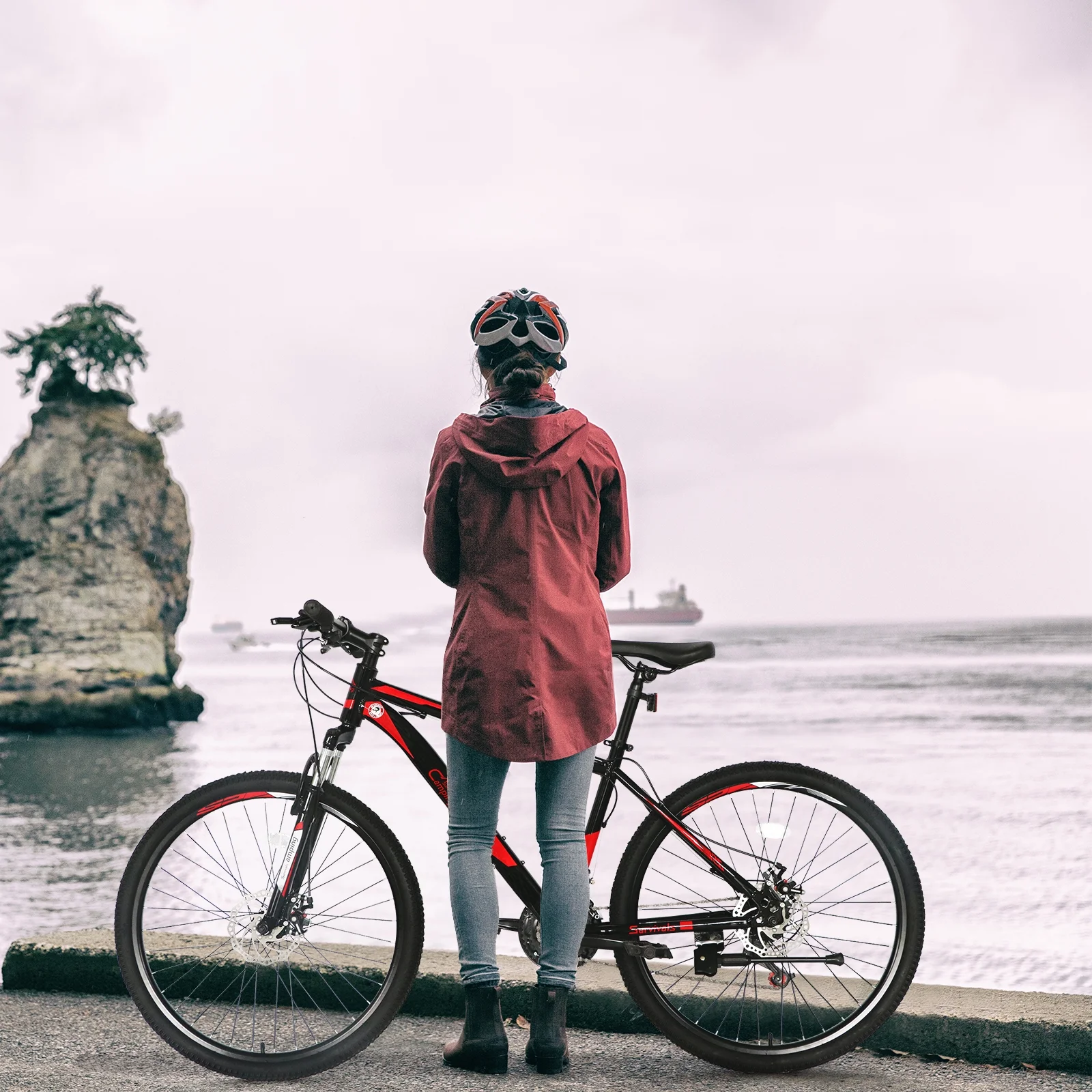 Here is an introduction to our CamPingSurvivals 26 Inch 21 Speed Explorer Red Black Mountain Bike. It adopts a double-disc brake system, which brakes sensitively and makes driving more stable and reliable. It also uses a thick shock-absorbing front fork, which can comfortably cope with various road sections and has a good shock-absorbing effect. What are you waiting for? Order now!