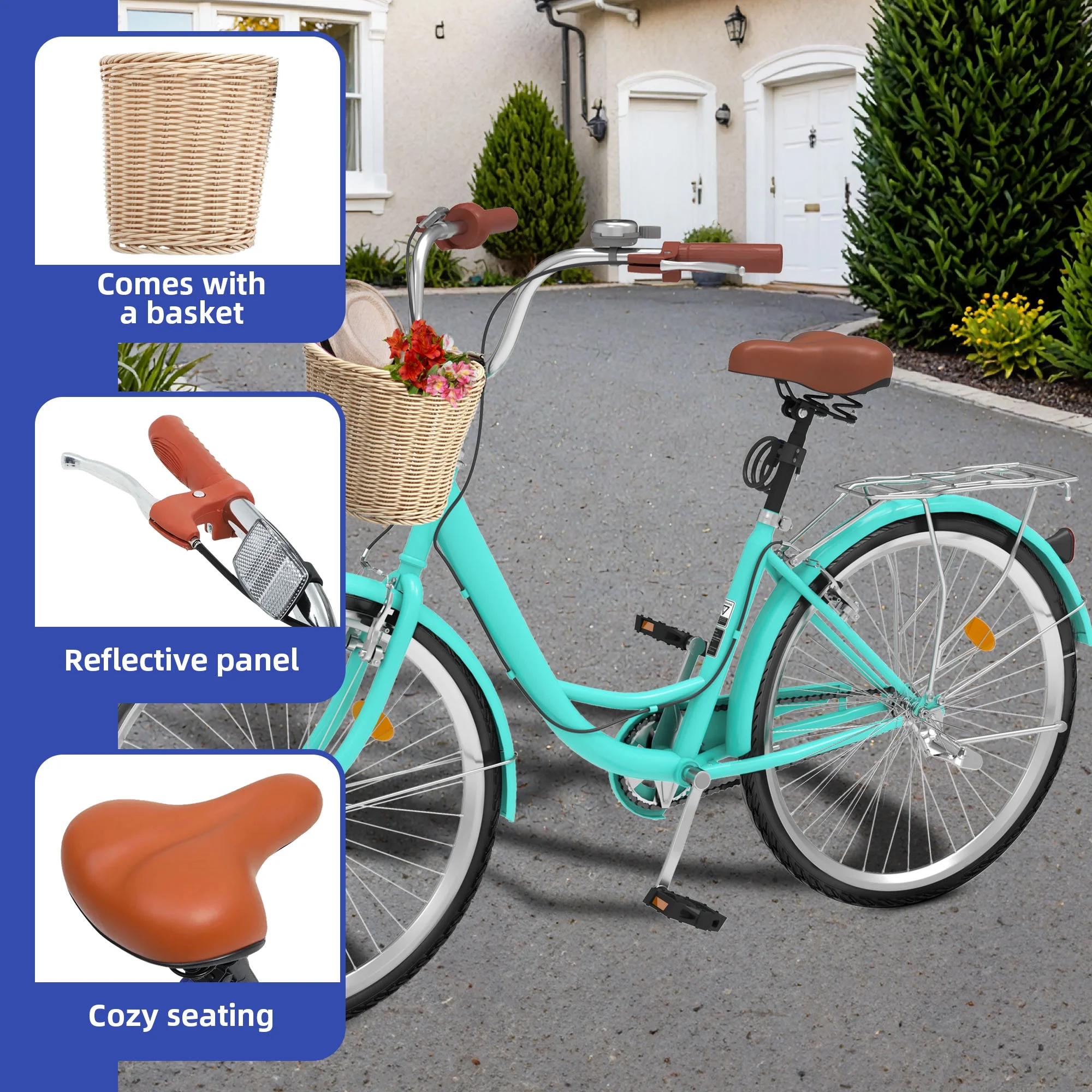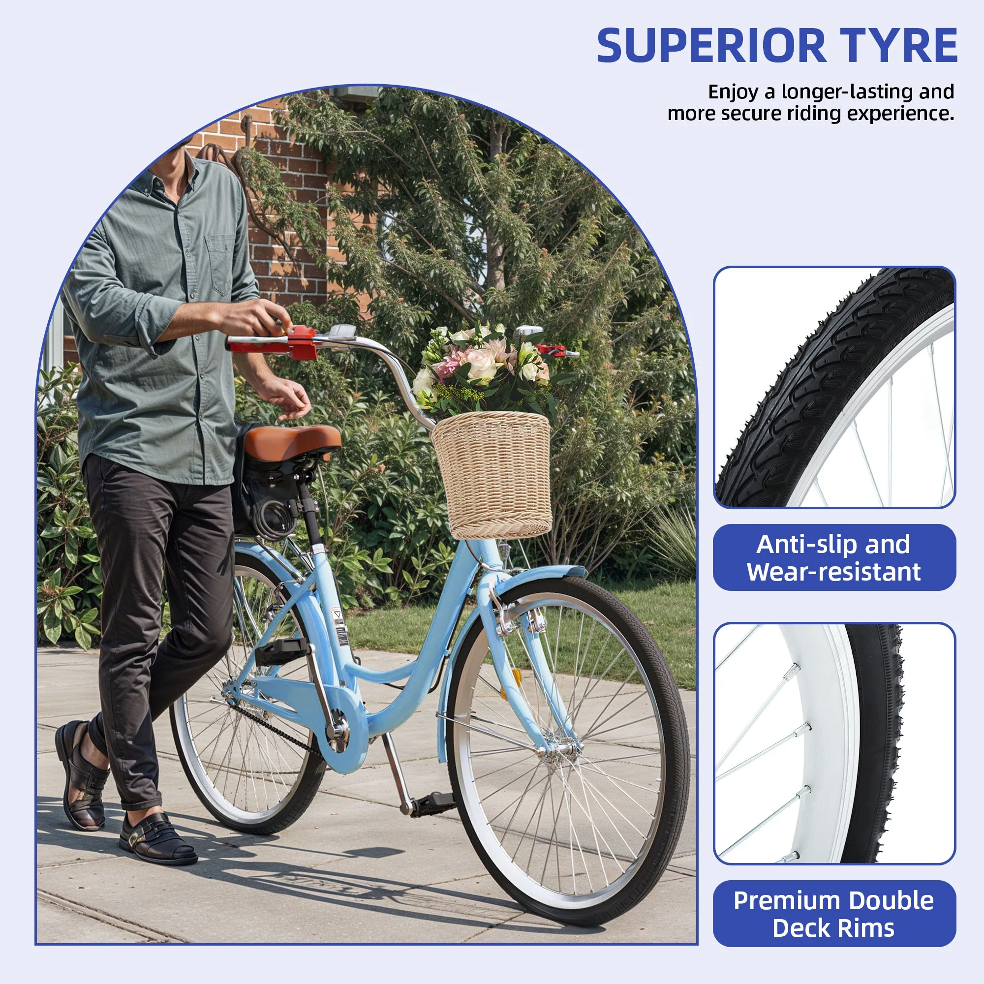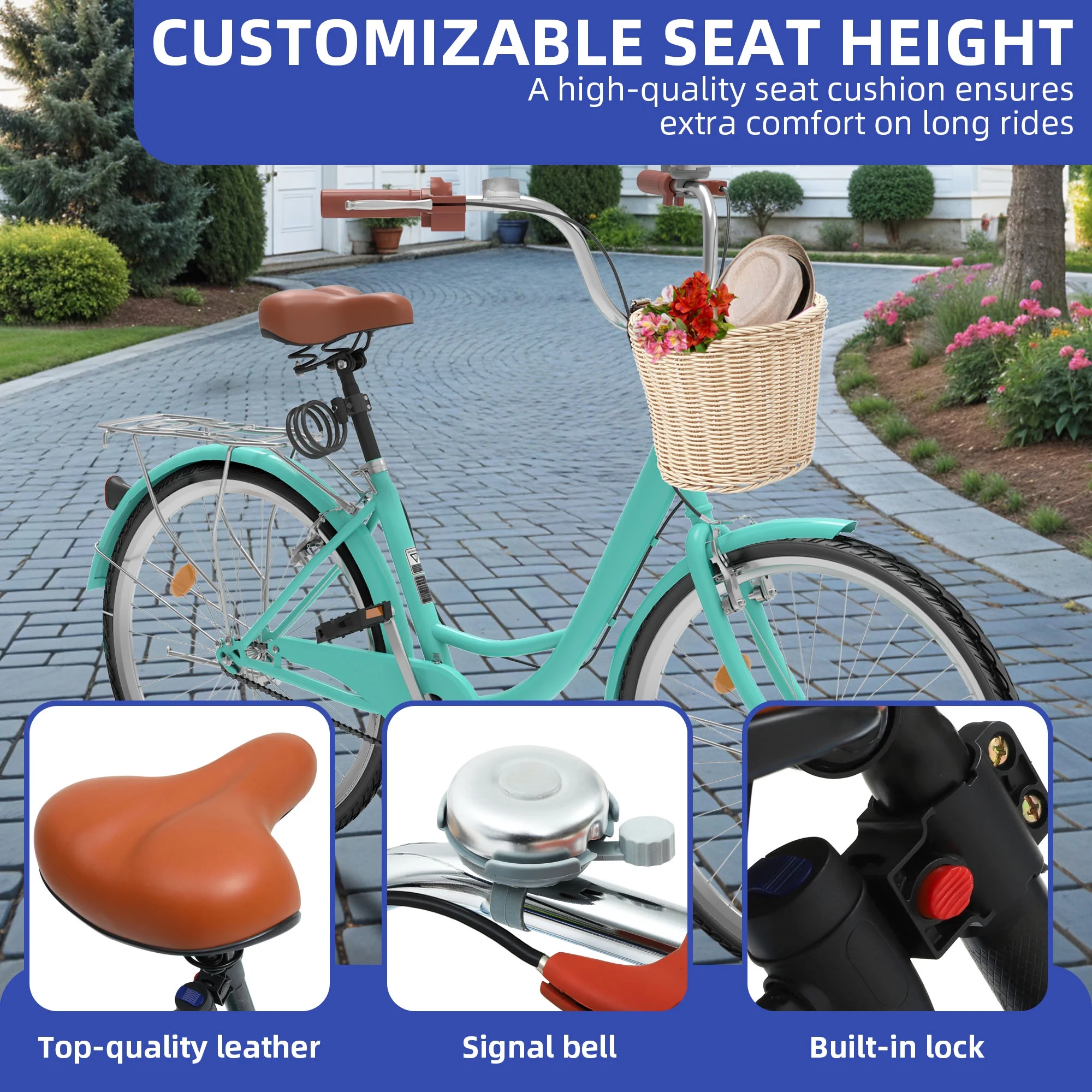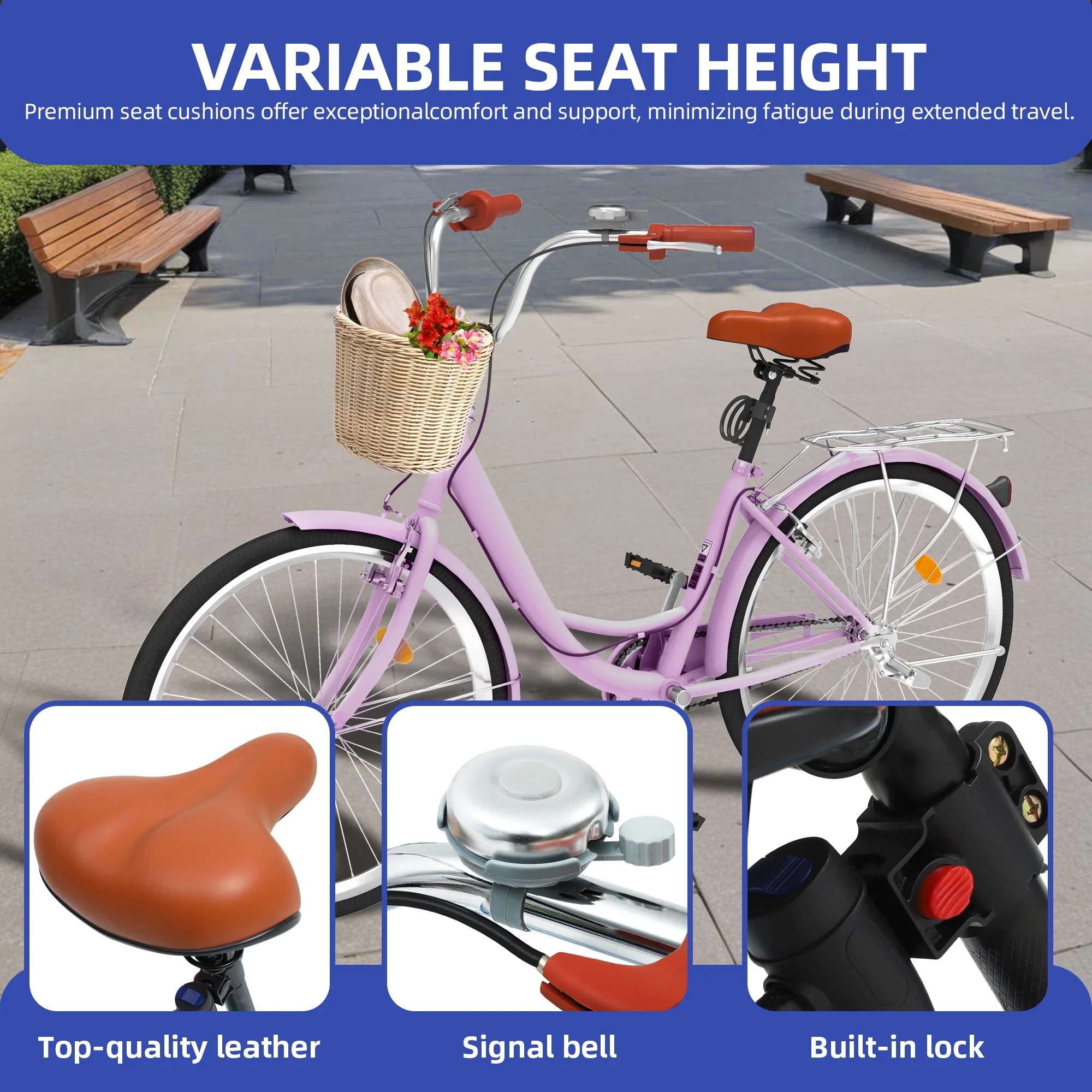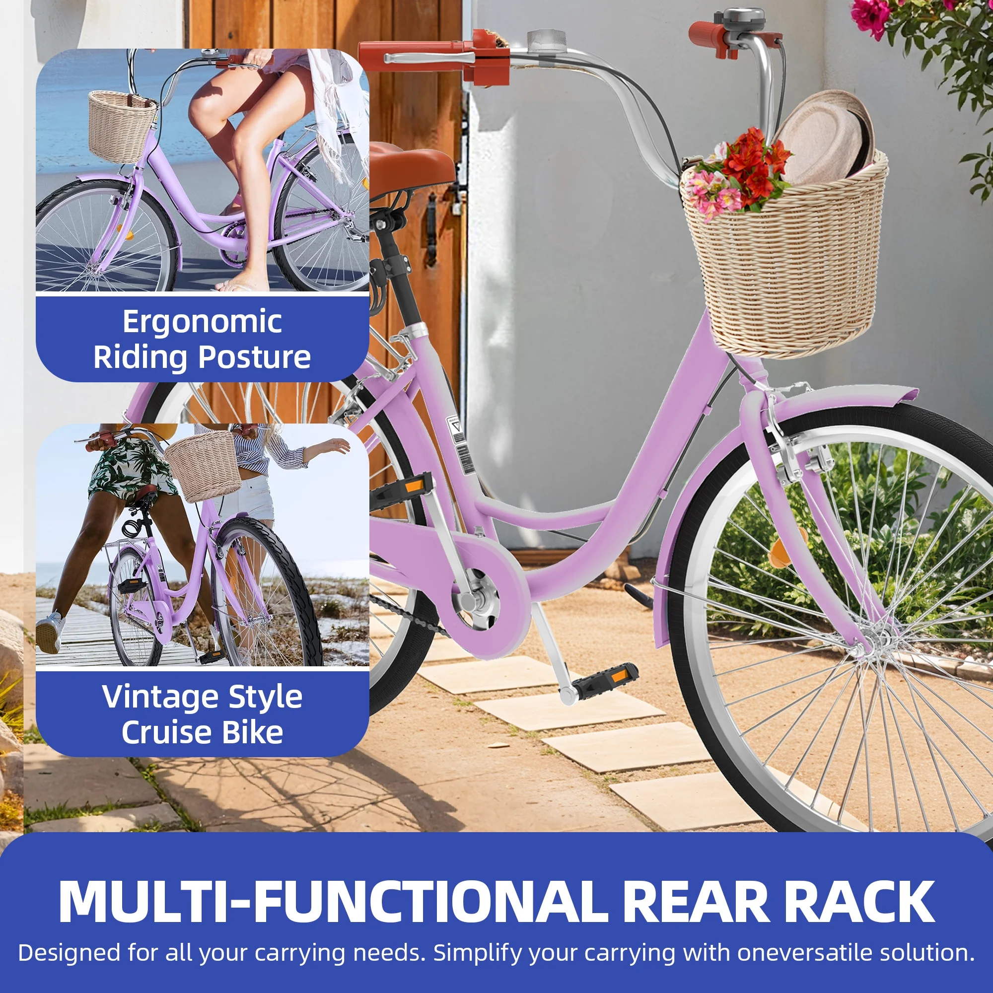Experience the perfect blend of style, comfort, and functionality with the 26" 1/7-Speed Beach Cruiser Bike. Designed for women who love leisurely rides, this bike features a classic curved frame, dual suspension for a smooth journey, and vibrant color options. Whether cruising along the beach or exploring city streets, this lightweight and durable bike promises an enjoyable ride every time.