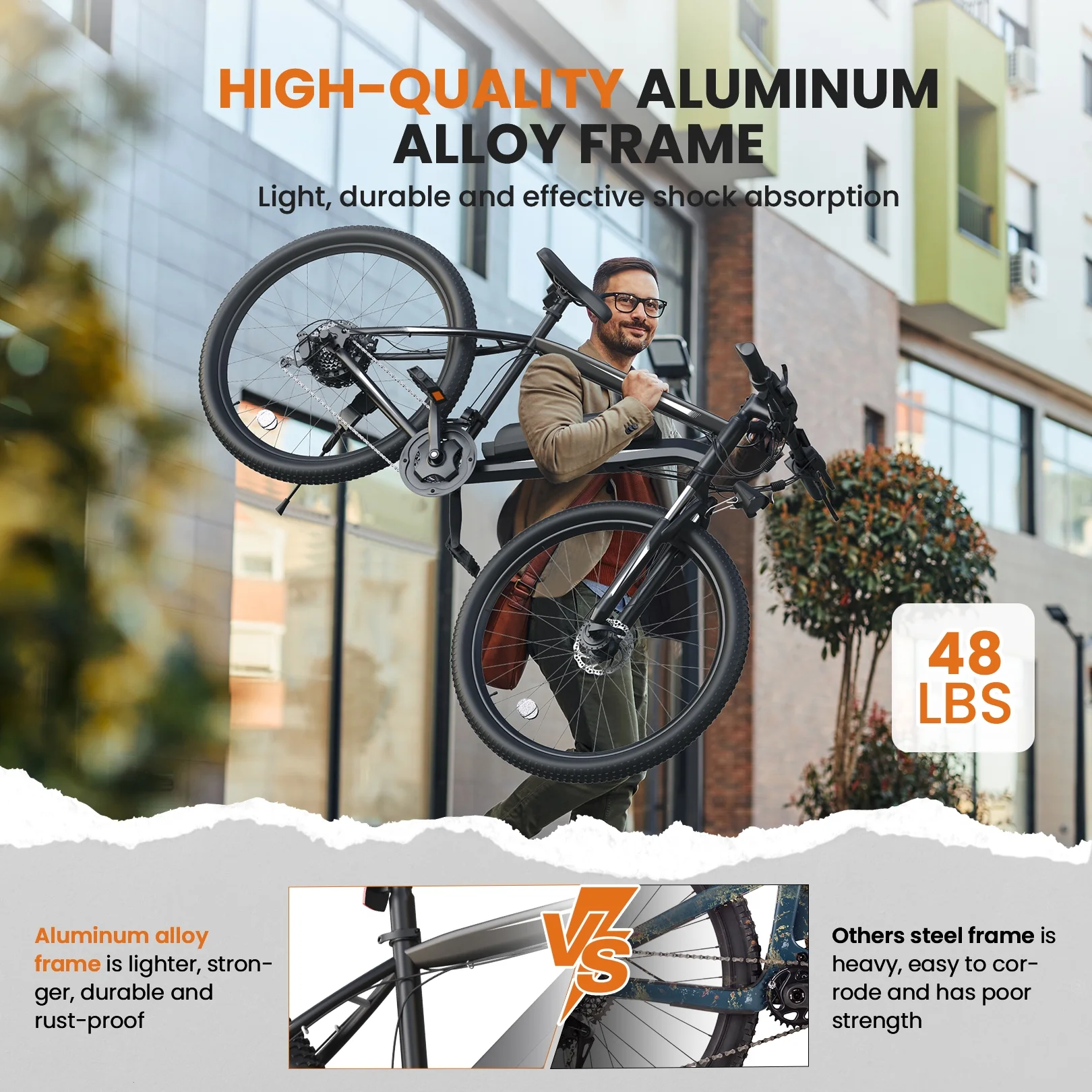 ?��500W Powerful and Stable Motor ��27.5'' electric bike for adults is equipped with a 500W powerful motor, which provides enough power, max speed is up to 19.8mph. It can meet your daily cycling and allow you to reach your destination easily and quickly.