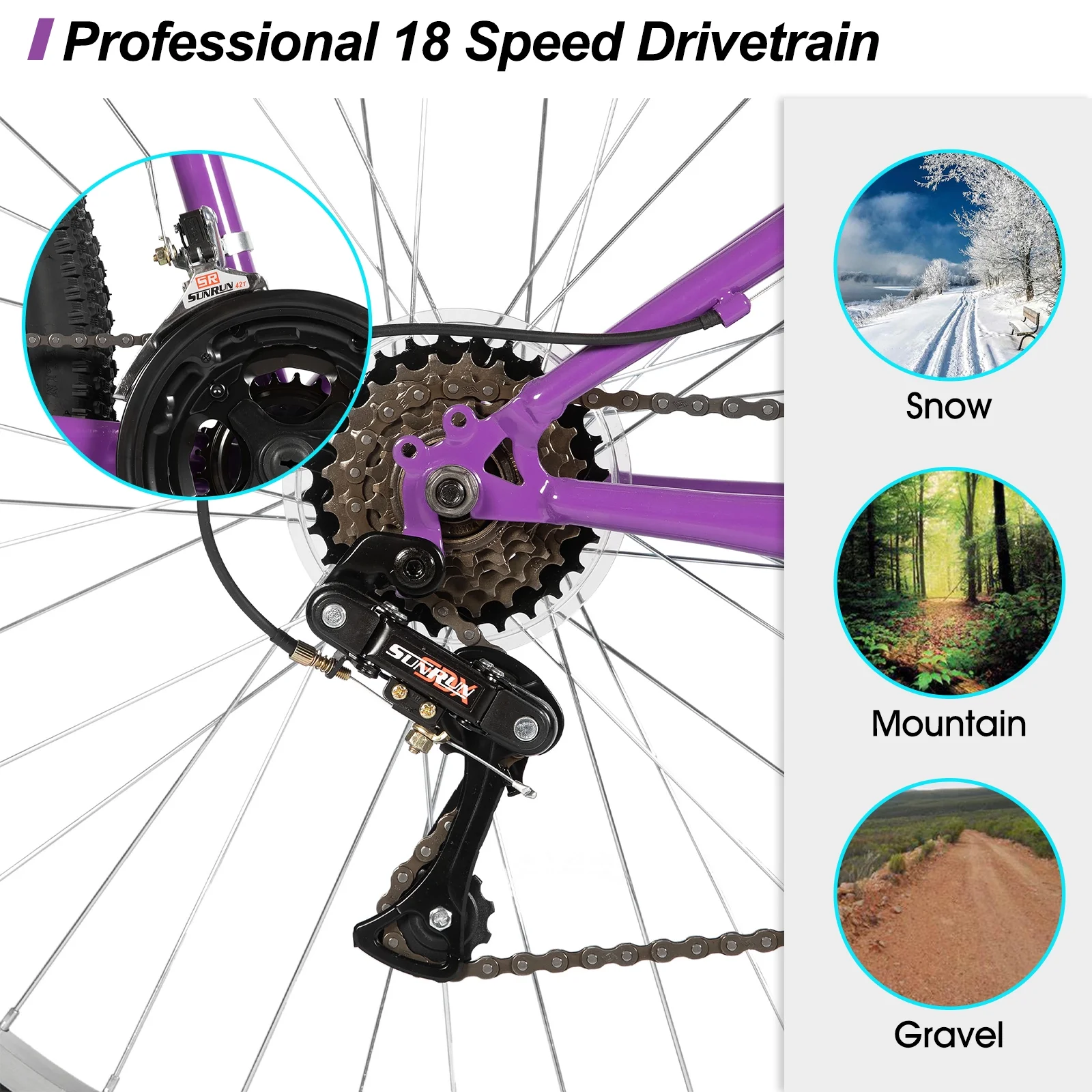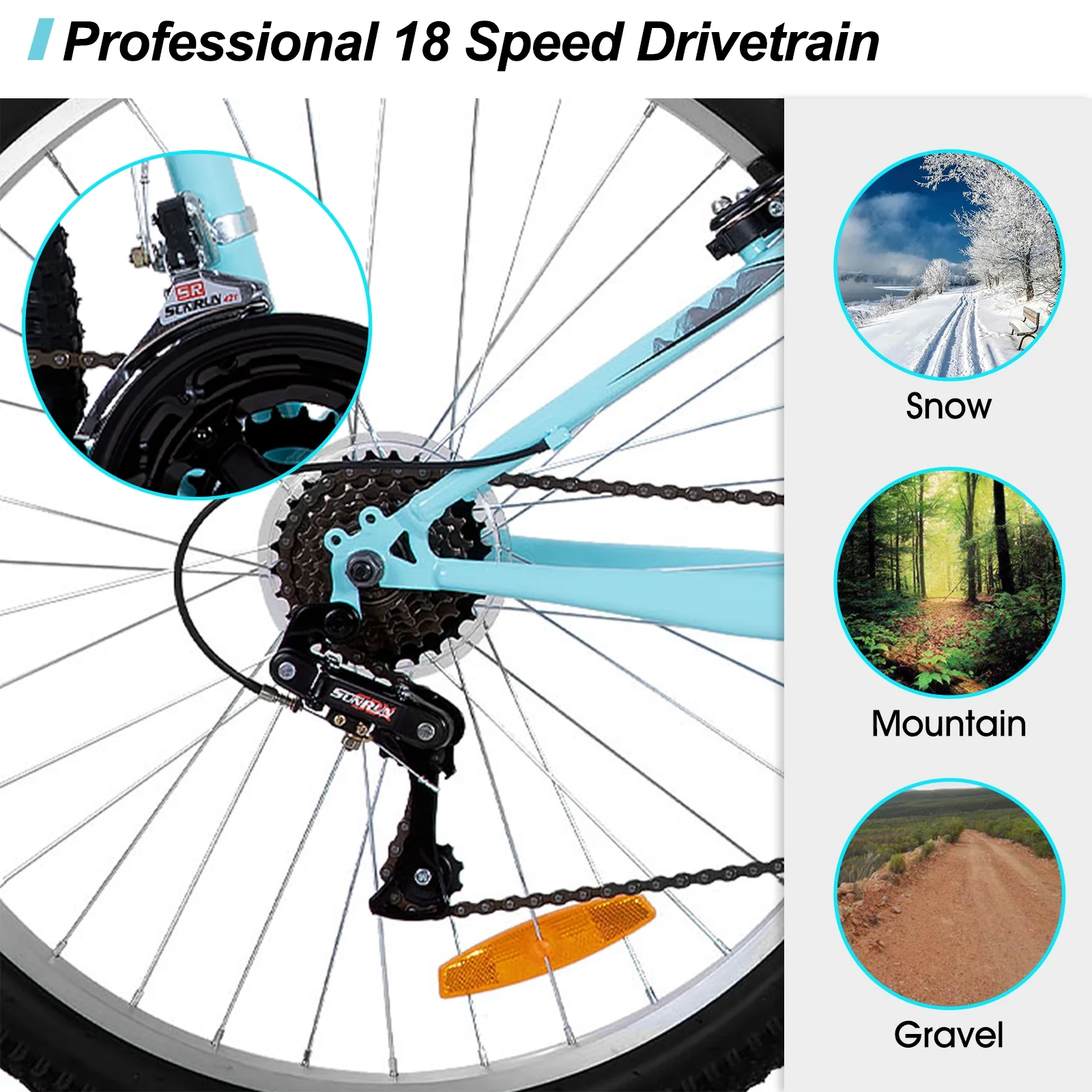 - Versatile 18-Speed Drivetain: Equipped with a 18-speed drivetrain, adult bikes offer a variety of speed options for a flexible riding experience. Easily adjust the gears to suit your preference