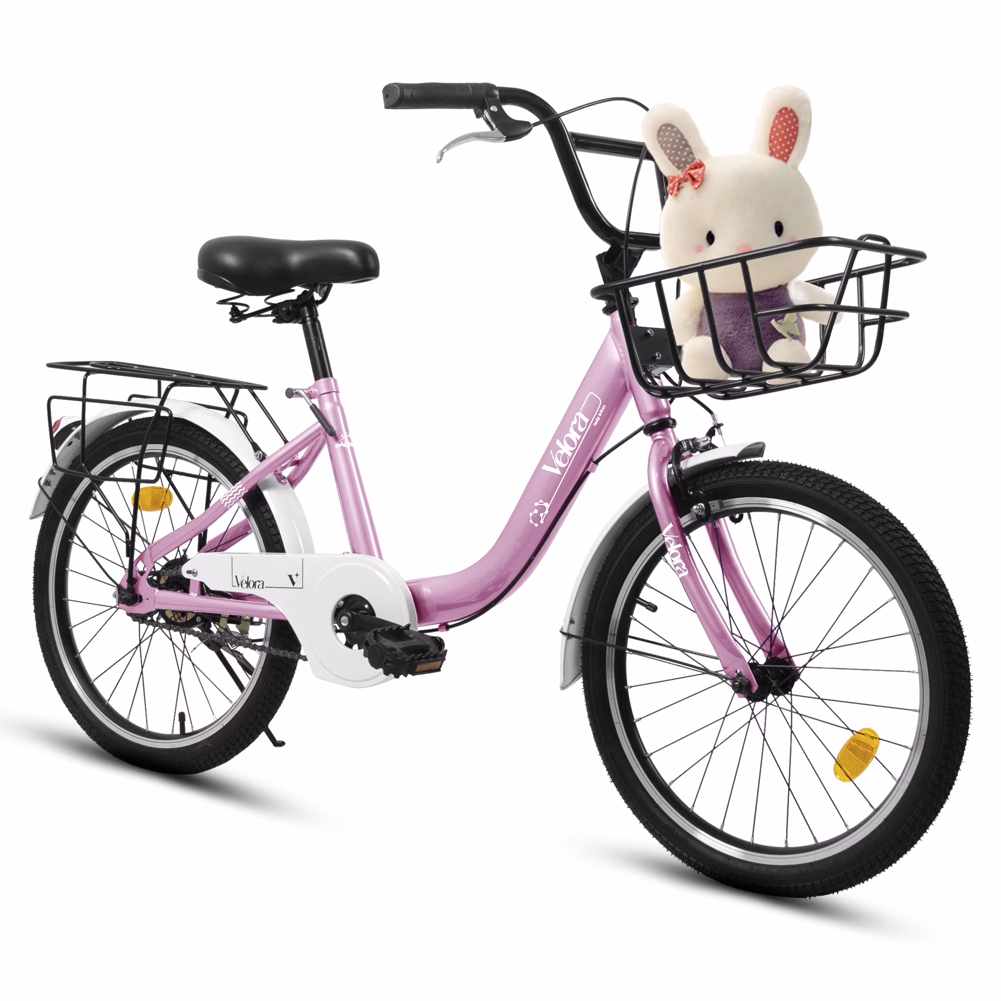 20 in Kids Bike for Boys Girls, 1 Speed Children Bicycle with Basket, Rear Seat, Chain Guard, Coaster Brake and V - Brake, Steel Frame Kids Bike for Ages 6 - 12 Years Old Birthday Gift, Purple