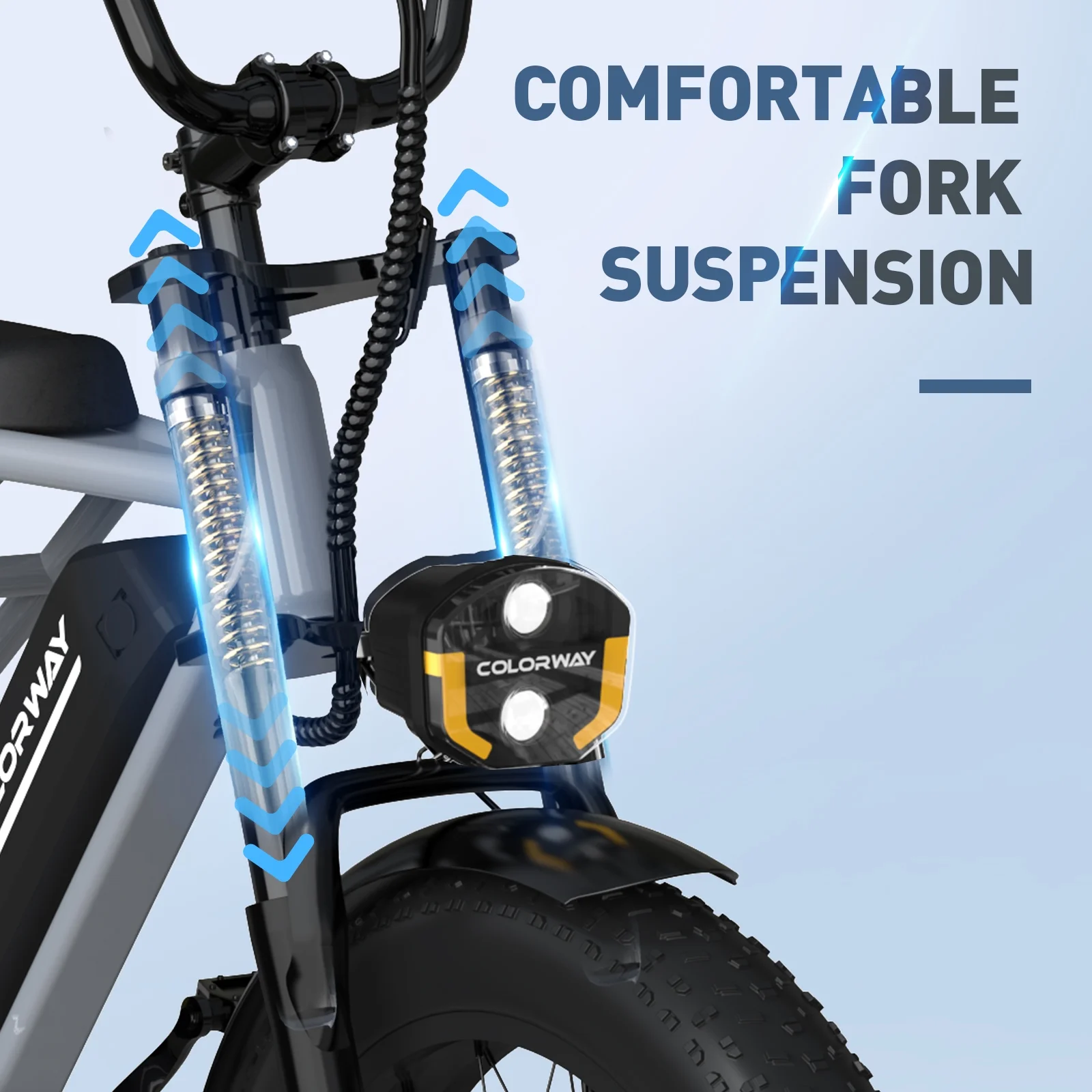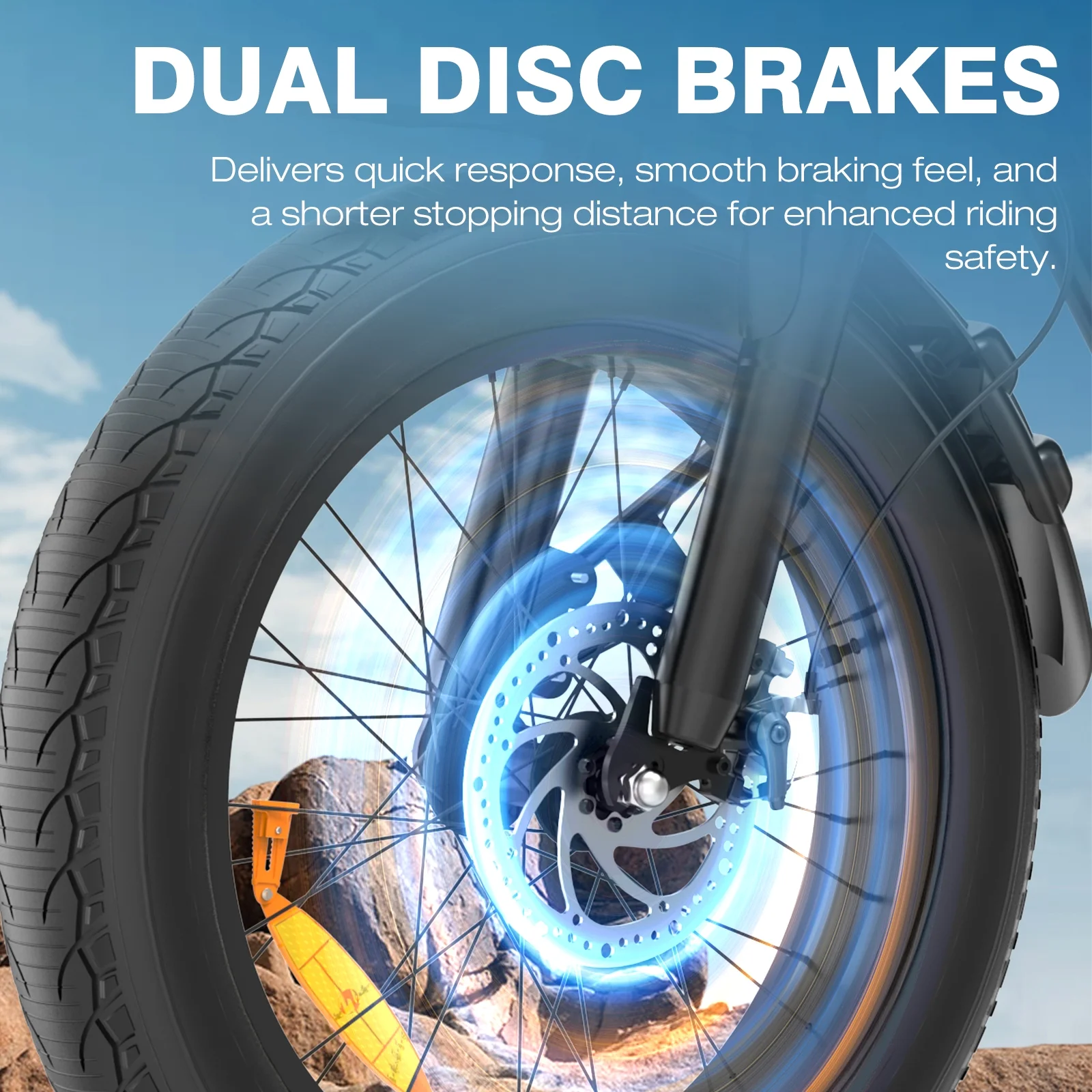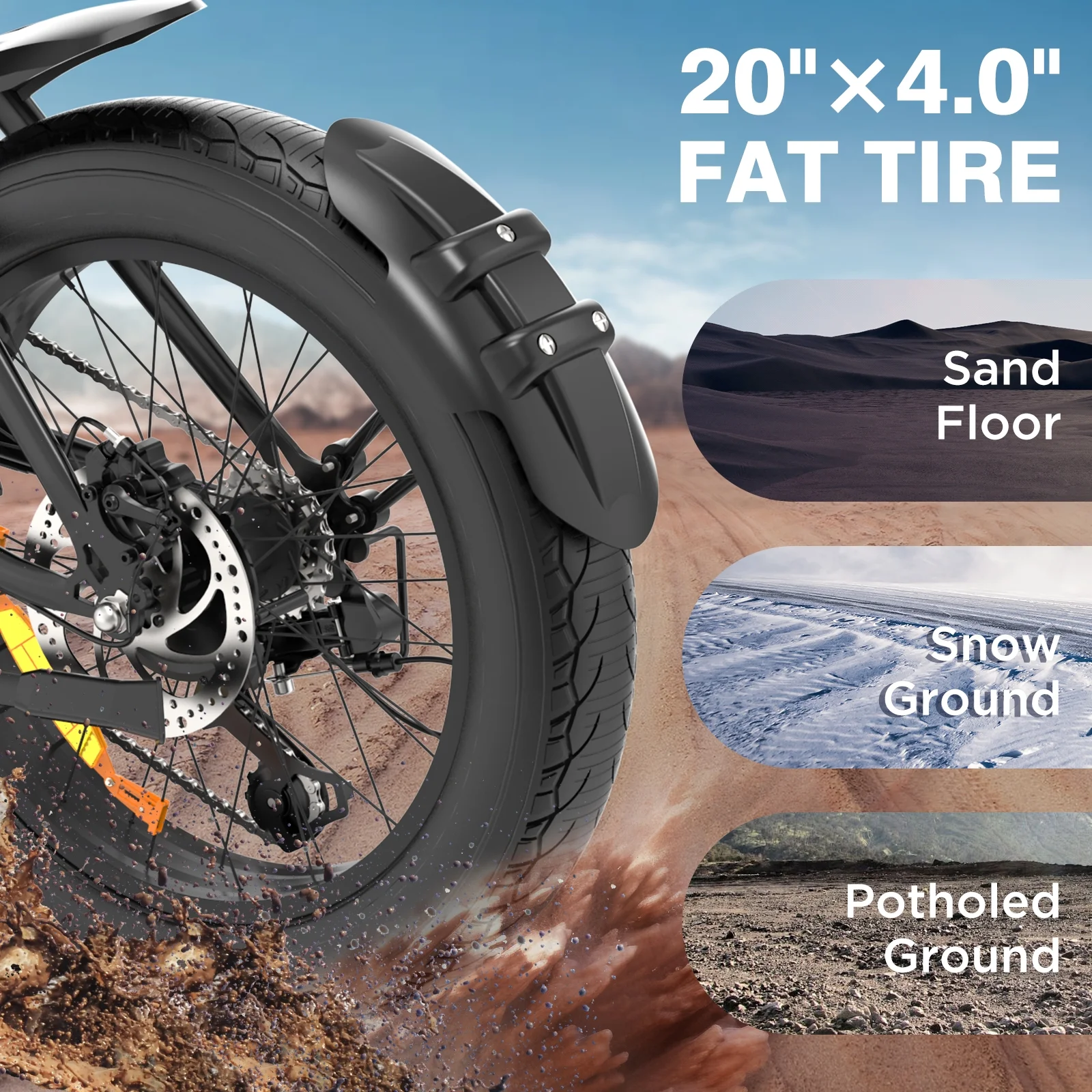 - ��20*4.0 Fat Tire Electric Bike�� The off-road electric bikes specially use super strong professional 4.0 size fat tires that are wear-resistant and puncture-resistant. Its grip is strong, allowing you to easily deal with various road surfaces,and it can let you ride freely in mountains and cities to explore nature. The front fork is used for shock absorption and the middle shock absorption makes riding more comfortable and more stable.