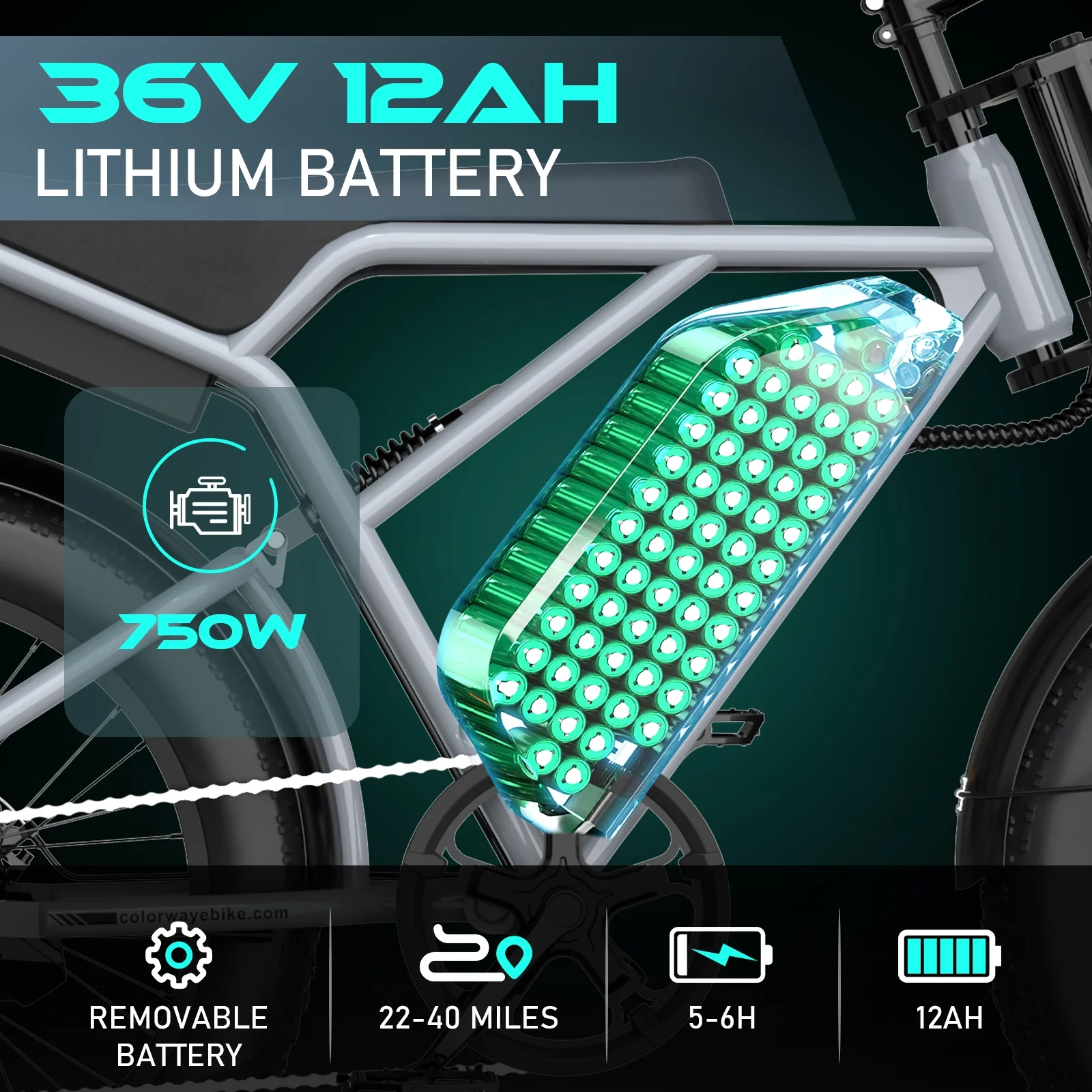 - ��750W E Bike��This electric bike adopts750W 48V rear motor, which can provide strong power and the top speed can reach 19.9MPH. COLORWAY electric bike cross to power you through any terrain (dirt, street, mountain, beach, snow).