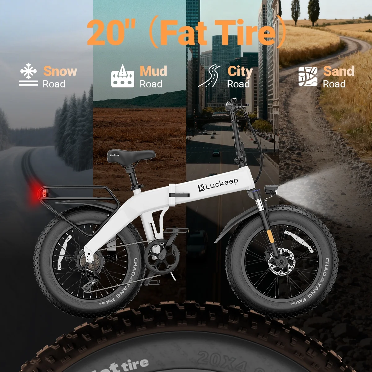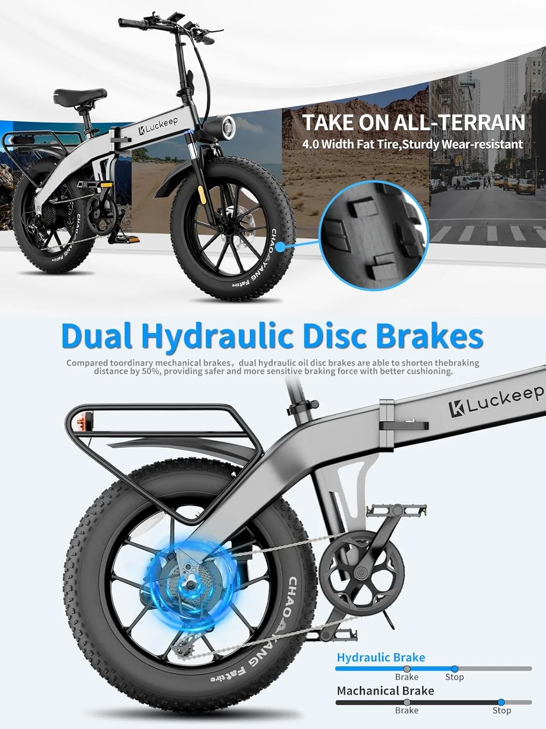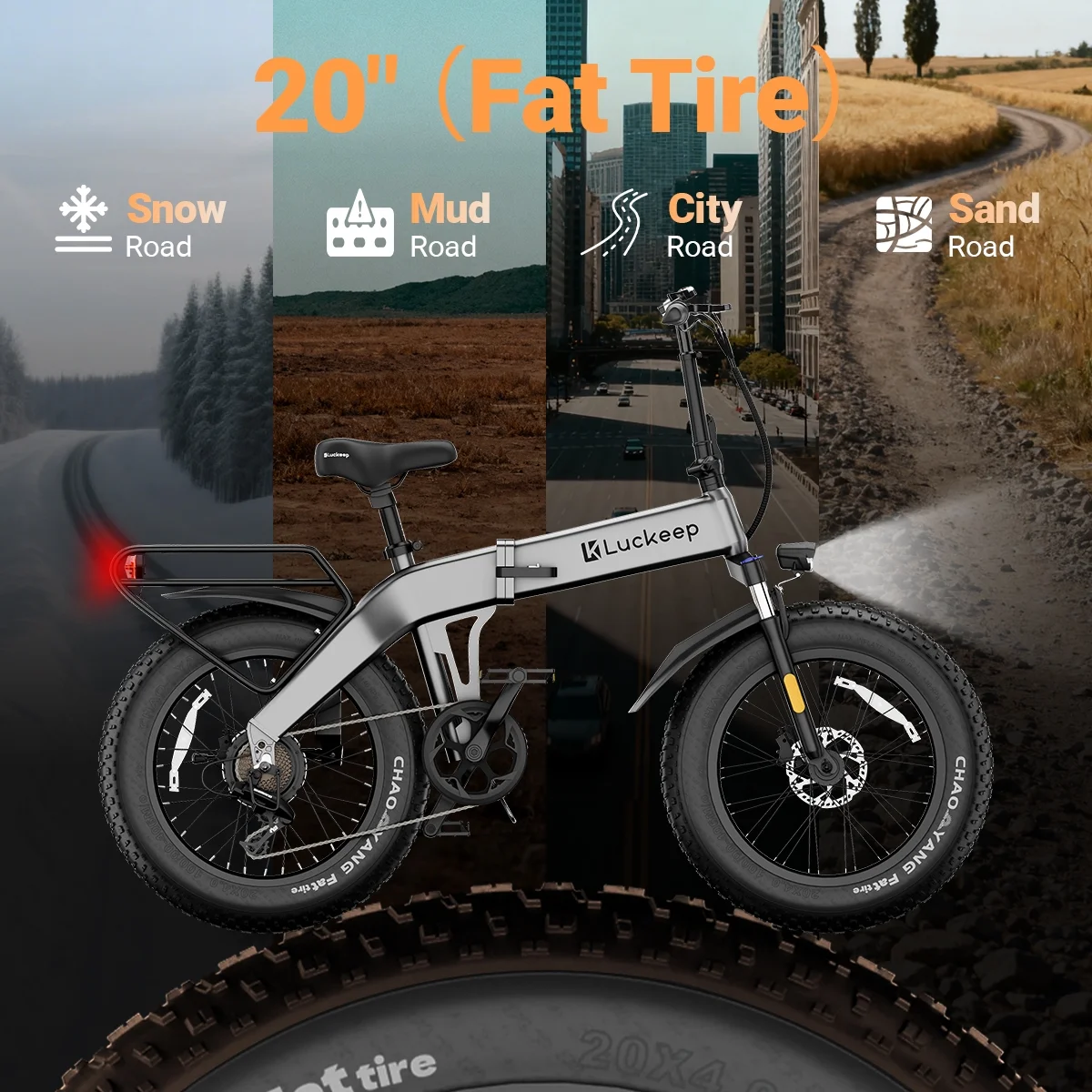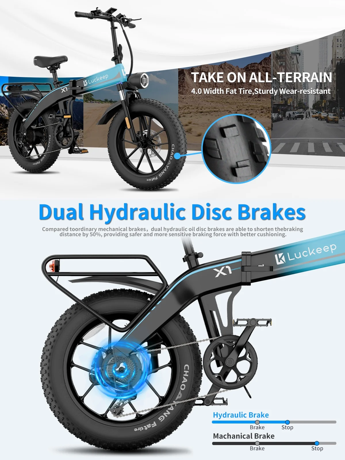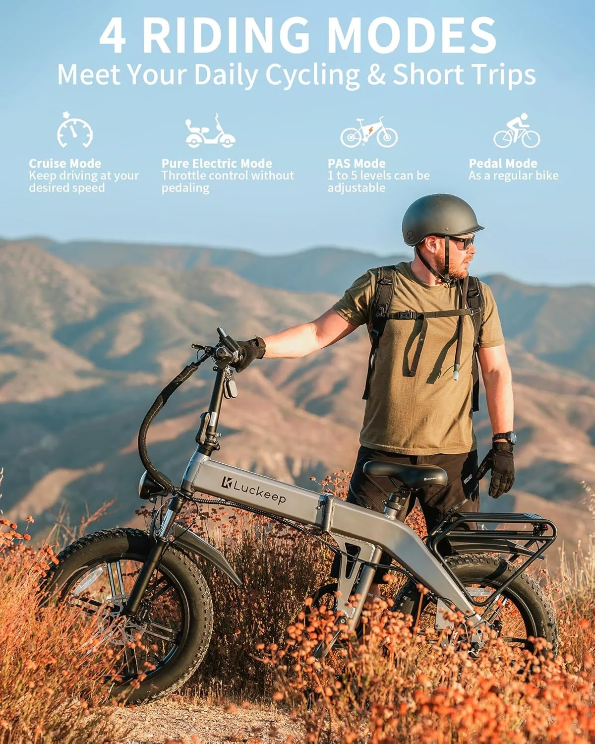 Luckeep X1 Lite Foldable Electric Bike for Adults 1500W Peak Motor, 720WH Removable Battery, 28MPH 60 Miles Long Range, 20"*4" Fat Tire All - Terrain E - Bike with Front Suspension, Mountain Electric Bicycle