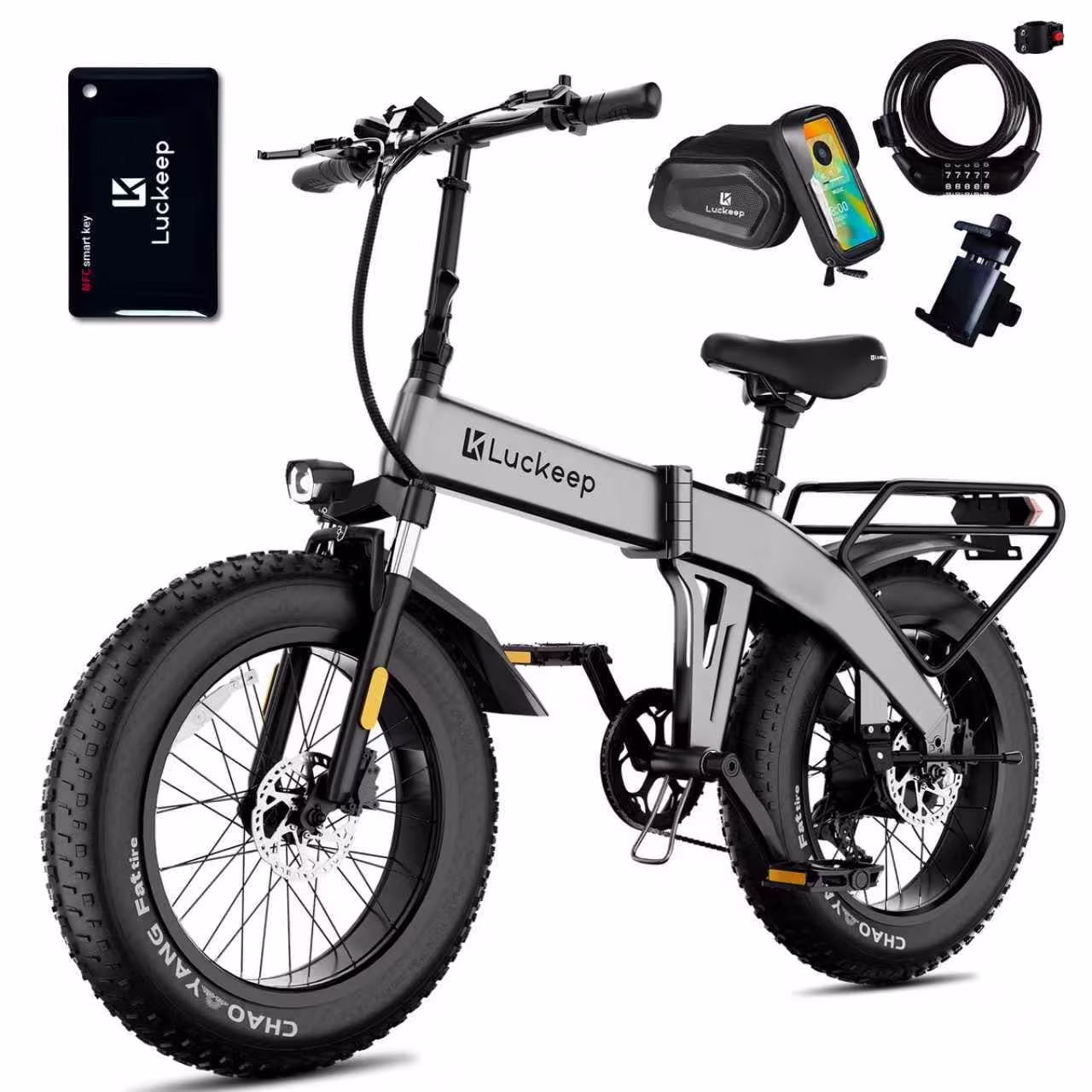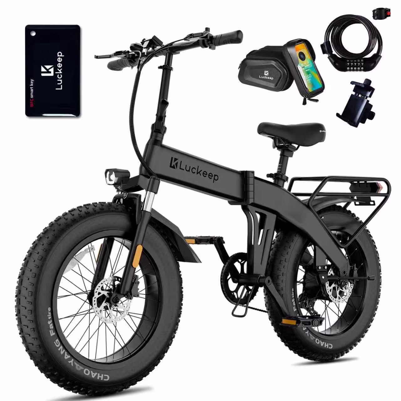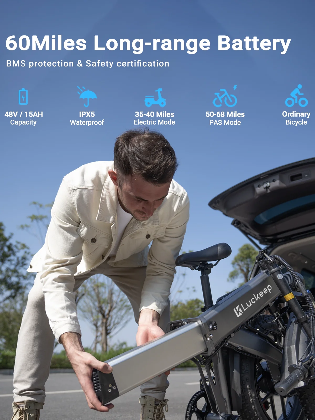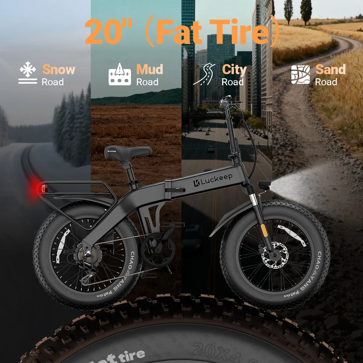 Luckeep X1 Lite Foldable Electric Bike for Adults 1500W Peak Motor, 720WH Removable Battery, 28MPH 60 Miles Long Range, 20"*4" Fat Tire All - Terrain E - Bike with Front Suspension, Mountain Electric Bicycle