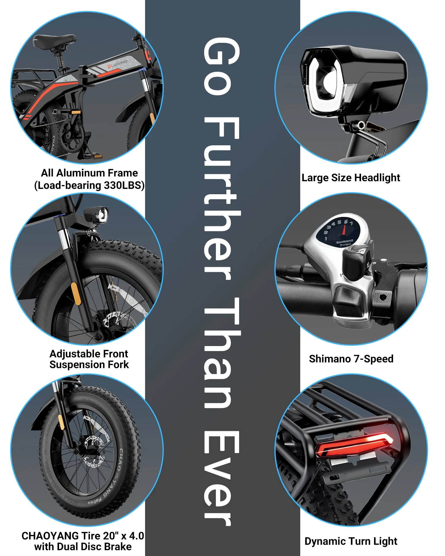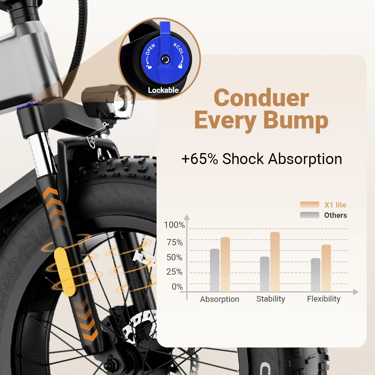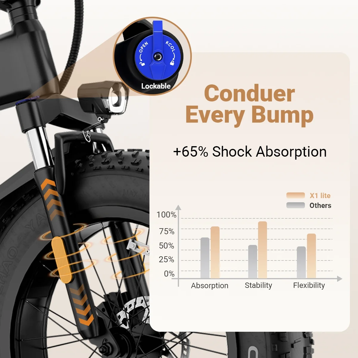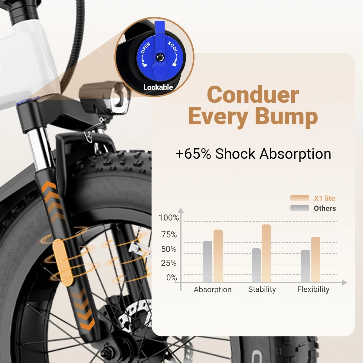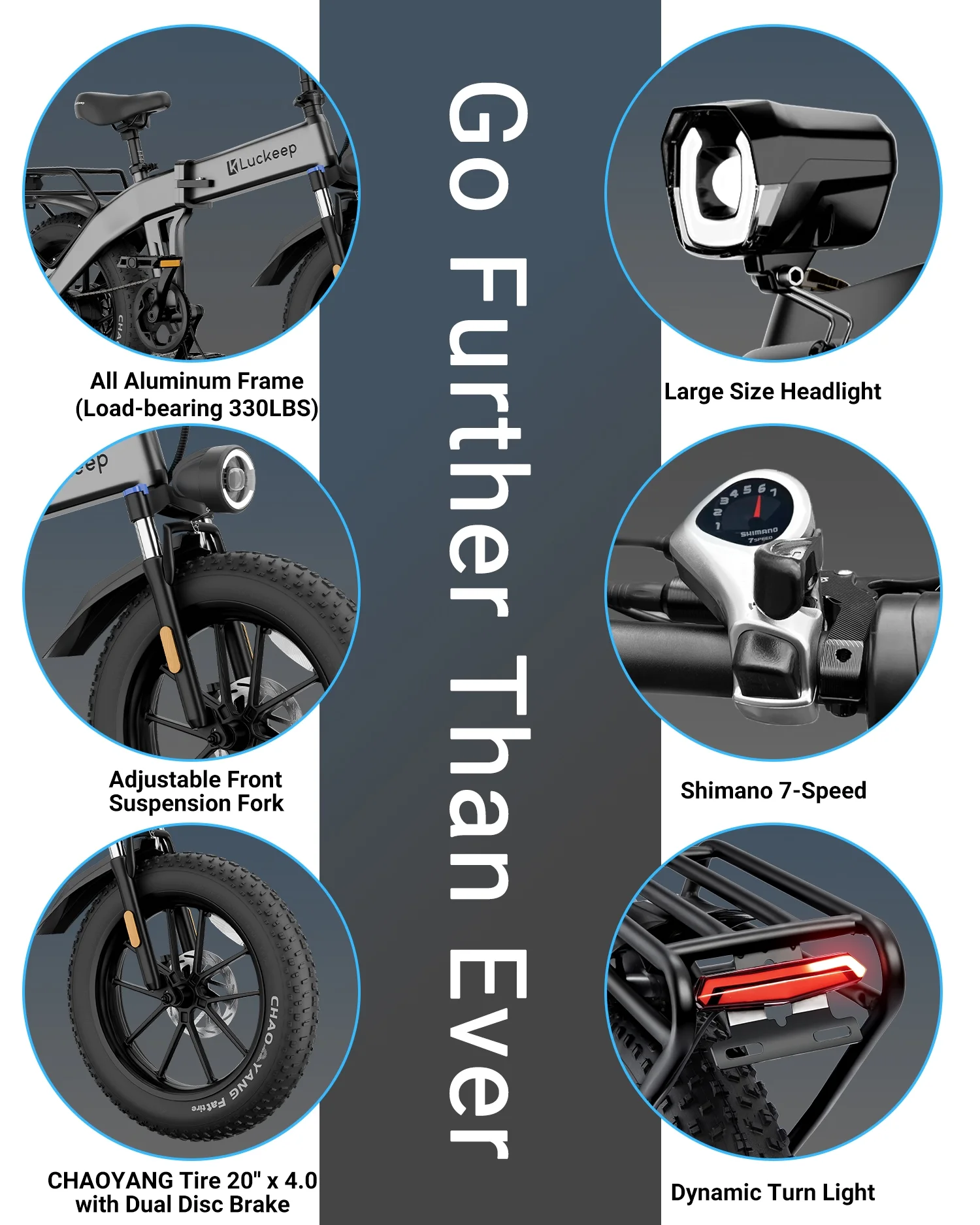 Luckeep X1 Lite Foldable Electric Bike for Adults 1500W Peak Motor, 720WH Removable Battery, 28MPH 60 Miles Long Range, 20"*4" Fat Tire All - Terrain E - Bike with Front Suspension, Mountain Electric Bicycle