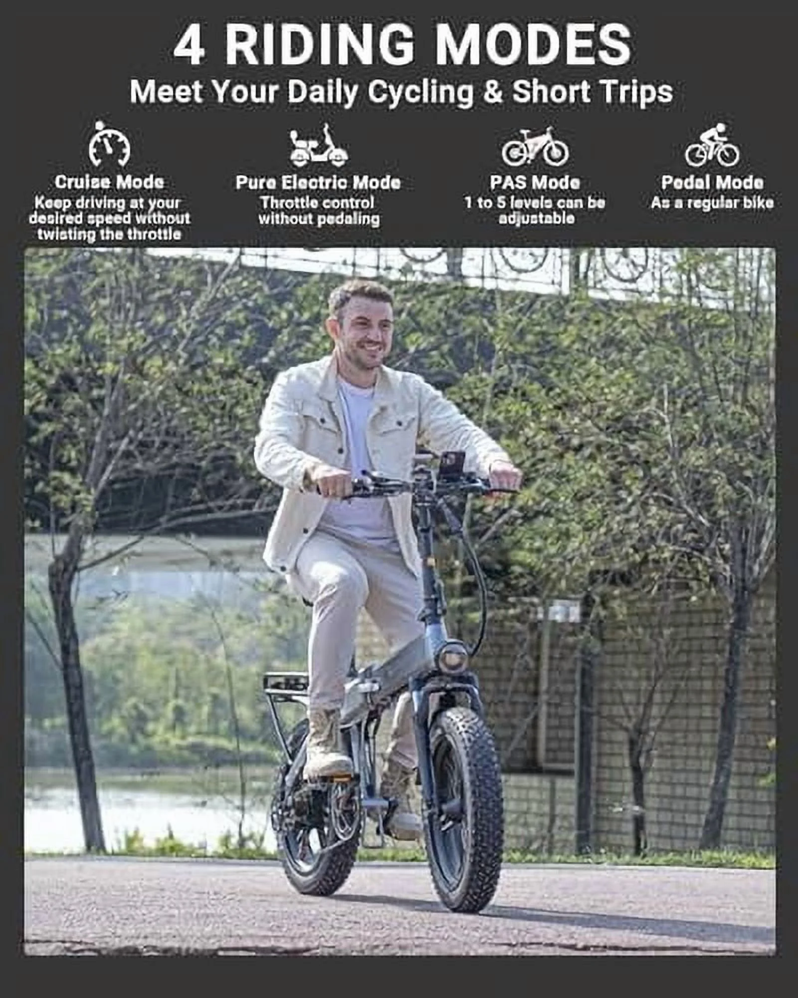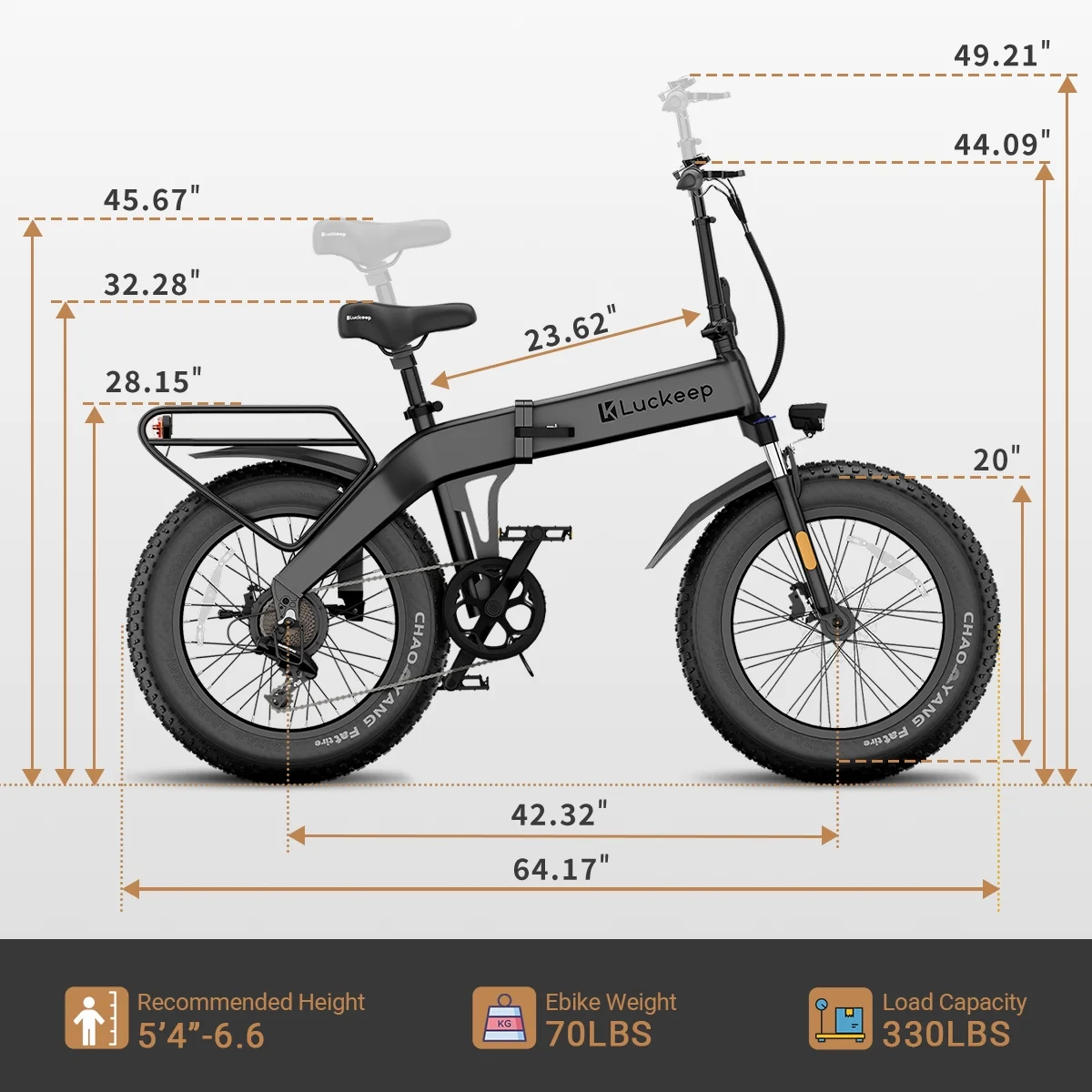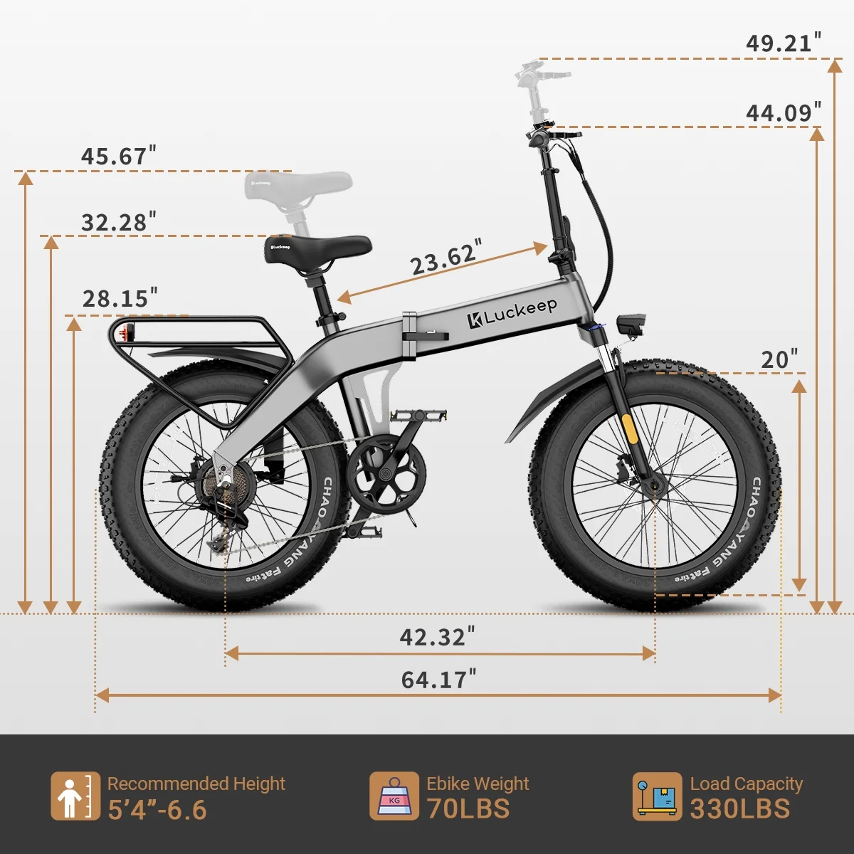 - Two step folding design will make it easier to carry or store in the trunk.When folded, the folding e-bike measures 39.4" �� 21.7" �� 30.7", making it compact enough for car trunks, RVs, or apartments.Especially for daily riders, seniors, or those carrying gear.The seat and handlebar height is adjustable for person of different heights (5'4"-6'6").