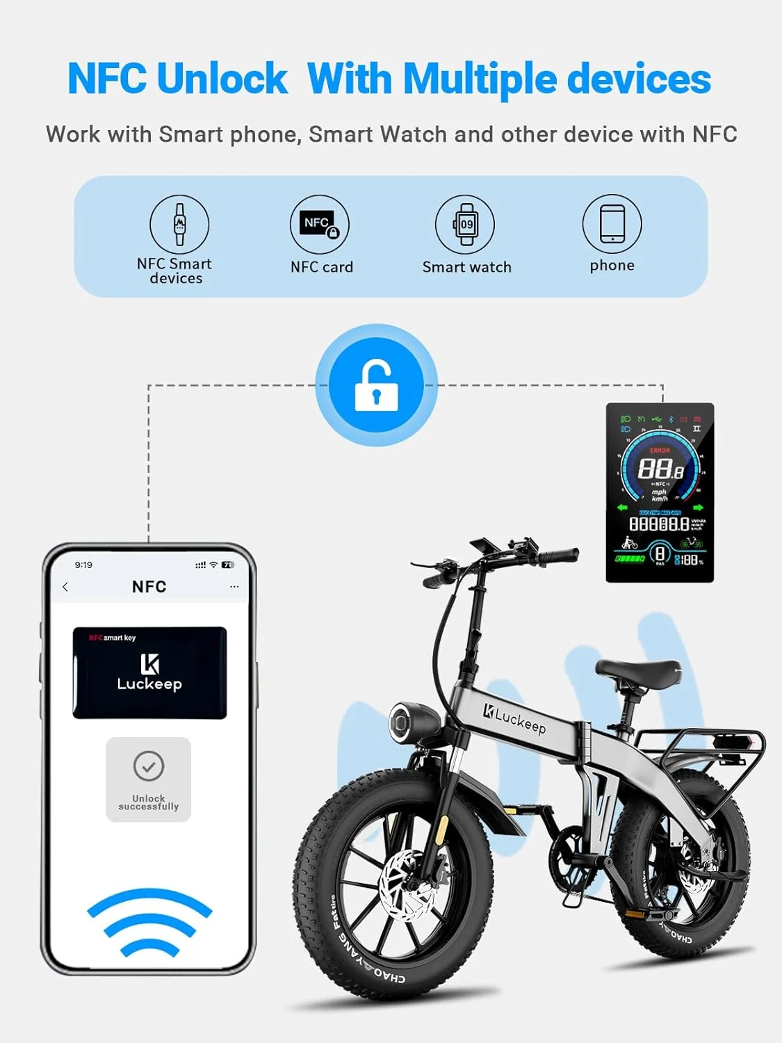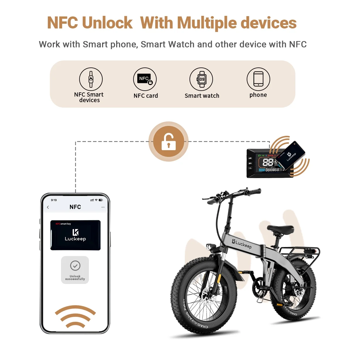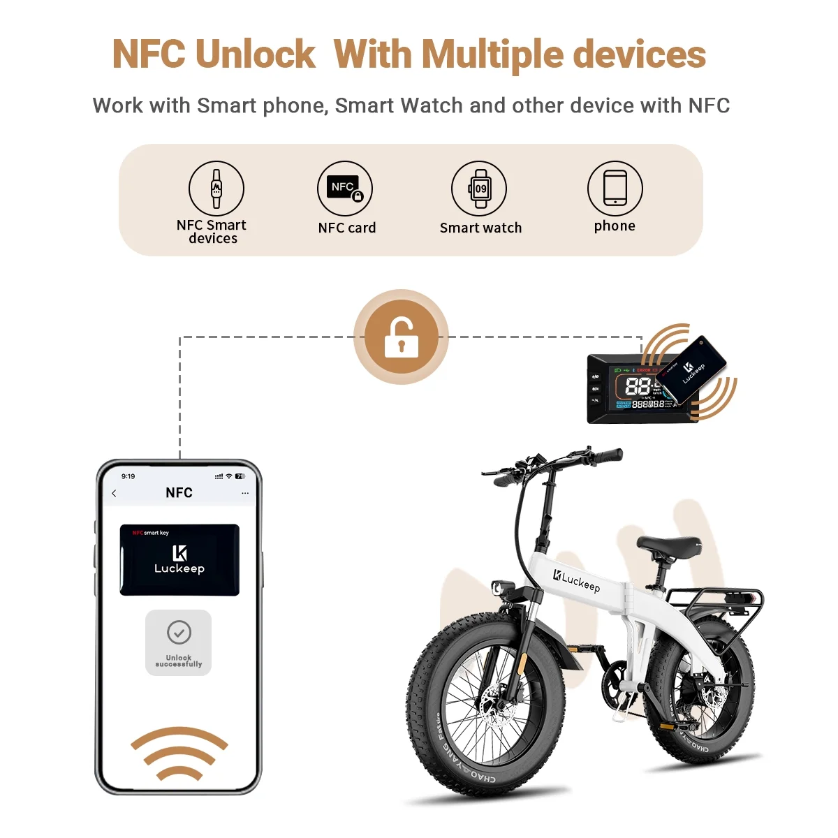 - Smart NFC unlock technology replaces traditional keys��start your ride using a smartphone, smartwatch, or NFC card. Choose from Cruise, PAS, Pure Electric, or Pedal Mode, and adjust your ride with five levels of pedal assist. Cruise control and twist throttle offer an effortless Riding experience.