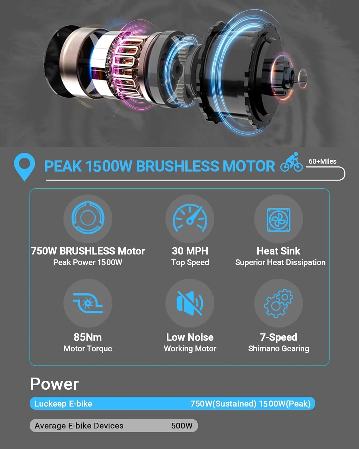 - Equipped with a robust 1500W peak motor and 85N��m torque, the Luckeep X1LITE E-bike for adults easily takes on 30�� slopes, rough mountain trails, city streets, and sandy beaches��up to 28MPH. Offering trusted safety and stable output for every ride.