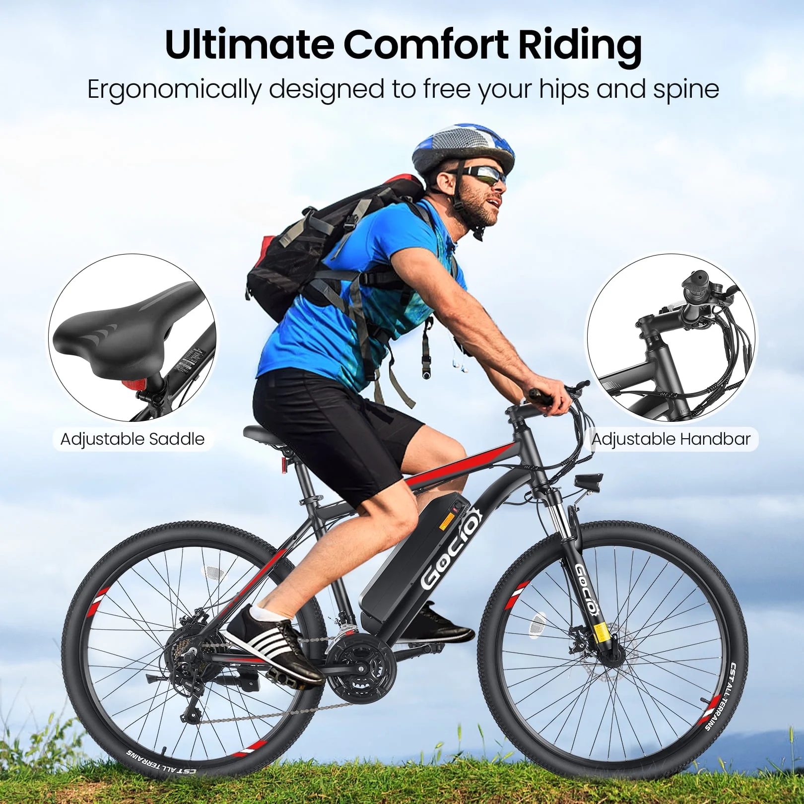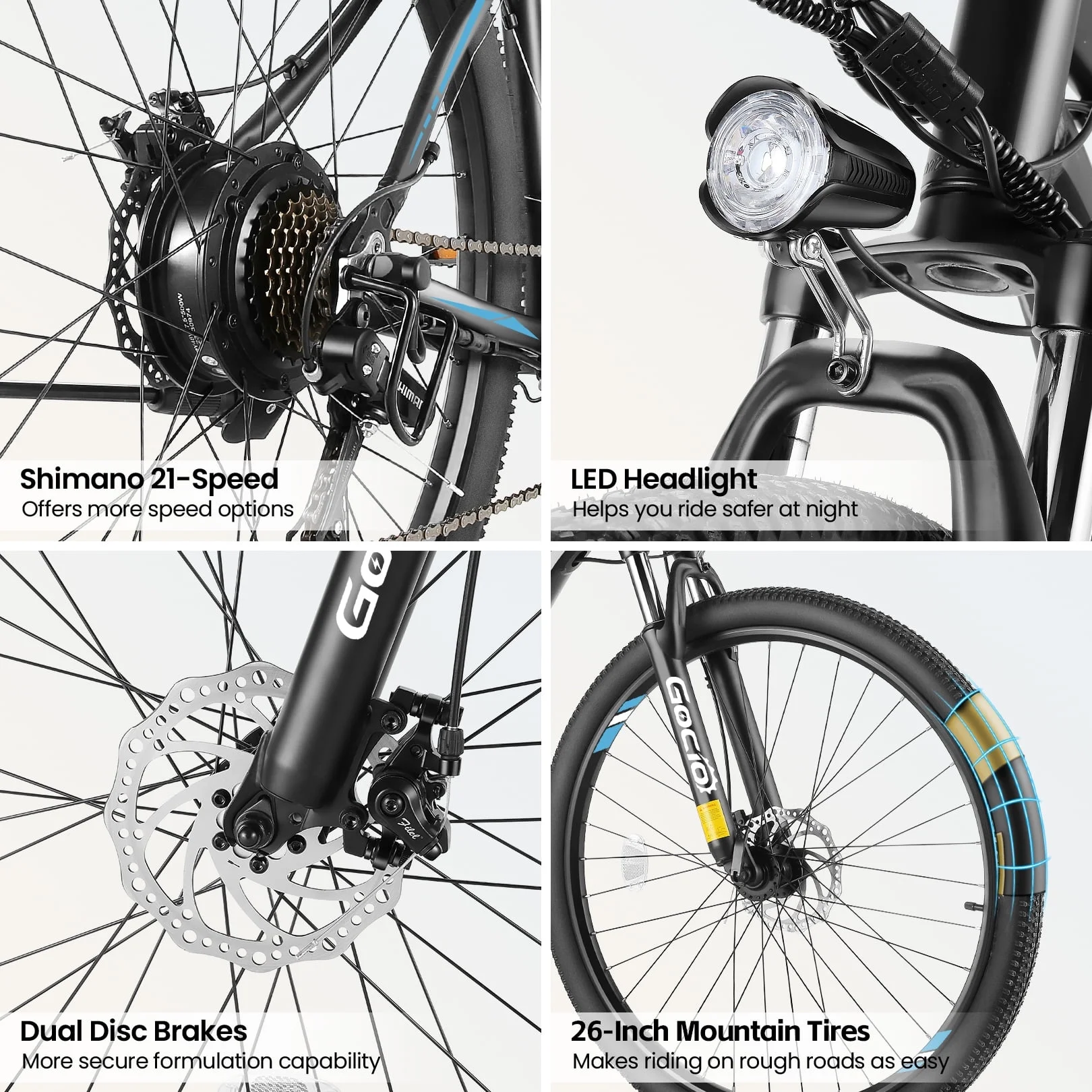 Gocio 26" Electric Bike, 350W Electric Bike for Adults 19.8MPH Electric Mountain Bike, LCD, Lockable Suspension Fork, 374.4wh 36V Battery UL2849, 21 - Speed Mountain E - Bikes Adult Electric Bicycle