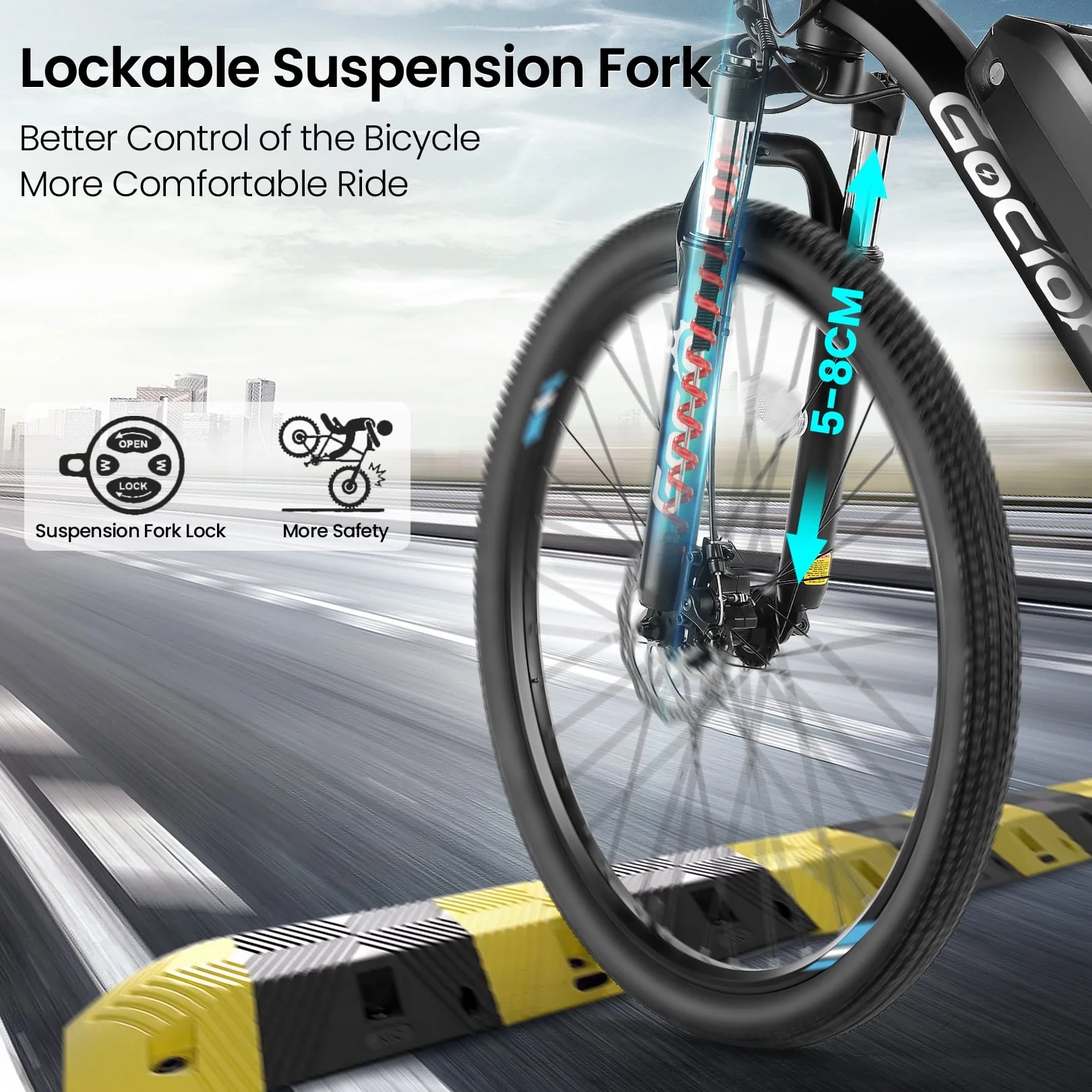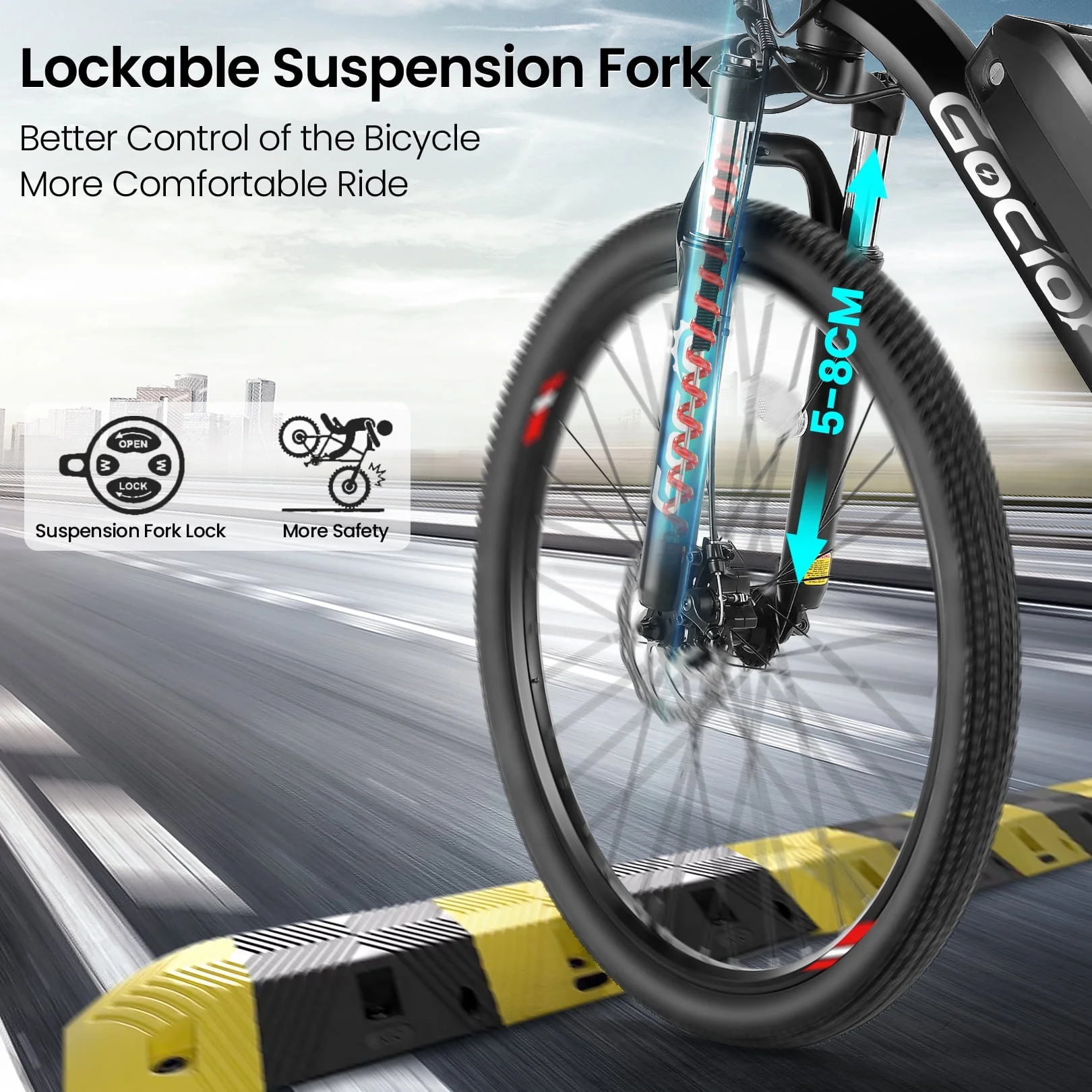 For paved roads or uphill climbs, lock the fork to maximize efficiency. When hitting rough trails, unlock it to absorb shocks and ensure a smooth ride. This electric mountain bike is designed for both speed and comfort.