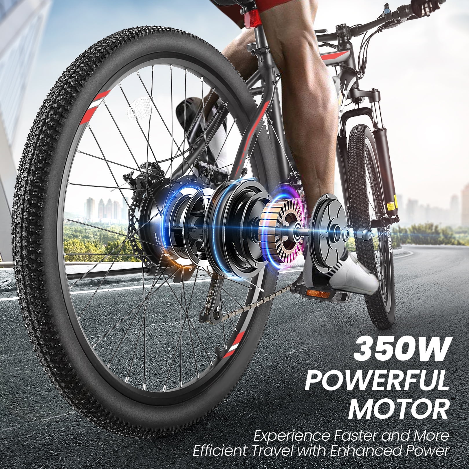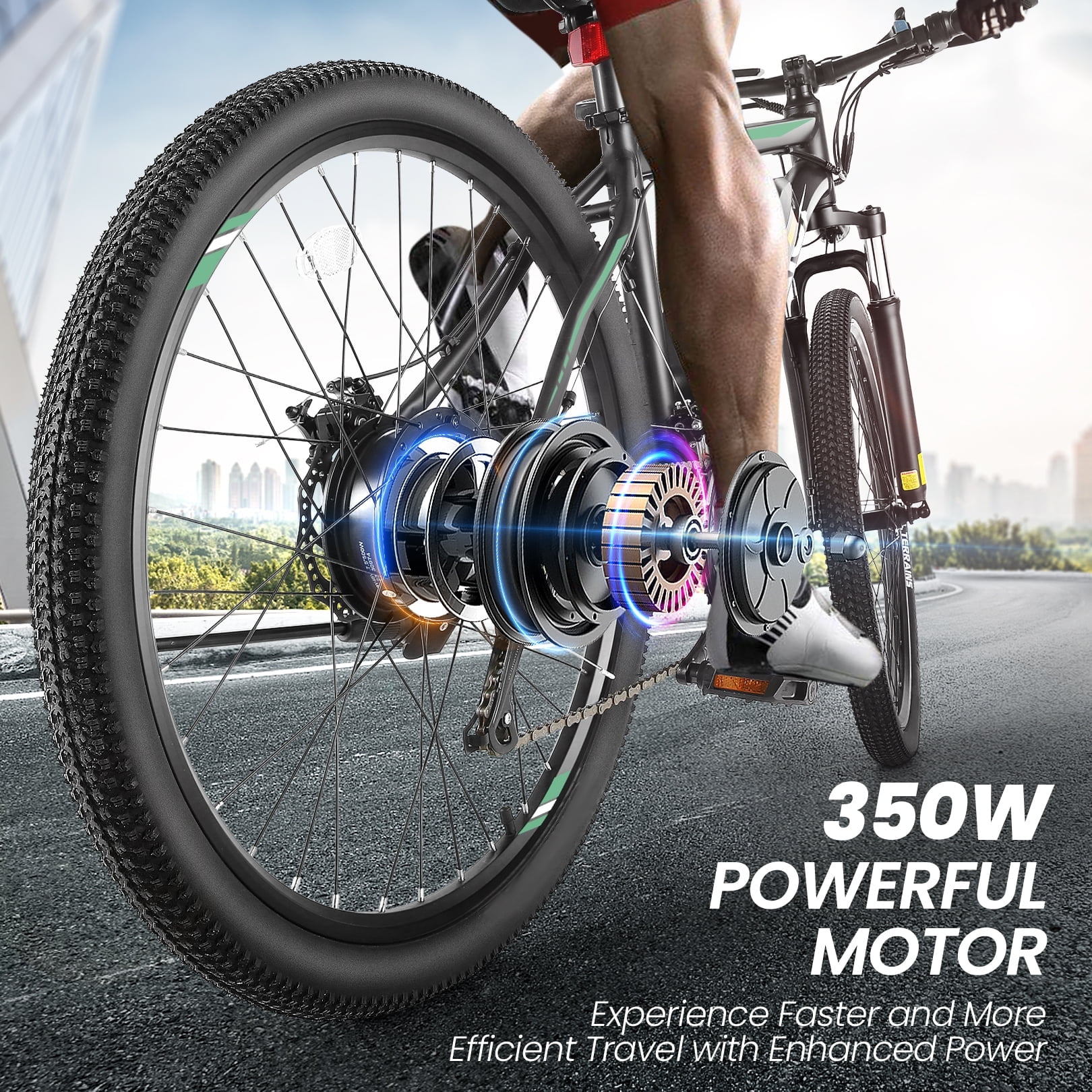 This electric mountain bike has a 350W high-speed brushless motor, delivering strong and stable performance. Whether you're commuting in the city, exploring mountain trails, or cruising through woodland paths, this e-bike makes every ride effortless, reaching speeds up to 19.8 MPH with excellent climbing power.