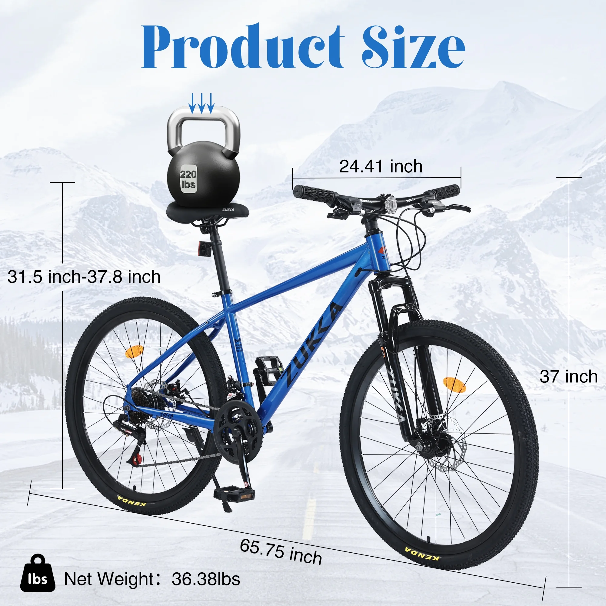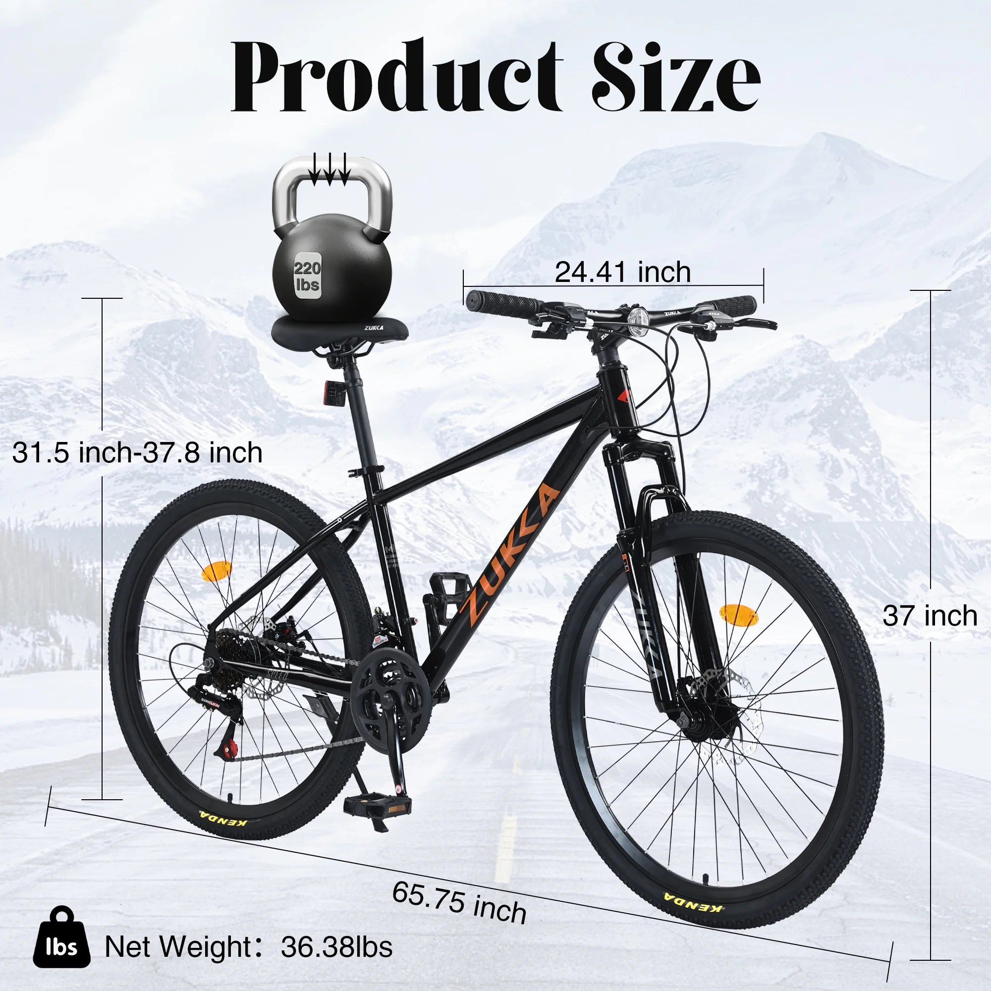 - Overall Mountain Bike : 65.75'' L X 24.41'' W X 37'' H