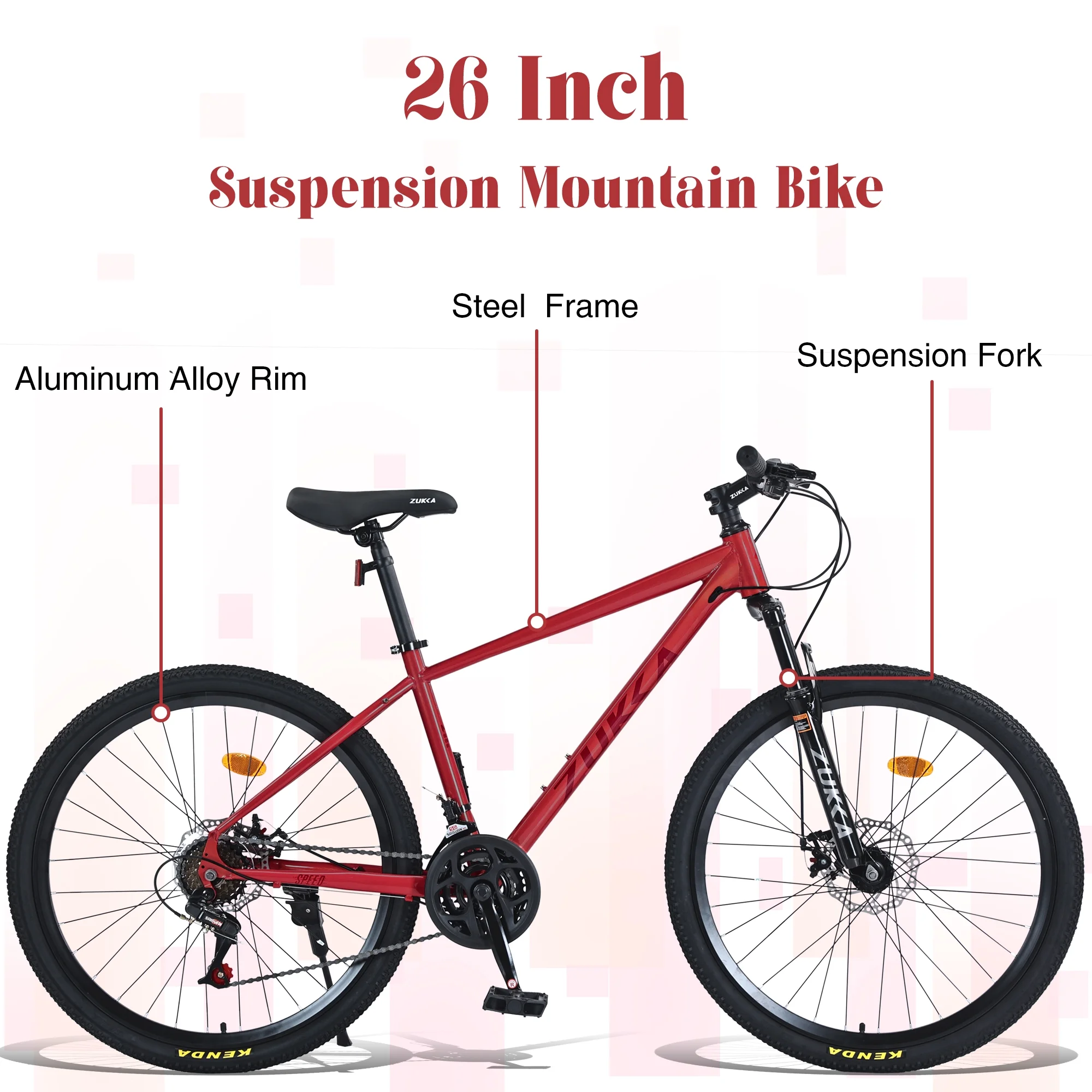- ALL-TERRAIN 26�� KENDA TIRES - Equipped with 26 x 1.95 KENDA rubber tires, this mountain bike for adults offers outstanding grip, puncture resistance, and shock absorption��ideal for gravel, dirt trails, pavement, and more.