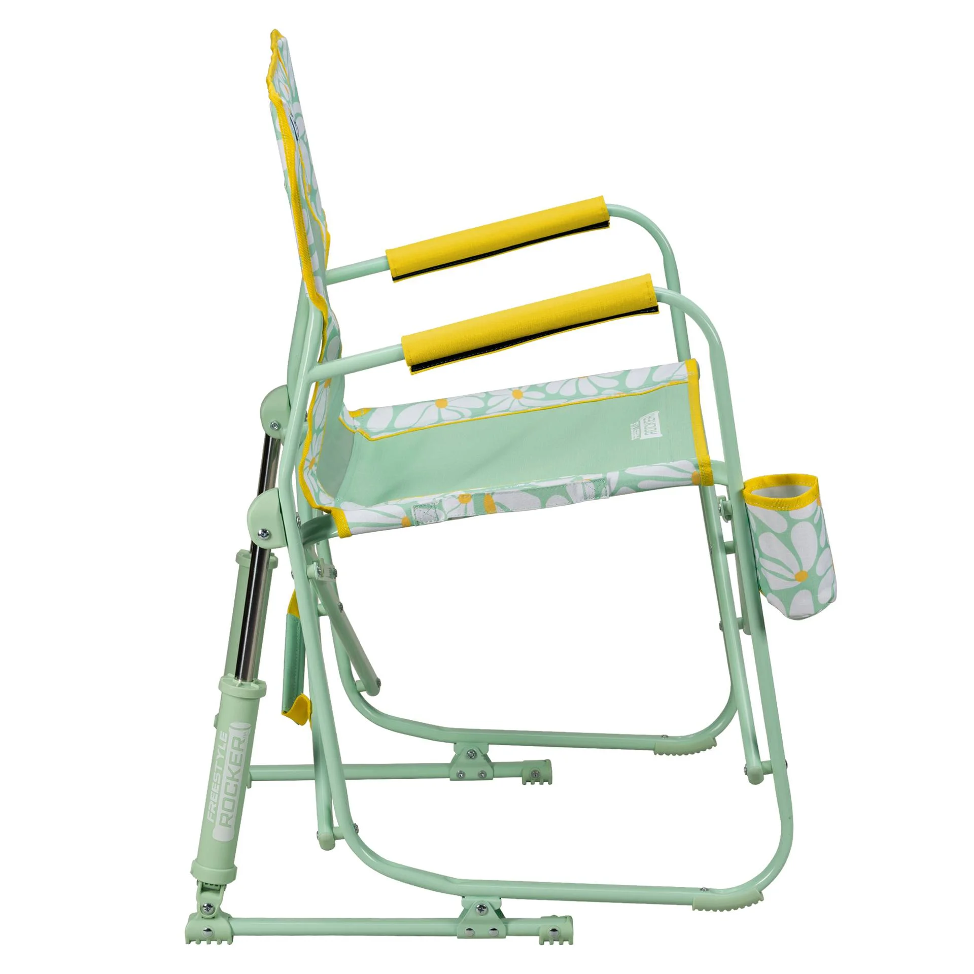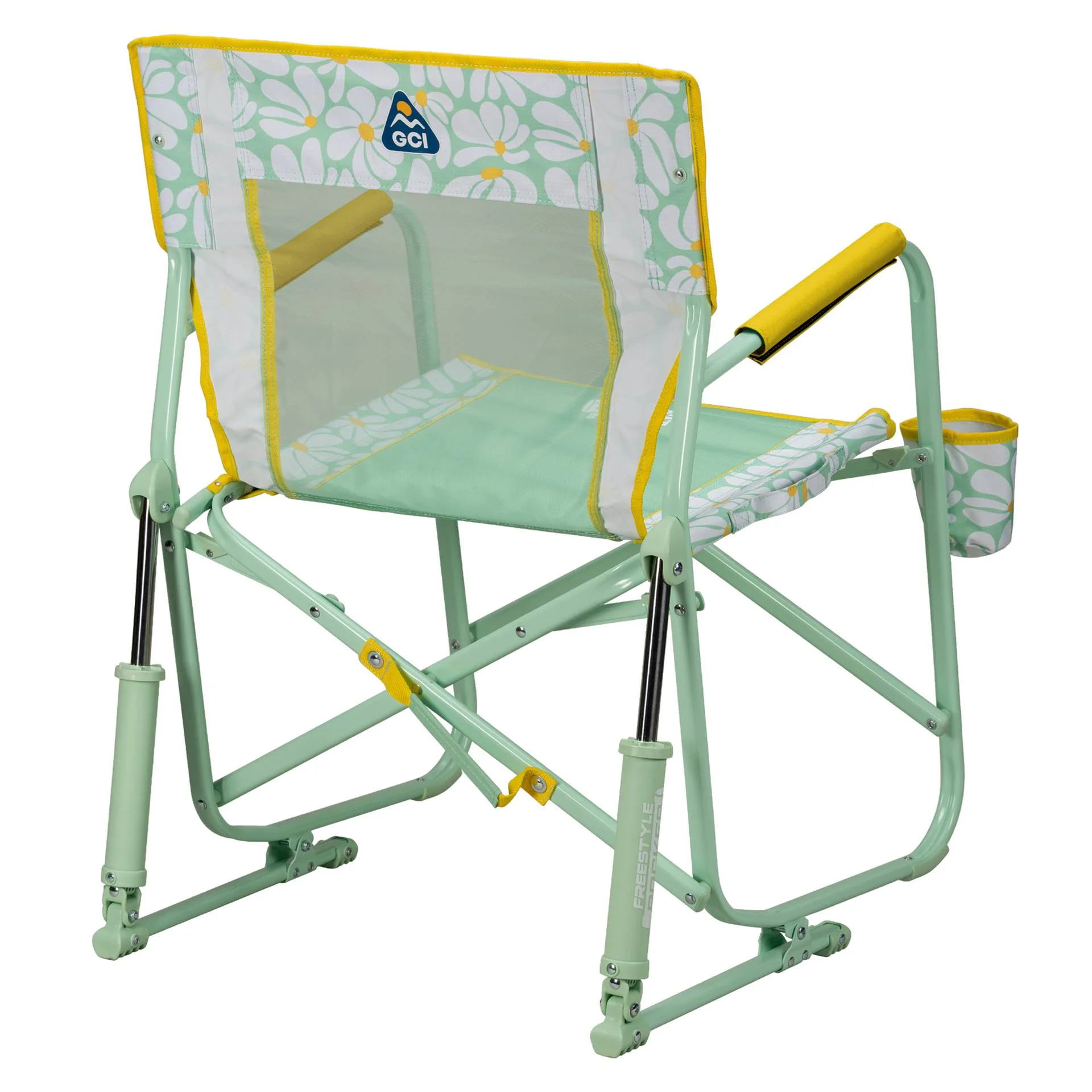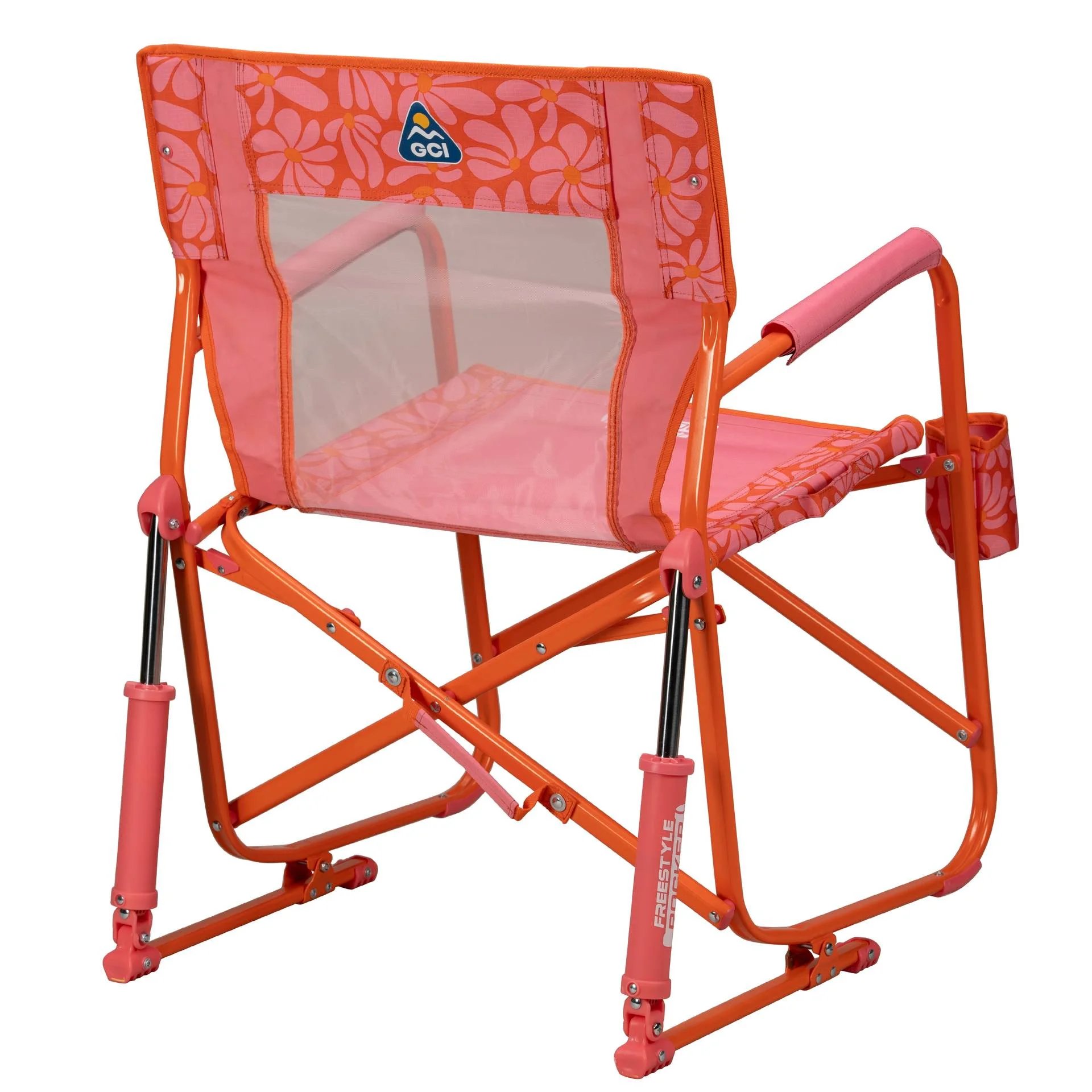 Unwind in the original rocking chair that revolutionized outdoor seating �M?the GCI Outdoor Freestyle Rocker. Pioneering patented Spring-Action Rocking Technology, the Freestyle Rocker sets a new standard for comfort and convenience, allowing outdoor enthusiasts to enjoy smooth rocking on any flat surface. With its ergonomic design, breathable mesh backrest, built-in beverage holder, and padded armrests for extra support when sitting and standing, you�Mԩl experience why the Freestyle Rocker is one of the top-selling chairs in the industry. The durable, powder-coated steel frame supports up to 250 lbs. and features Eazy-Fold technology for effortless opening and closing. It also includes a carry handle for transporting to all your outdoor activities.