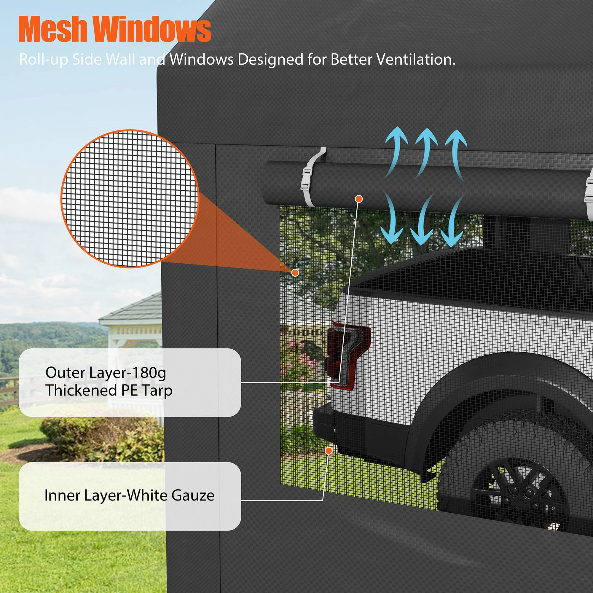 - Durable Weatherproof Canopy: Made from a high-quality 180g PE tarp, providing reliable protection against sun, rain, and dust. The cover is securely fastened to the frame for maximum durability.