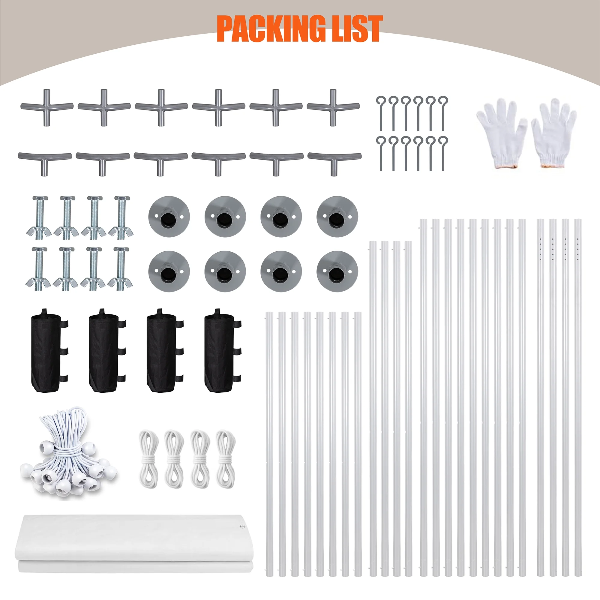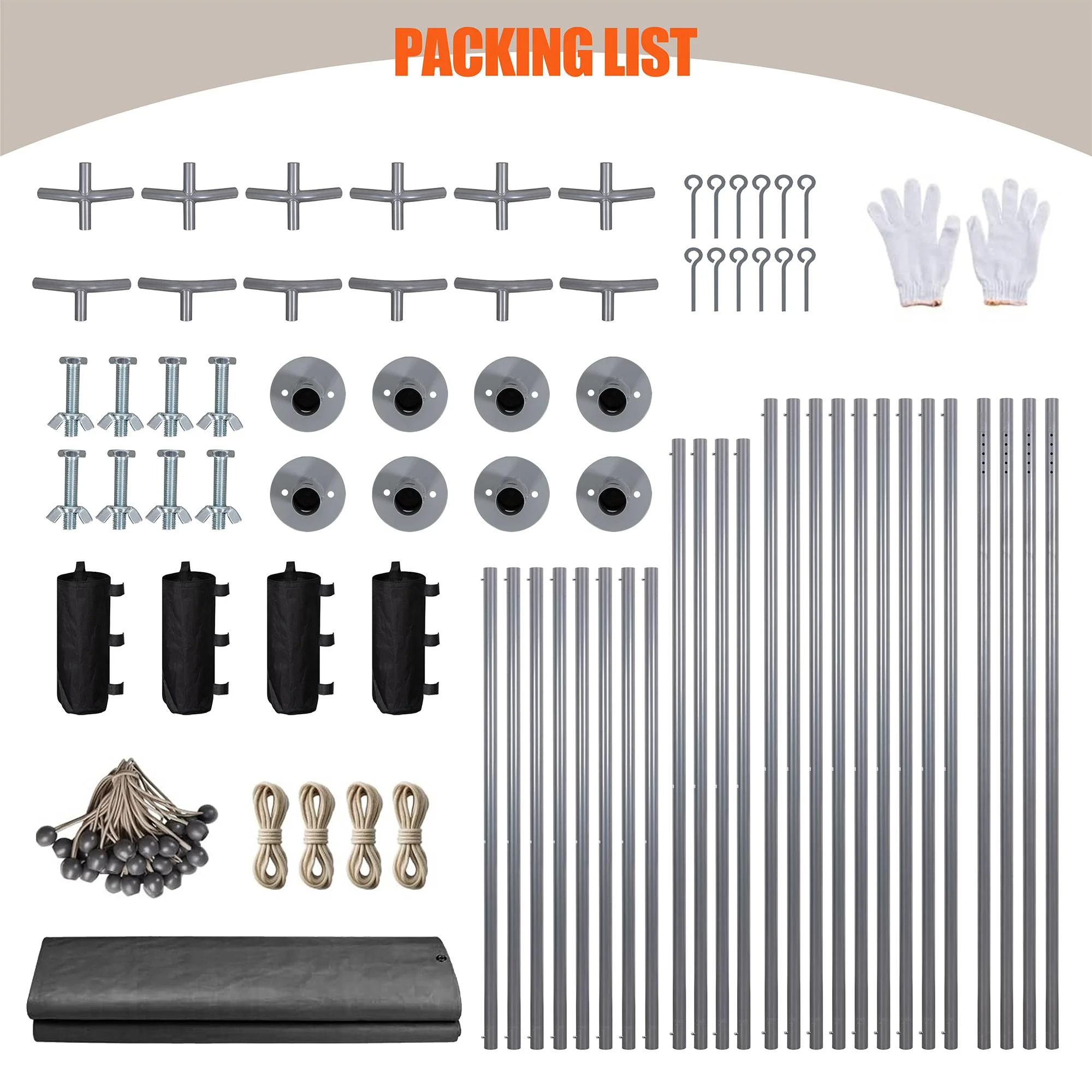 - Heavy-Duty Construction: Built with a rust-resistant, powder-coated steel frame, featuring 1.5-inch diameter poles with 12mm thickness. Reinforced with eight sturdy windproof ropes for added stability.