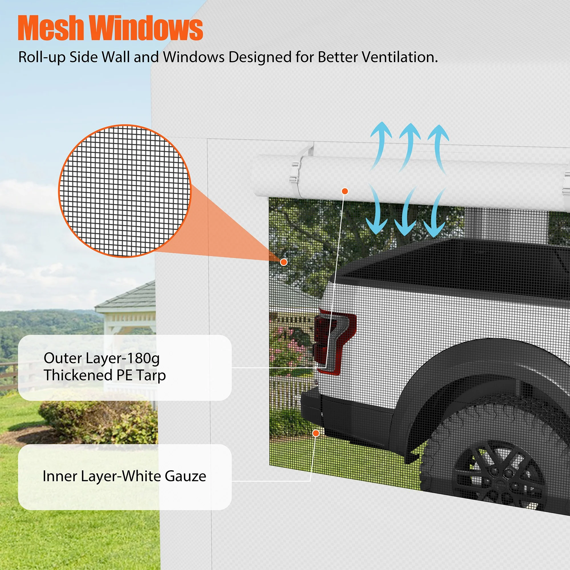 - Removable Sidewalls & Doors: Equipped with two detachable sidewalls featuring roll-up ventilation windows for enhanced airflow and moisture control. Includes two zippered doors for easy entry and exit.