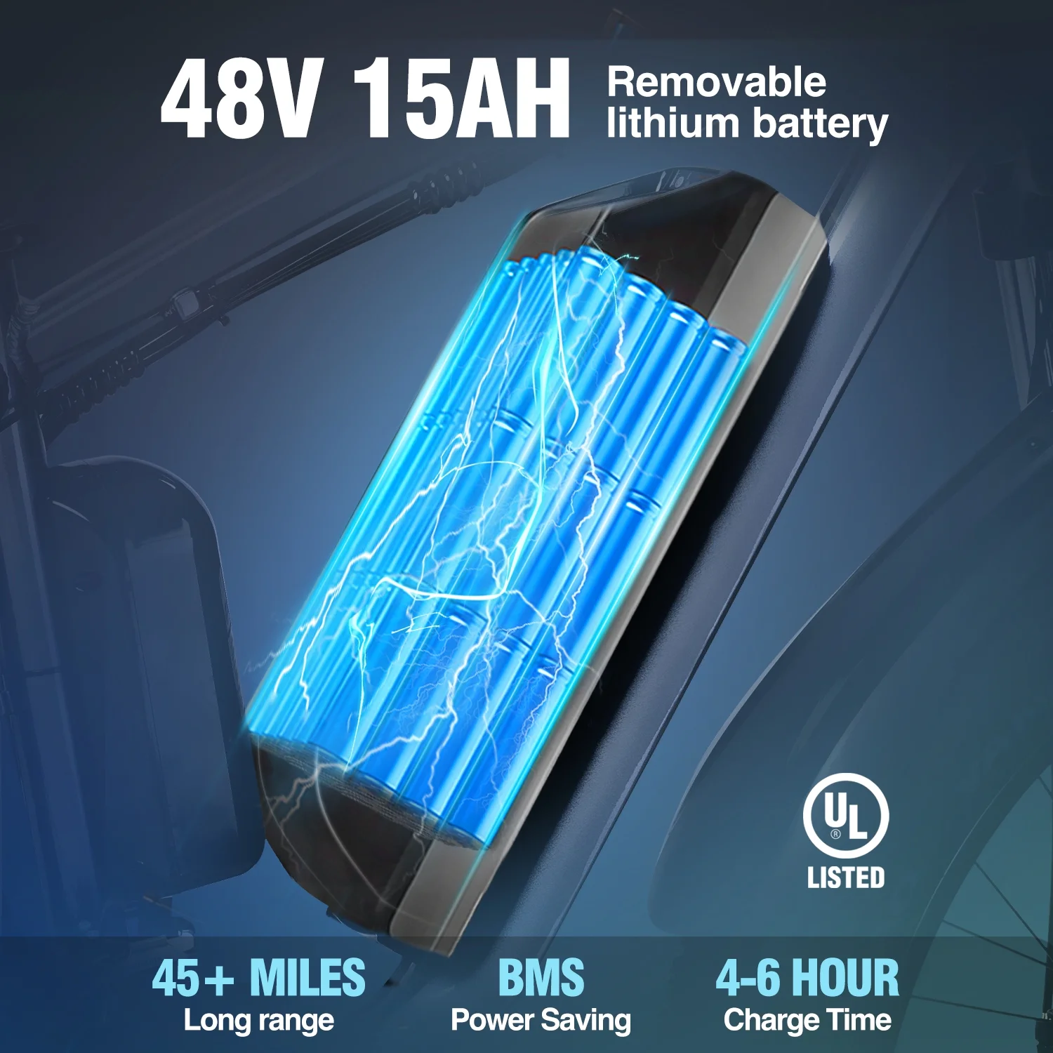 - ��???????? ?????????? ?????????????? & ???? ?????????? ???? ??????????�� Our dual motor e-bike comes with a UL-certified 48V 23Ah removable battery, providing an impressive range of 25-50 miles(PAS 1 Mode). Ideal for mountain challenges, this bike ensures you can enjoy leisurely rides without worry.