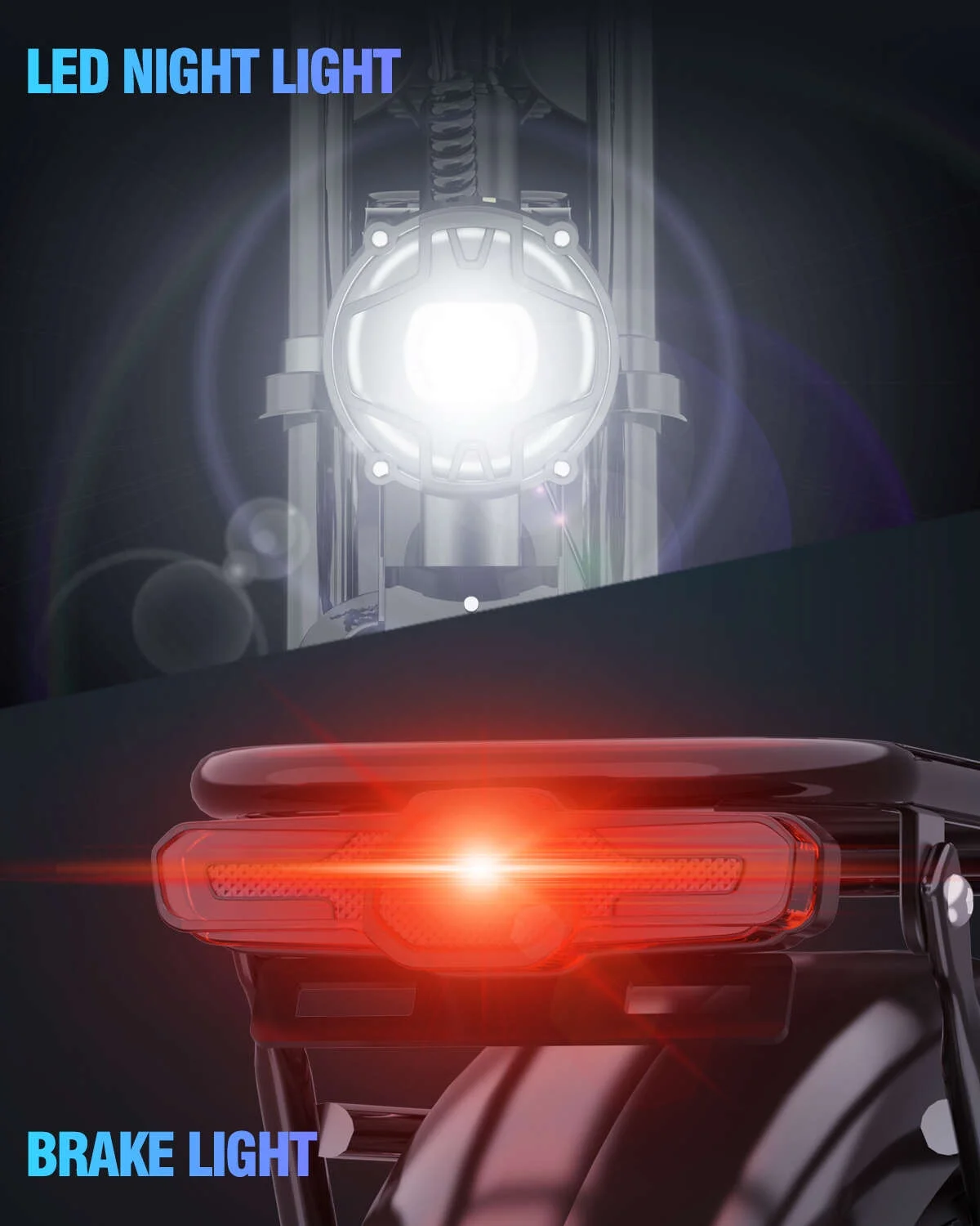 - ��???????????? ???????????? & ???????????? ????????????��The PEAK 3000W electric mountain bike boasts a striking and imaginative design, complemented by a stylish bike headlight for enhanced safety during nighttime rides. Its comfortable saddle, supported by a reinforced pole and hollowed-out bracket, ensures an exhilarating riding experience. Get ready to turn heads and be the envy of others as you embrace the latest trend in electric motorcycles!