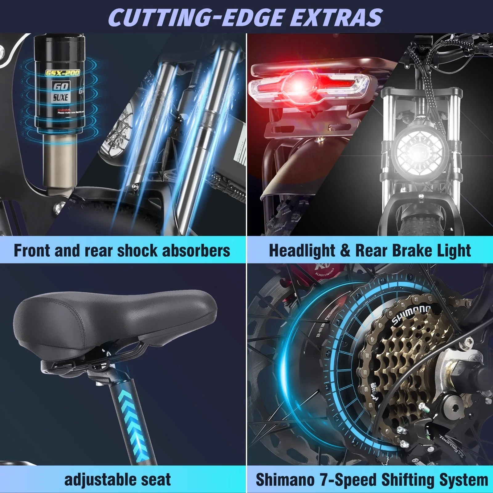 - ��???????? ?????????? ???????? ?????????? & ?????????? ?????? ??????????��Experience the EE26 Plus dual motor electric bike, featuring two brushless motors that deliver a peak power output of 3000W. With a maximum speed of 31MPH��unloaded), this electric motorcycle effortlessly climbs 45�� hills, making it perfect for off-road adventures across rugged terrains. The Shimano 7-speed gear system allows you to tackle steep inclines with ease, empowering you to venture further.