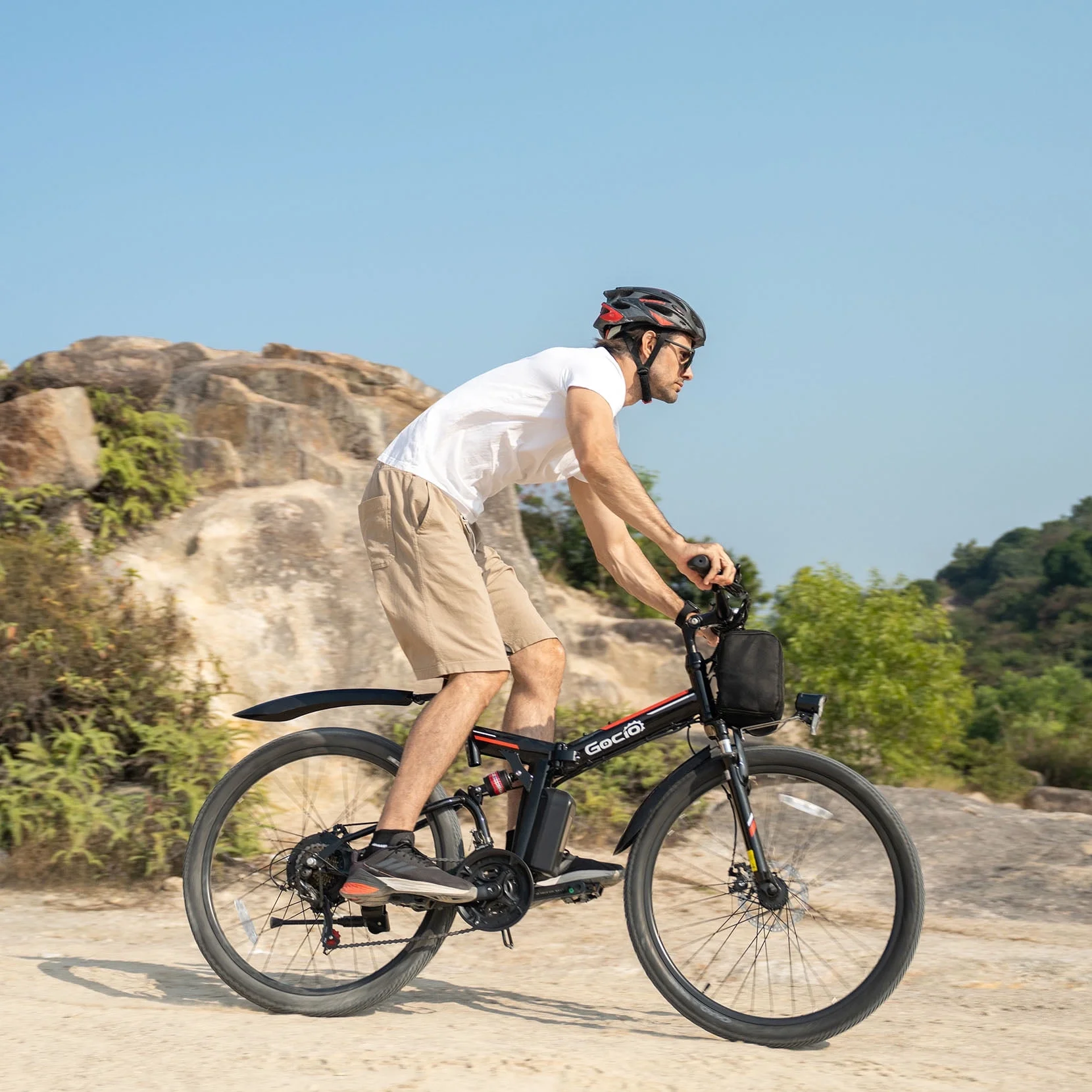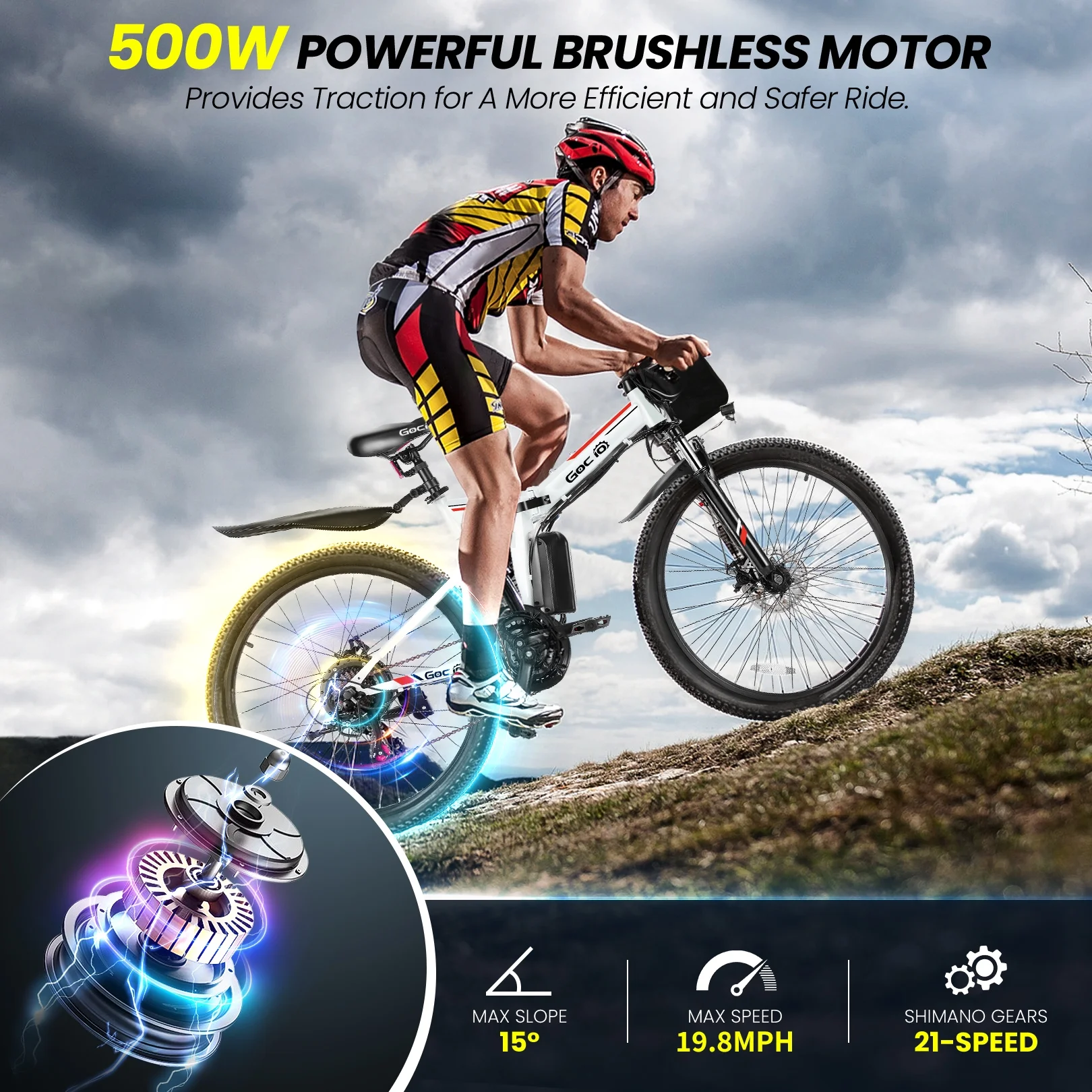 The Gocio 26" Electric Bike delivers a powerful and versatile riding experience, featuring a 500W brushless motor and a 48V 7.8Ah lithium-ion battery that provides a maximum speed of 22 mph and a range of up to 50 miles in pedal-assist mode. This ebike