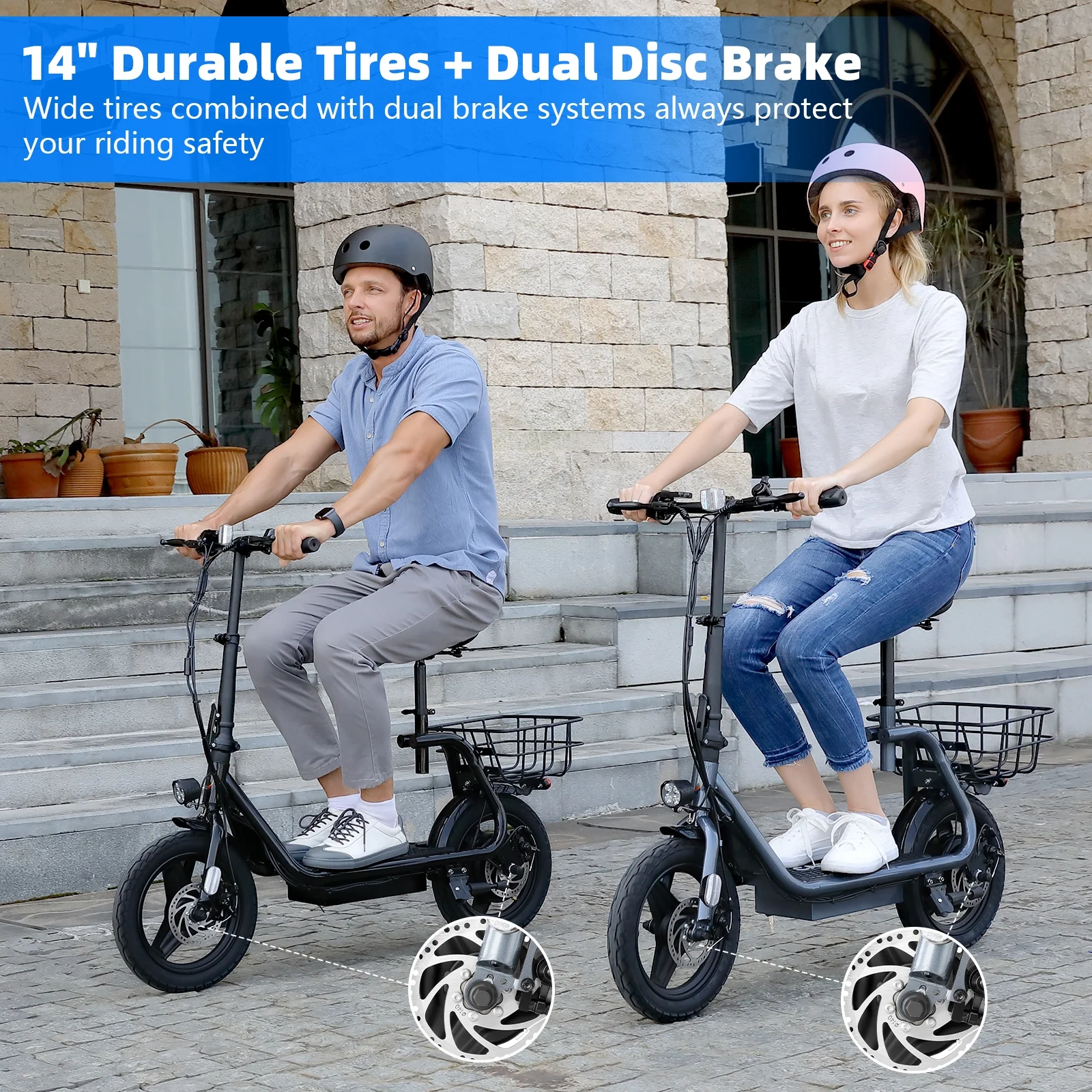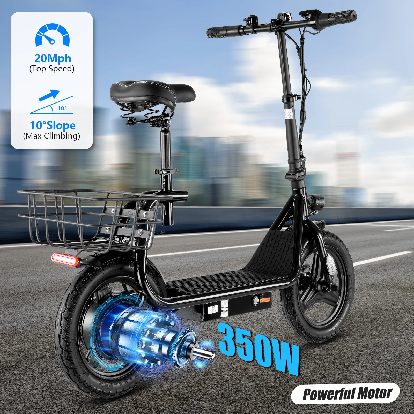 ?Foldable & Easy to Carry: SANOPY Electric scooter with seat for adults has a folding design. The compact folded size makes it easy to store in car trunks and other tight spaces, detachable scooter seat is included.