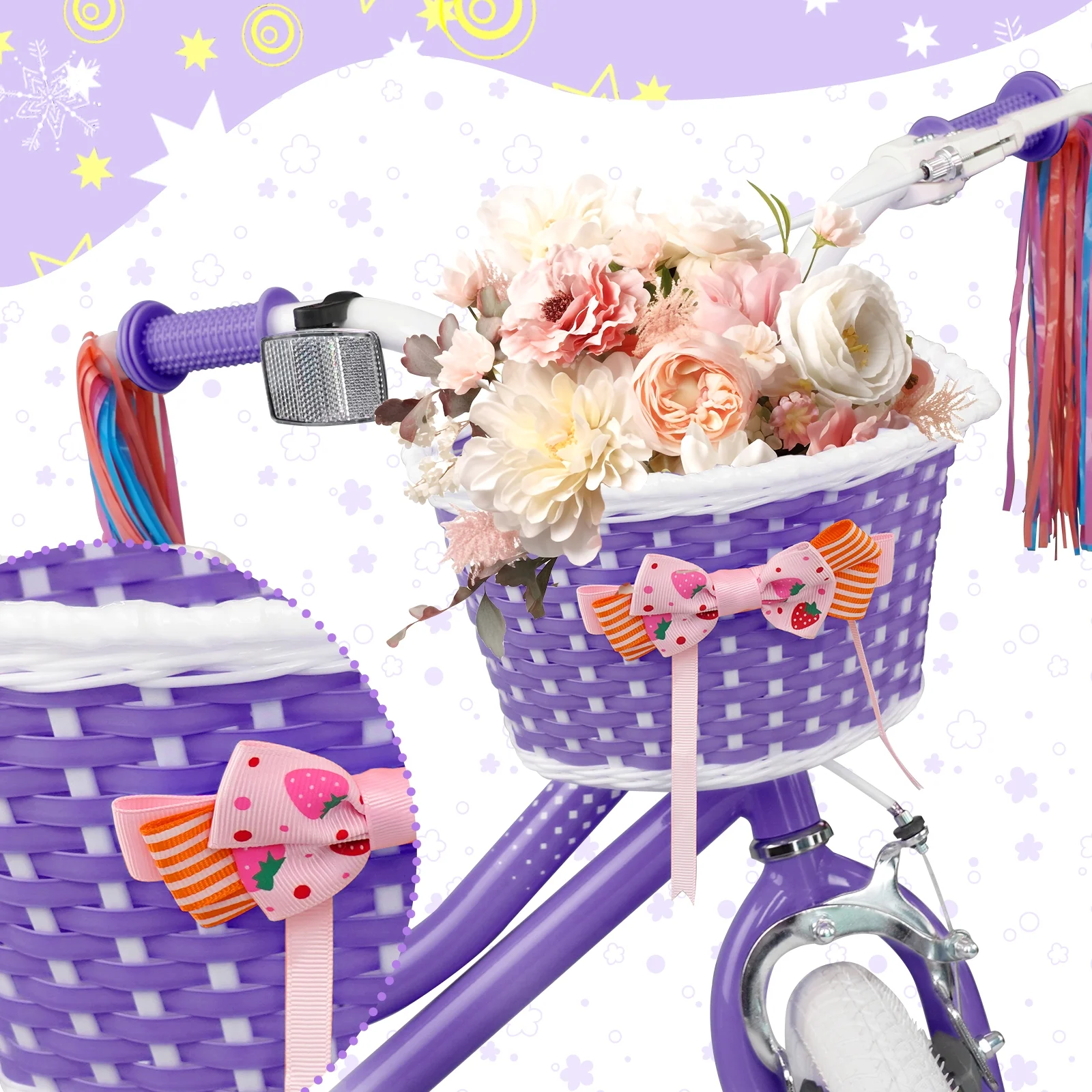 - The single-speed drive system and smaller grip design make it easy for her to learn and feel comfortable on the wheels. This girls' bike comes with a beautiful basket and shiny ribbons, adding more fun for your little thrill-seeker, allowing her to pedal out speed in an instant.