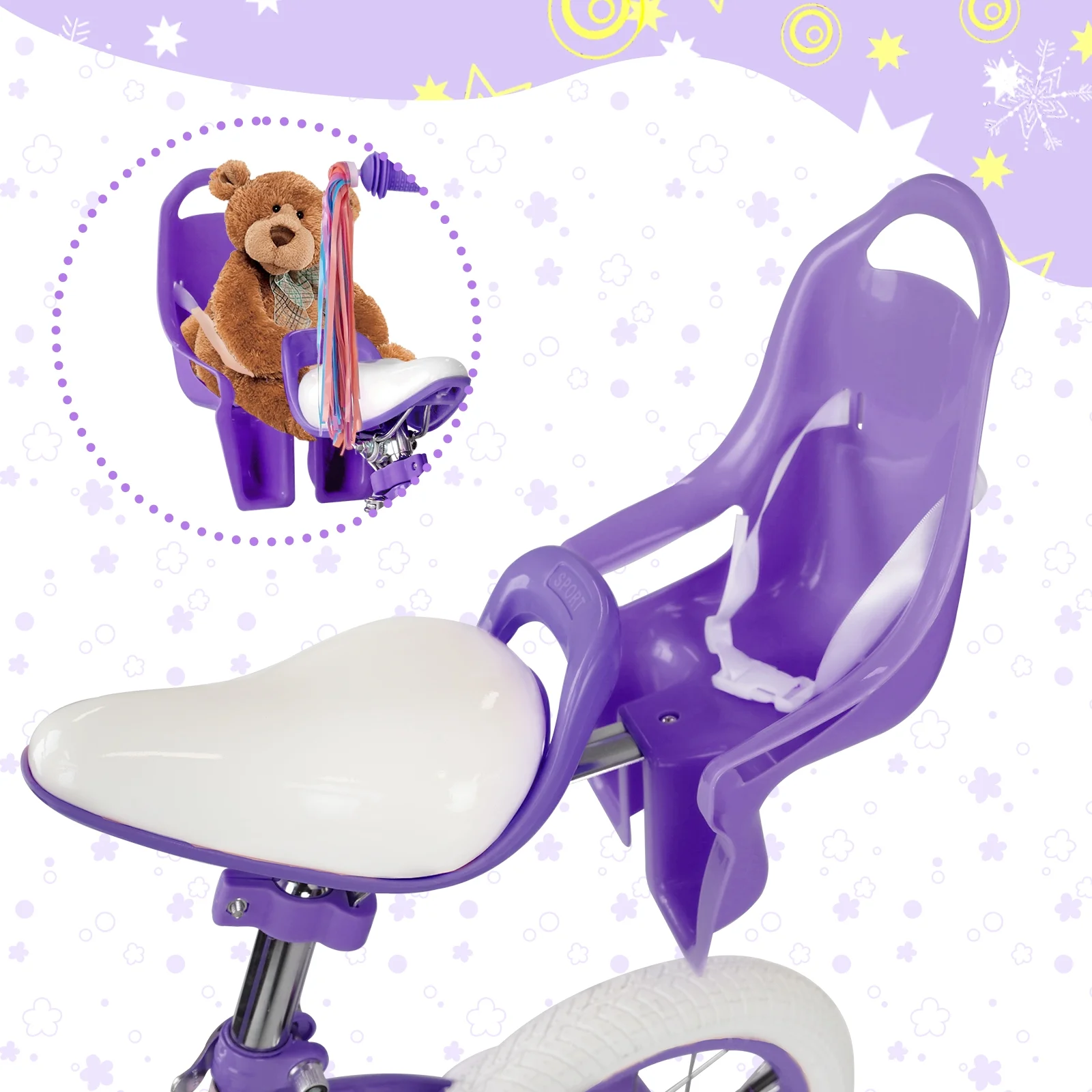Comes with a basket and a bicycle doll seat