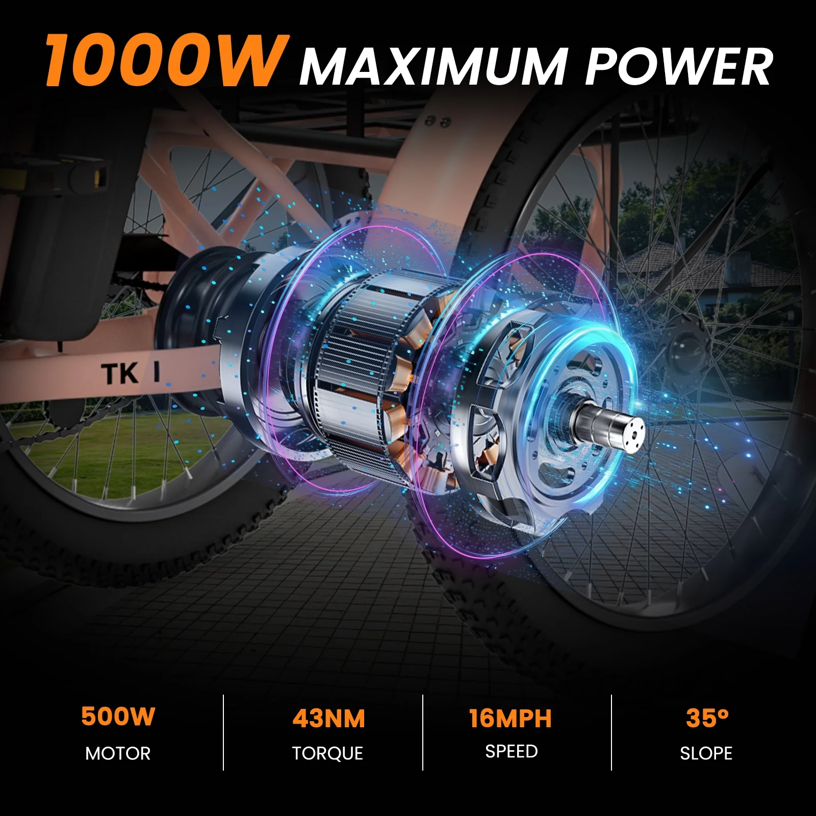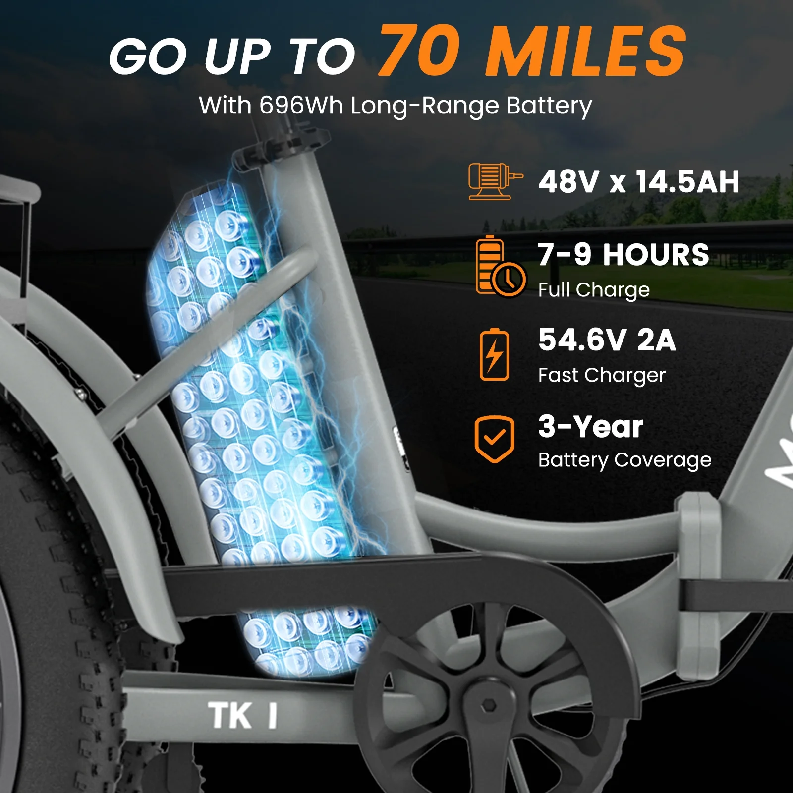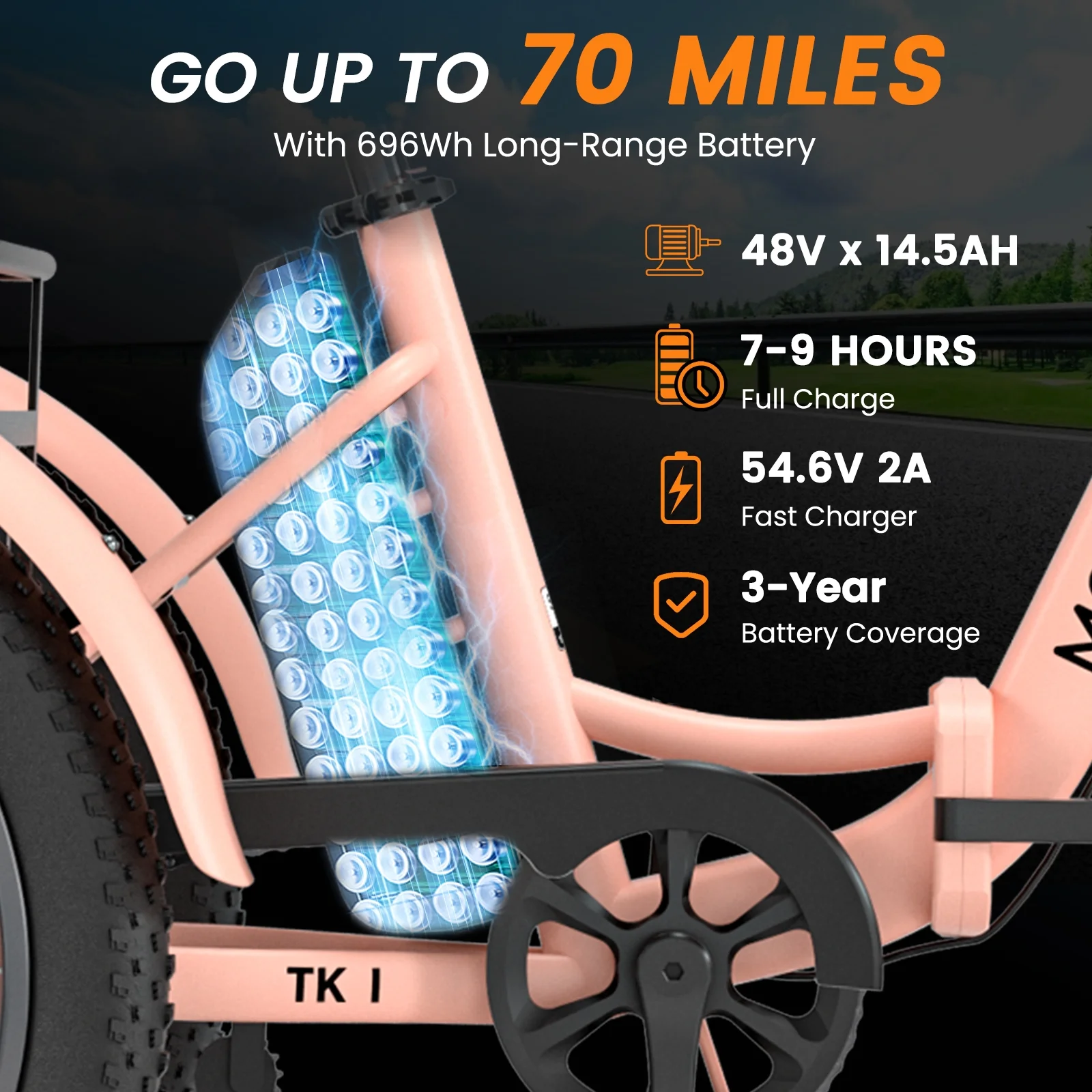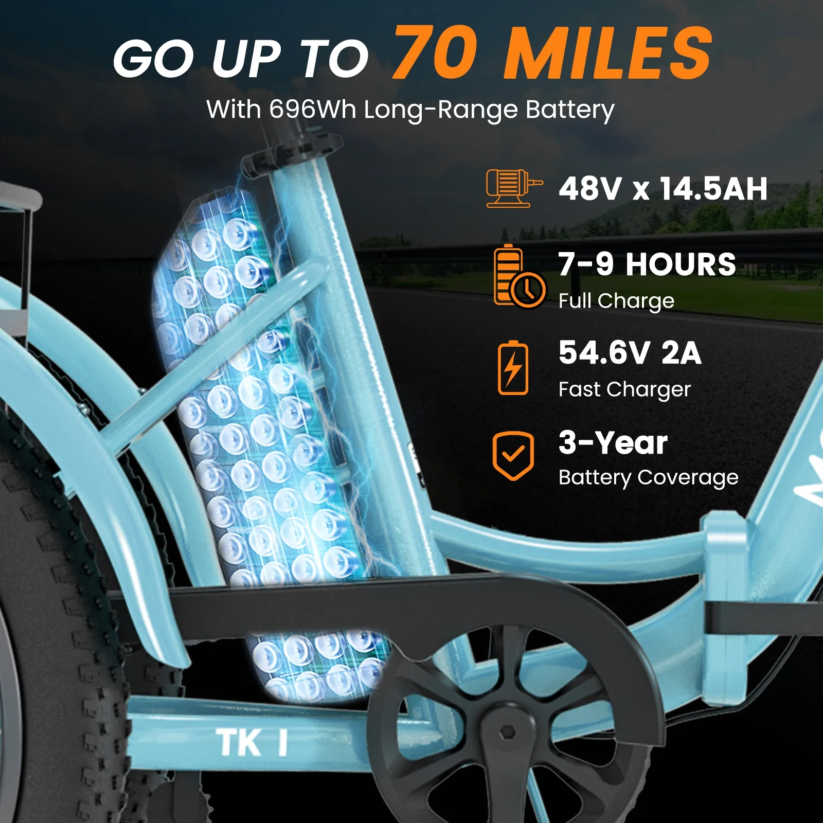 3.3'' Fat Tires & Shock Absorber: The newly upgraded 3.3'' wide puncture-resistant fat tires have better performance and a cooler appearance. With excellent suspension front fork and Seat Post. In addition to city roads, can ride on snow, beaches, rugged mountain roads, etc.
