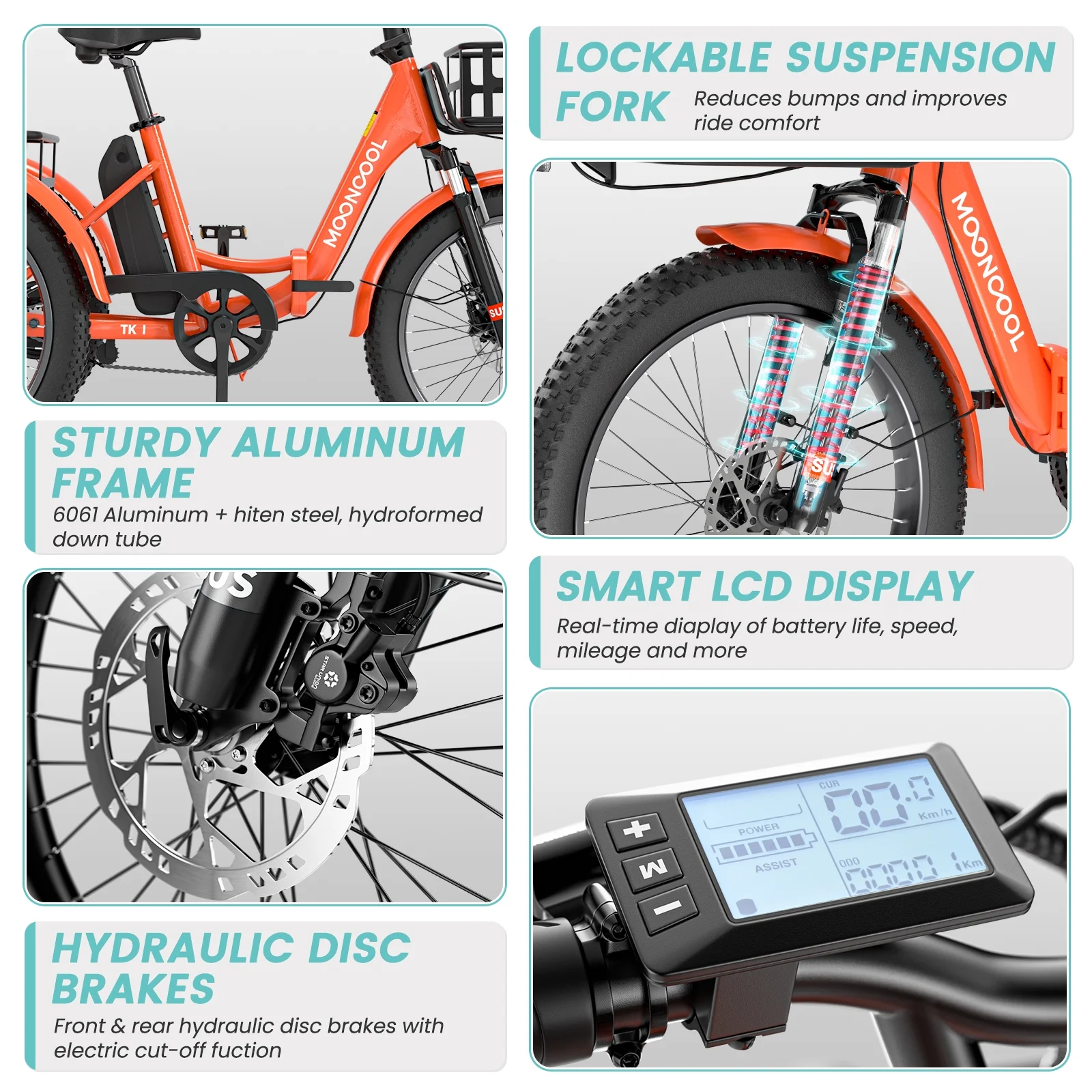 LCD Display & 3 Riding Modes: LCD Power Display for Real-time Viewing All-in-one power dashboard, easy to view real-time information while riding, LCD display allows you to monitor the condition of the bike at any time. Customize your cycling performance with 3 cycling modes (electric mode/power assist mode/pedal mode) and 7-speed gears.