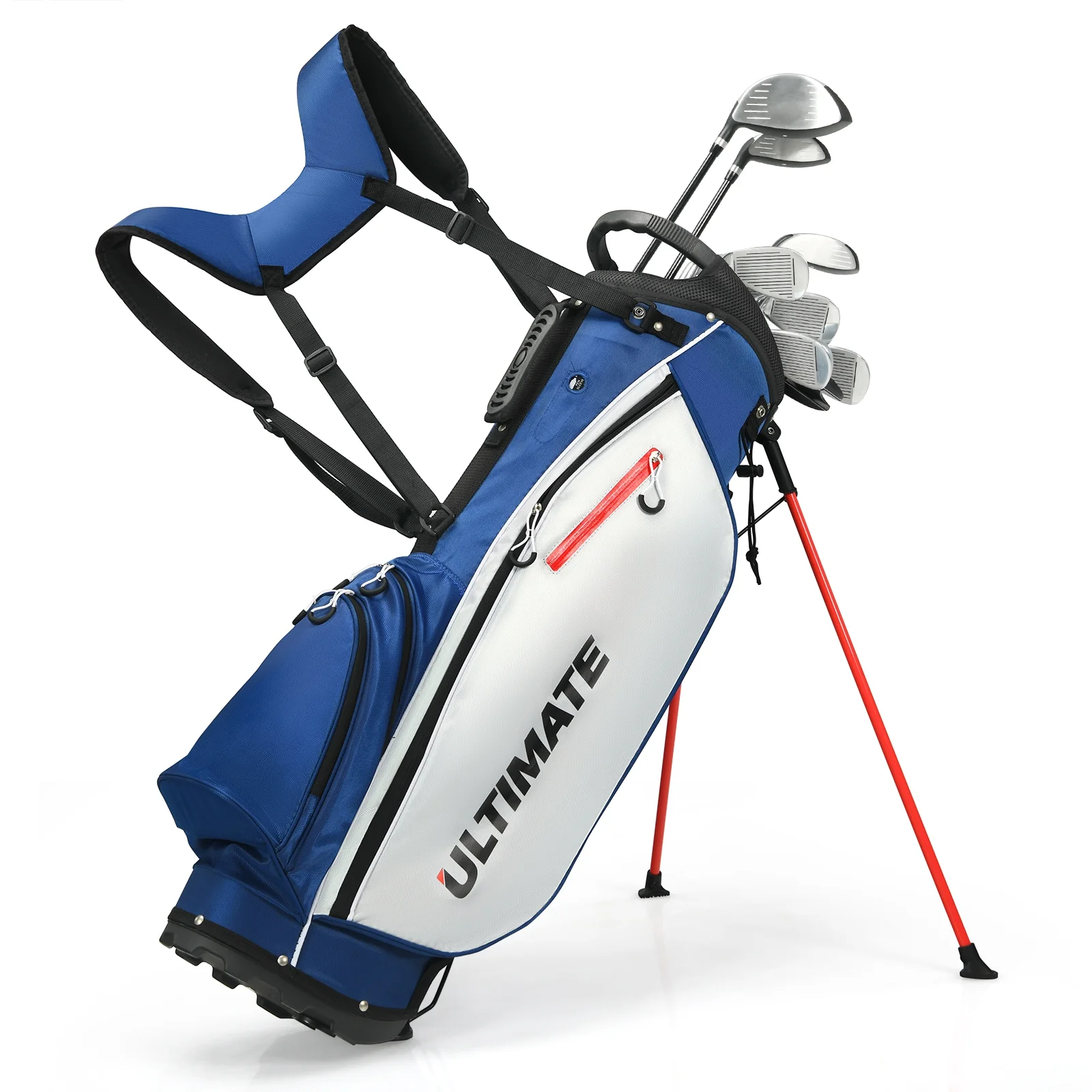 - Lightweight Stand Bag: Lightweight and premium carry bag features adjustable shoulder straps, rugged handle top, numerous pockets and stable stand for convenient use. You can steadily put the bag on the ground while playing golf. With the extra pockets, some items can be well stored.