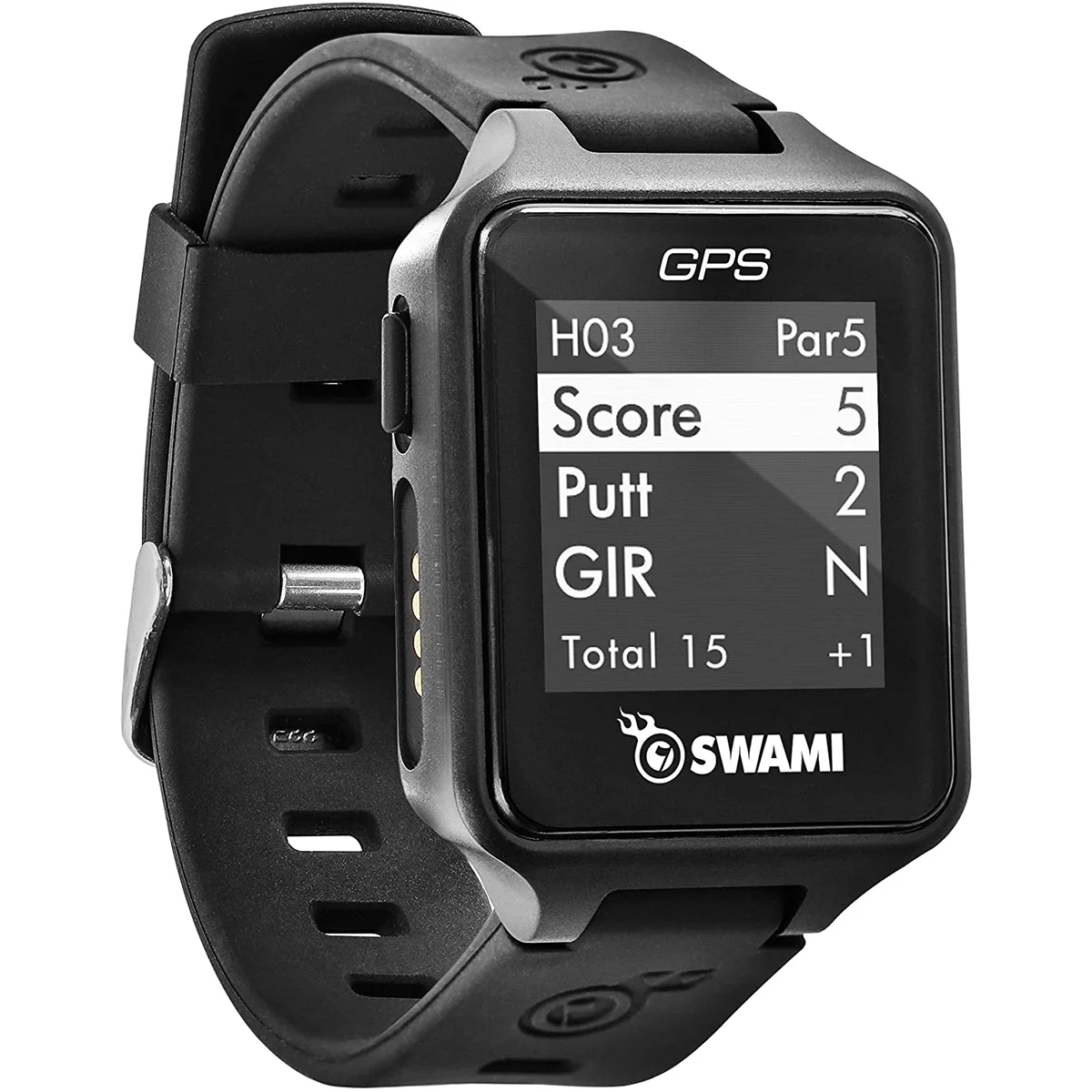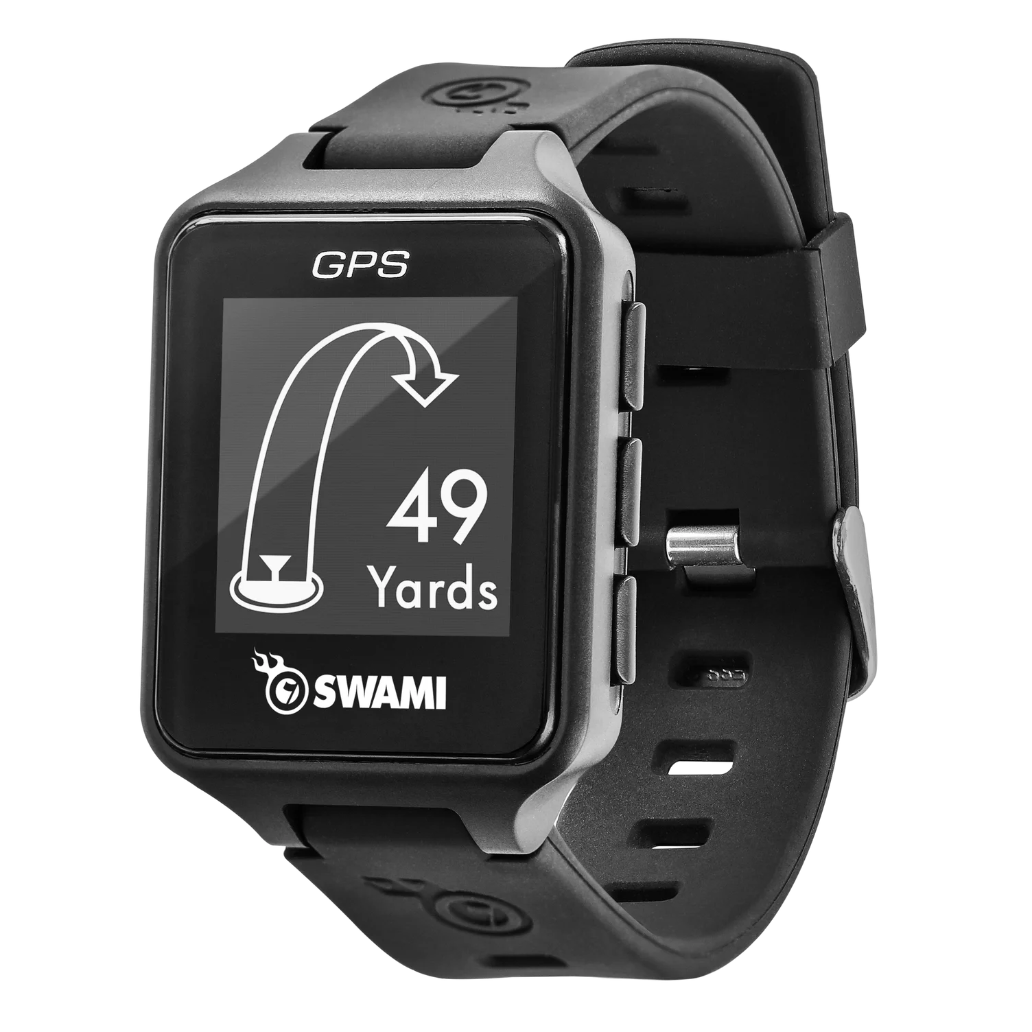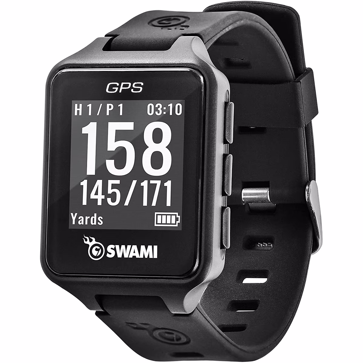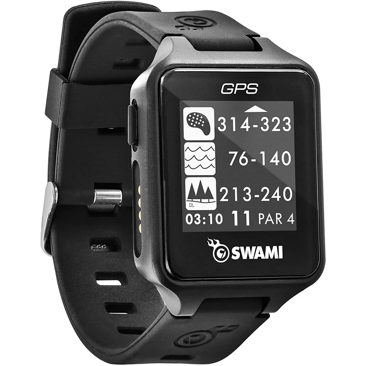 The Izzo Swami Golf GPS Watch delivers fast, accurate distances to greens, hazards and doglegs with wearable convenience and quick access. The Swami GPS Watch sports a sleek, lightweight design with an ultra-comfortable band, and comes preloaded with over 38,000 global course maps. There are no download or subscription fees... new course adds and updates are free of charge. When launching into Golf mode, the Swami Watch automatically locates your course and will auto-hole advance during play. Other useful features include a digital scorecard for recording and saving your best rounds, and an individual shot distance measurement feature to confirm your longest drives. In Time mode, the Swami Watch is comfortable enough to wear every day, and will last weeks on a single charge. No winding required, the time and date is automatically set by GPS satellite and can be displayed in analog or digital format. The rechargeable lithium-ion battery lasts up to 10 hours in Play mode; and up to 40 days in Time mode. Comes with a 1 year limited warranty.