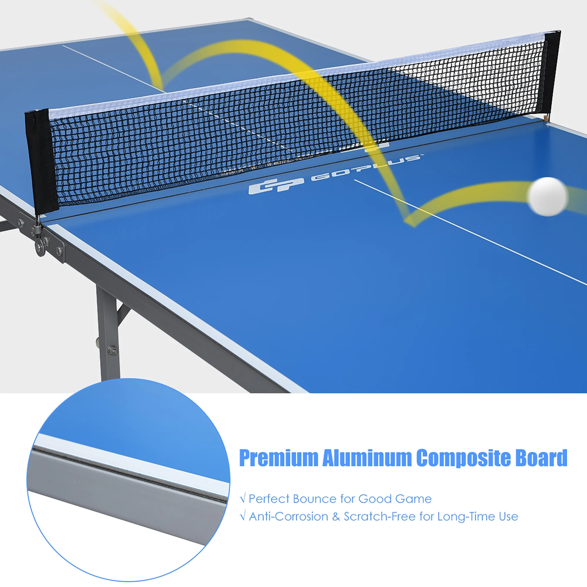 - ��Premium Table Top��Aluminum composite board is renowned for its superior functions, like scratch-free and anti-corrosion. Made of this material, our table-tennis table will provide long-term service. More importantly, it can give a perfect bounce to the ping-pong ball, presenting a professional ping-pong game.